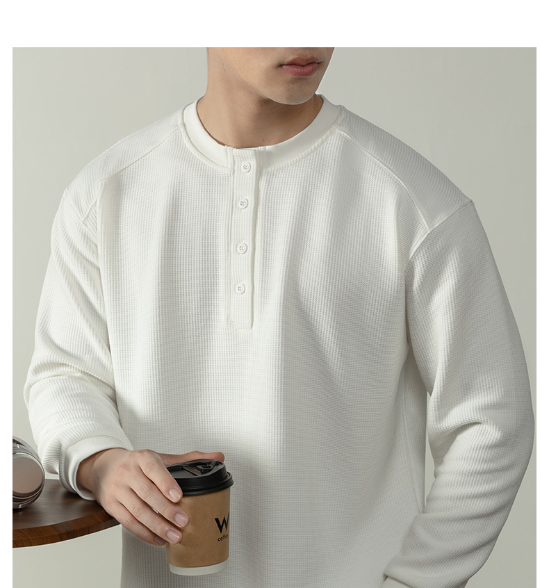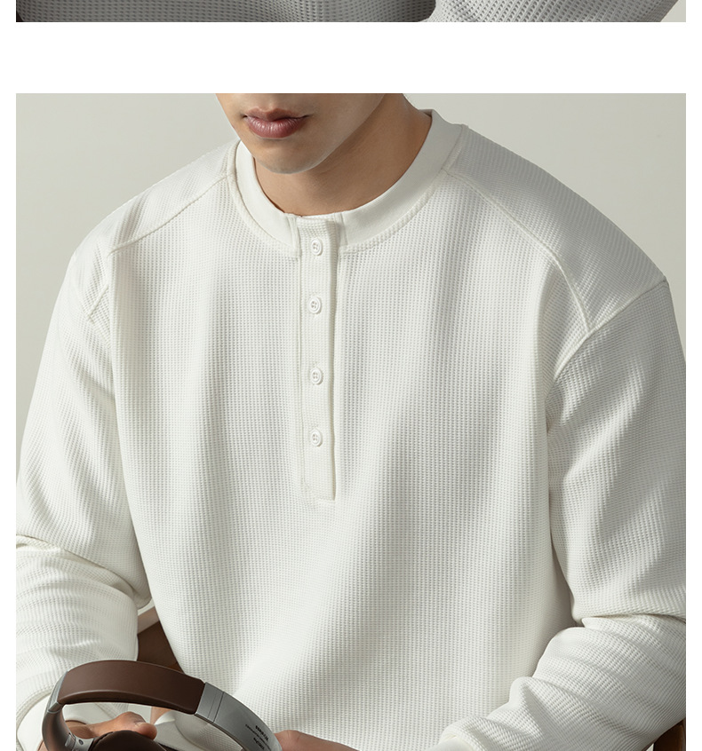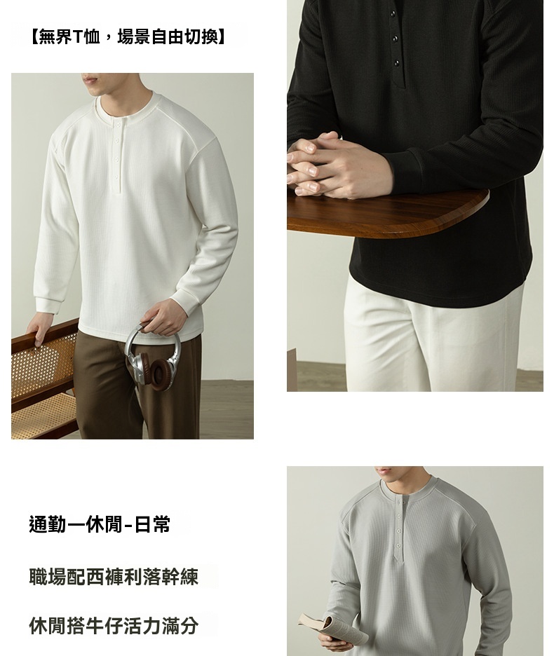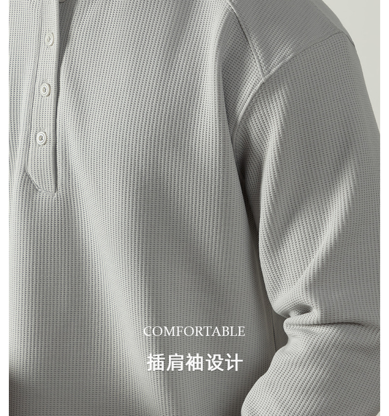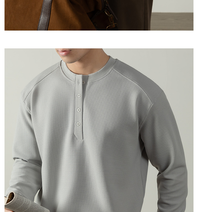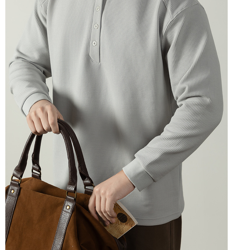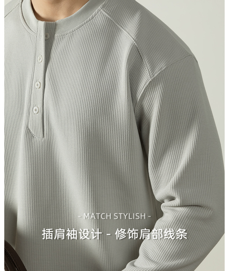 【CD精英系列】輕奢棉感400G華夫格亨利領T桖男款秋季通勤打底衫