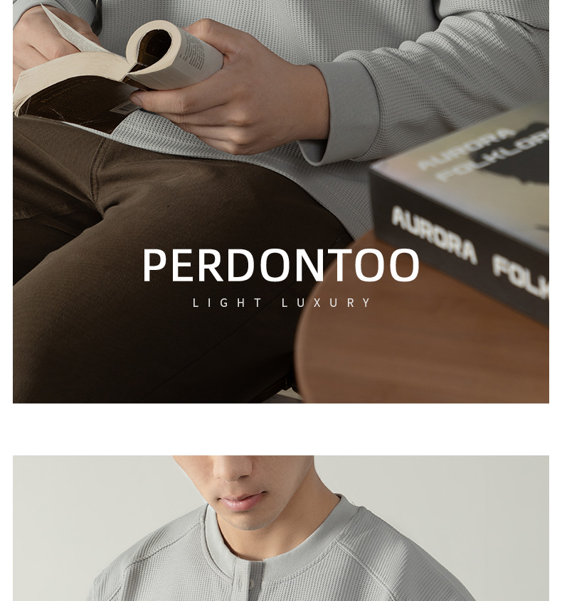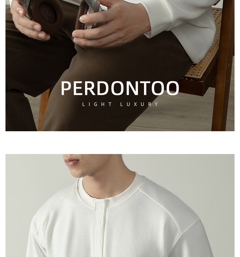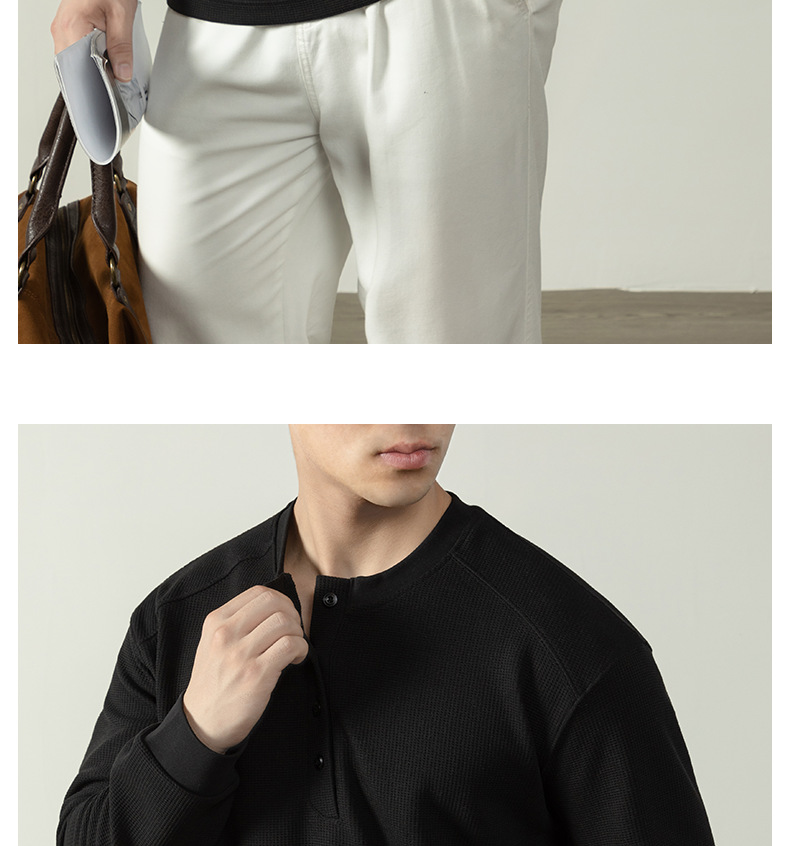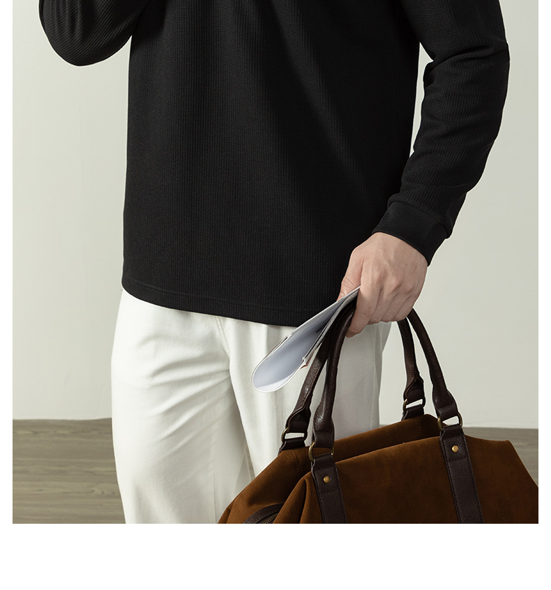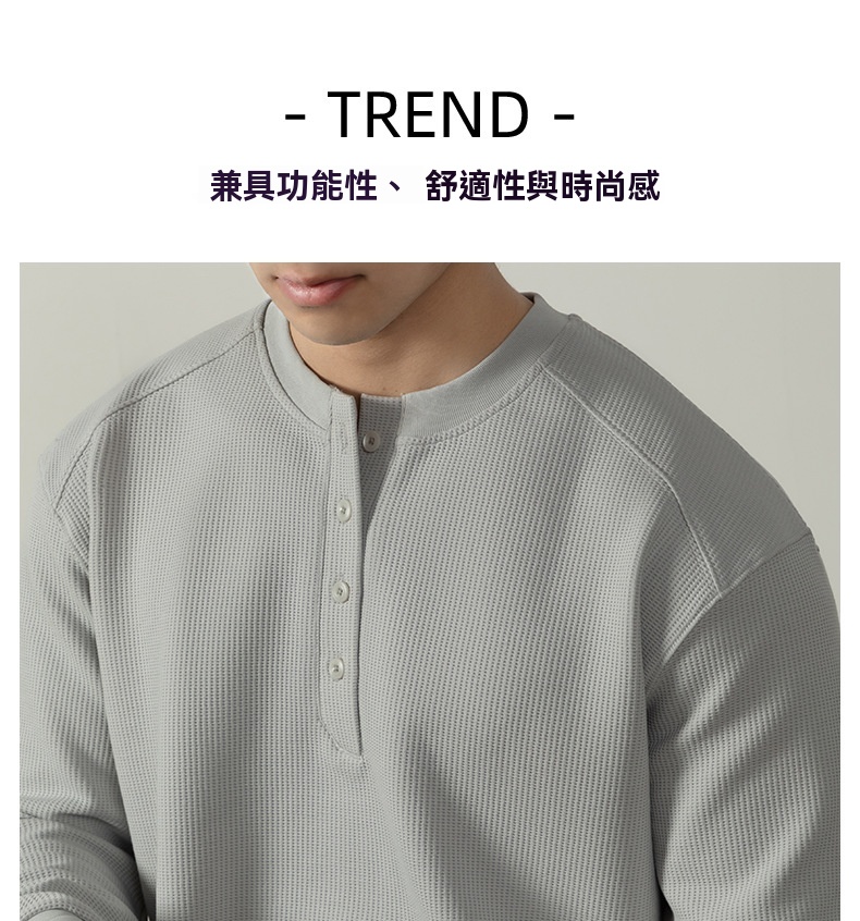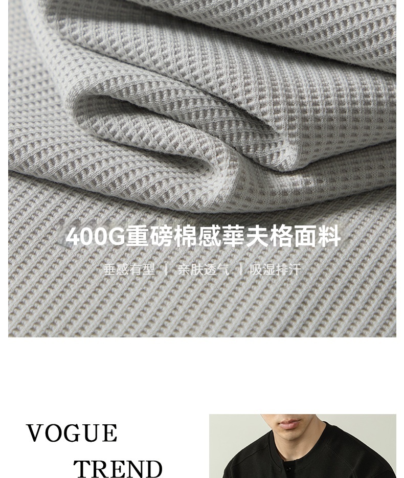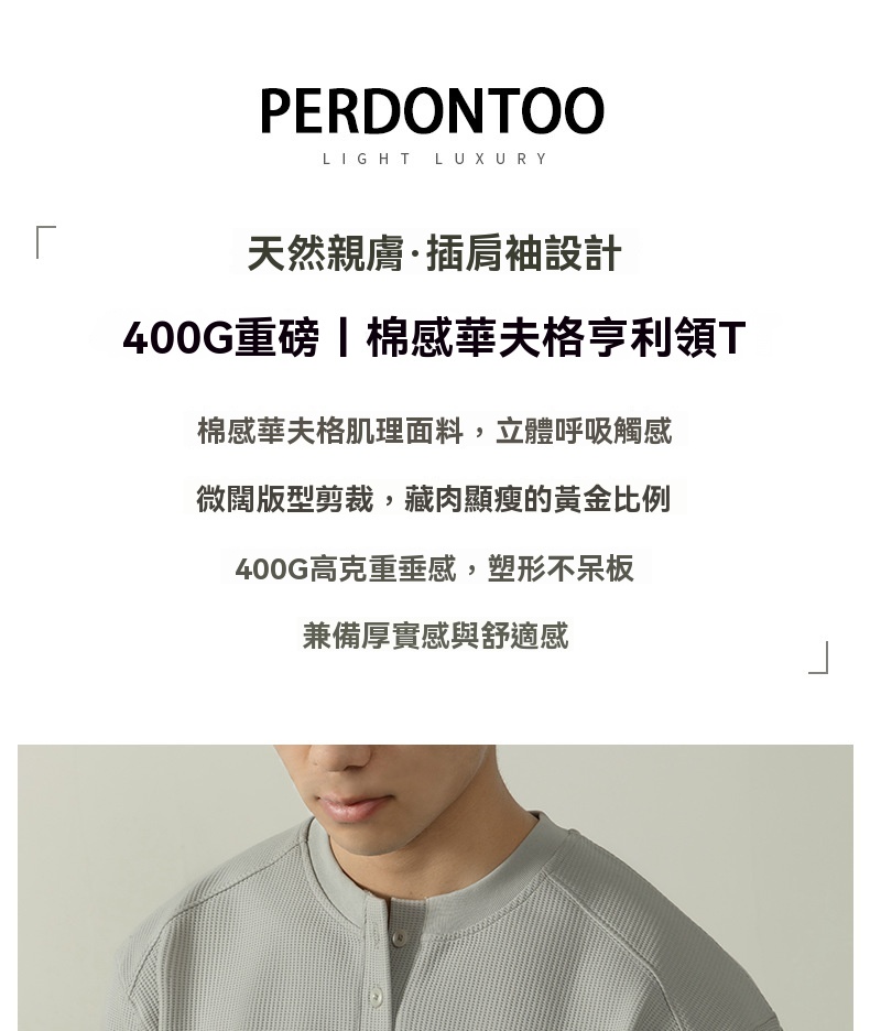 【CD精英系列】輕奢棉感400G華夫格亨利領T桖男款秋季通勤打底衫