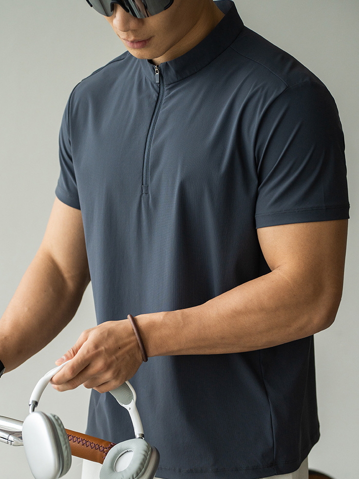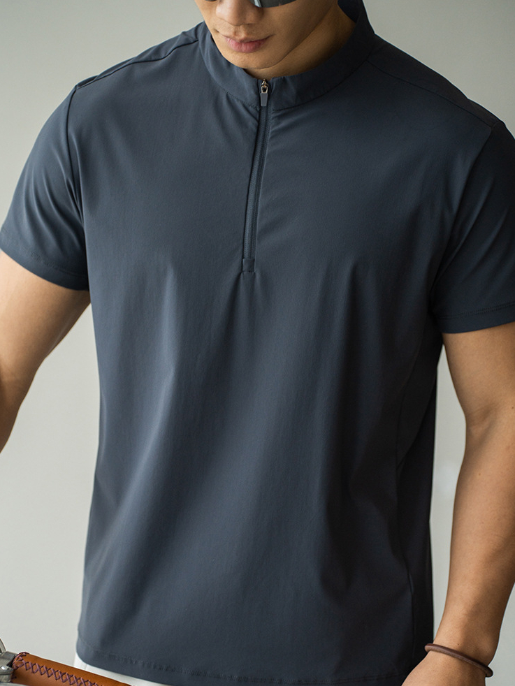 【UPF50+】半拉鍊運動短袖T恤速乾衣男士春季新款戶外运动上衣