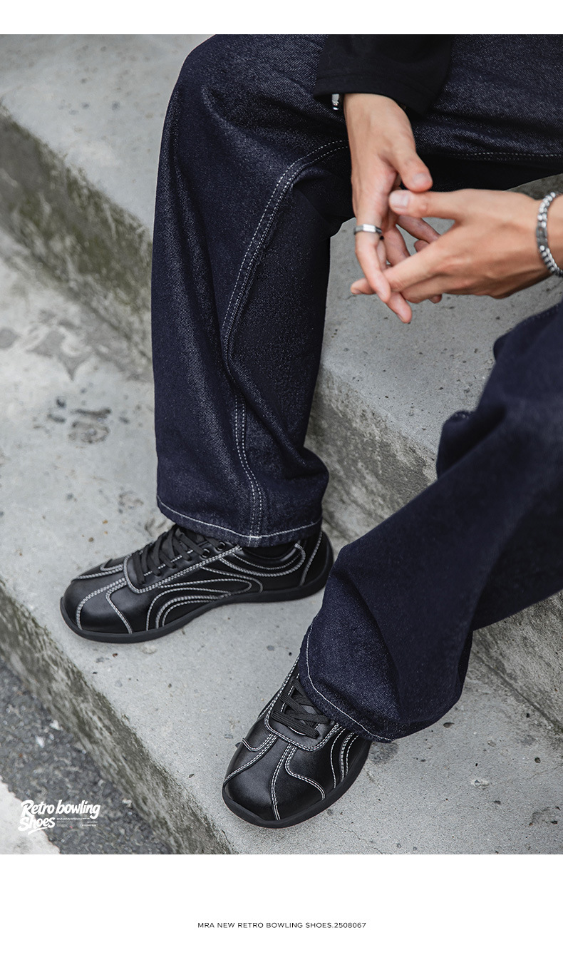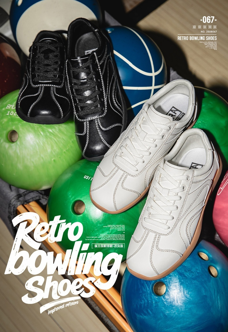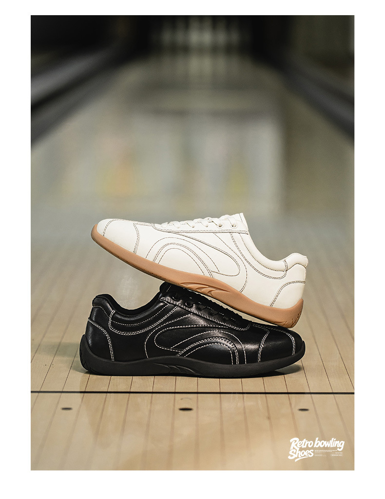 保齡球鞋男款平底方頭德訓賽車鞋通勤小白鞋復古運動休閒鞋子
