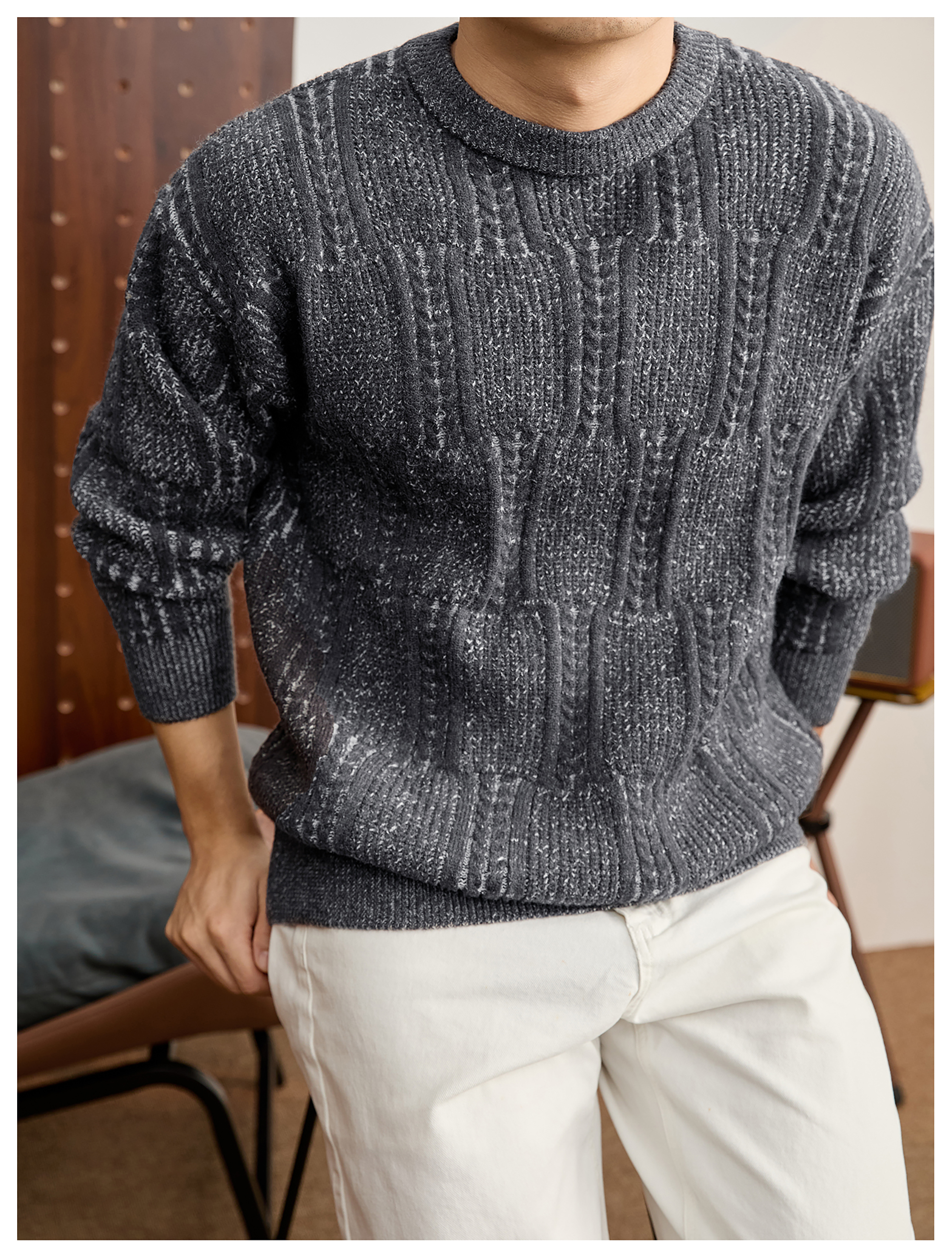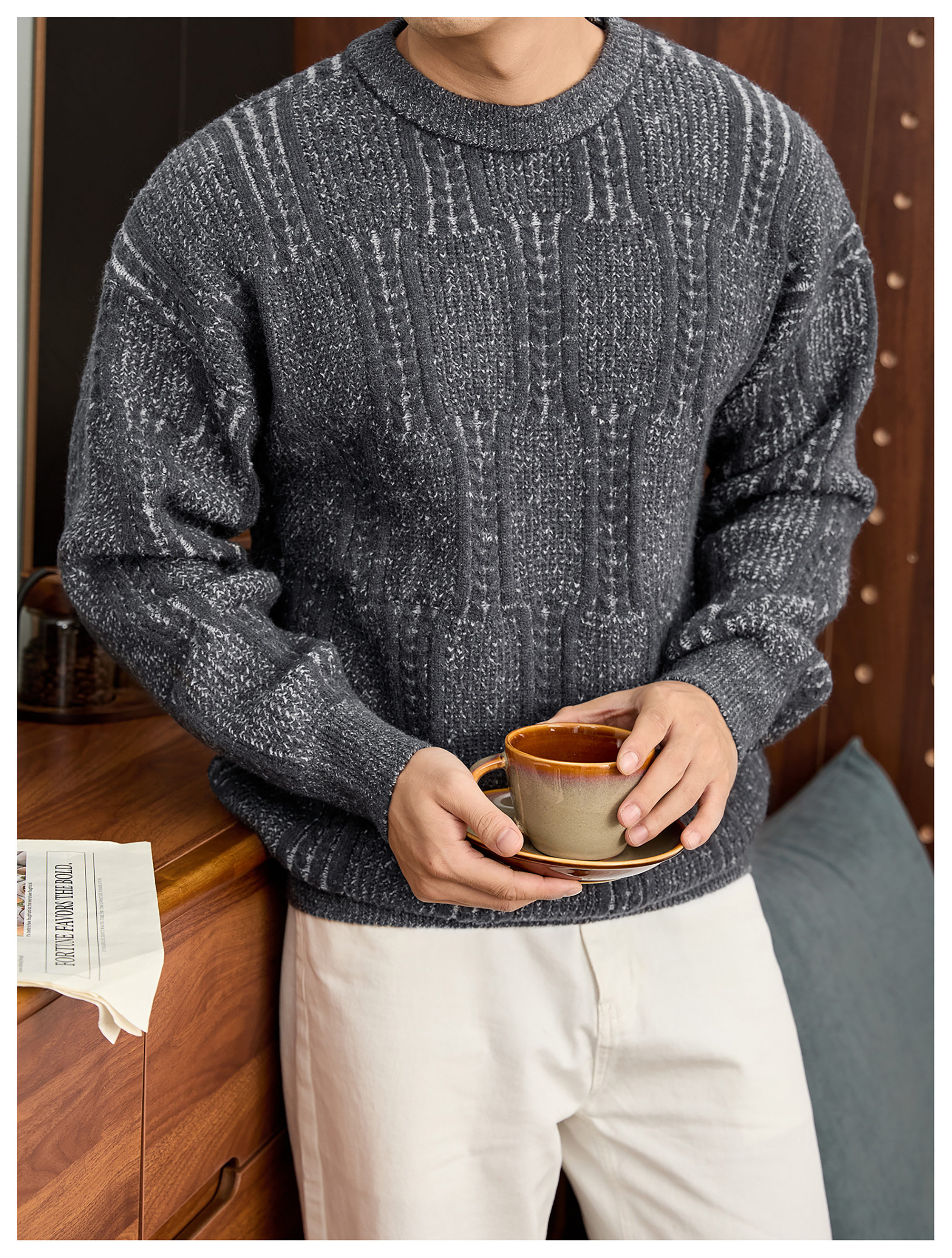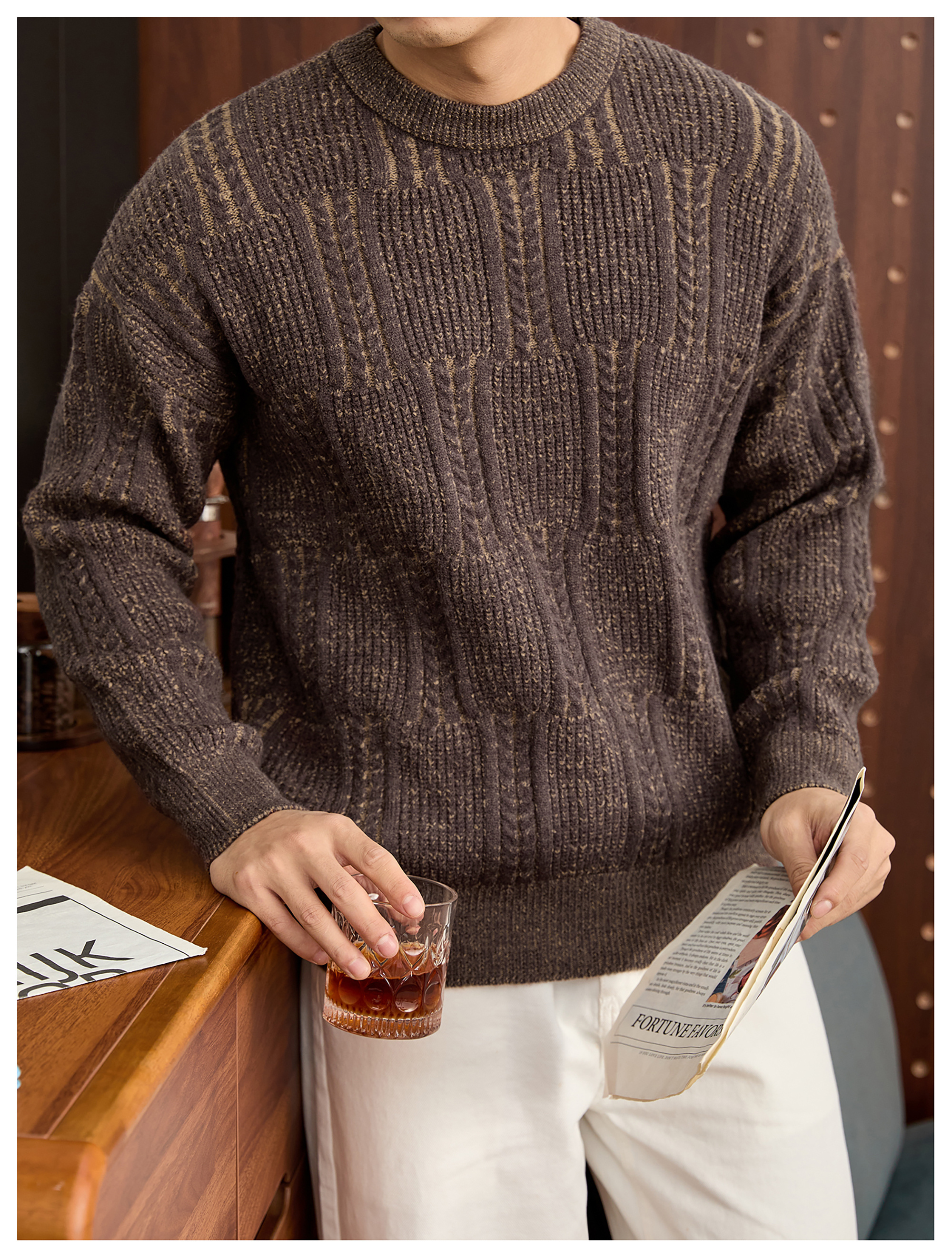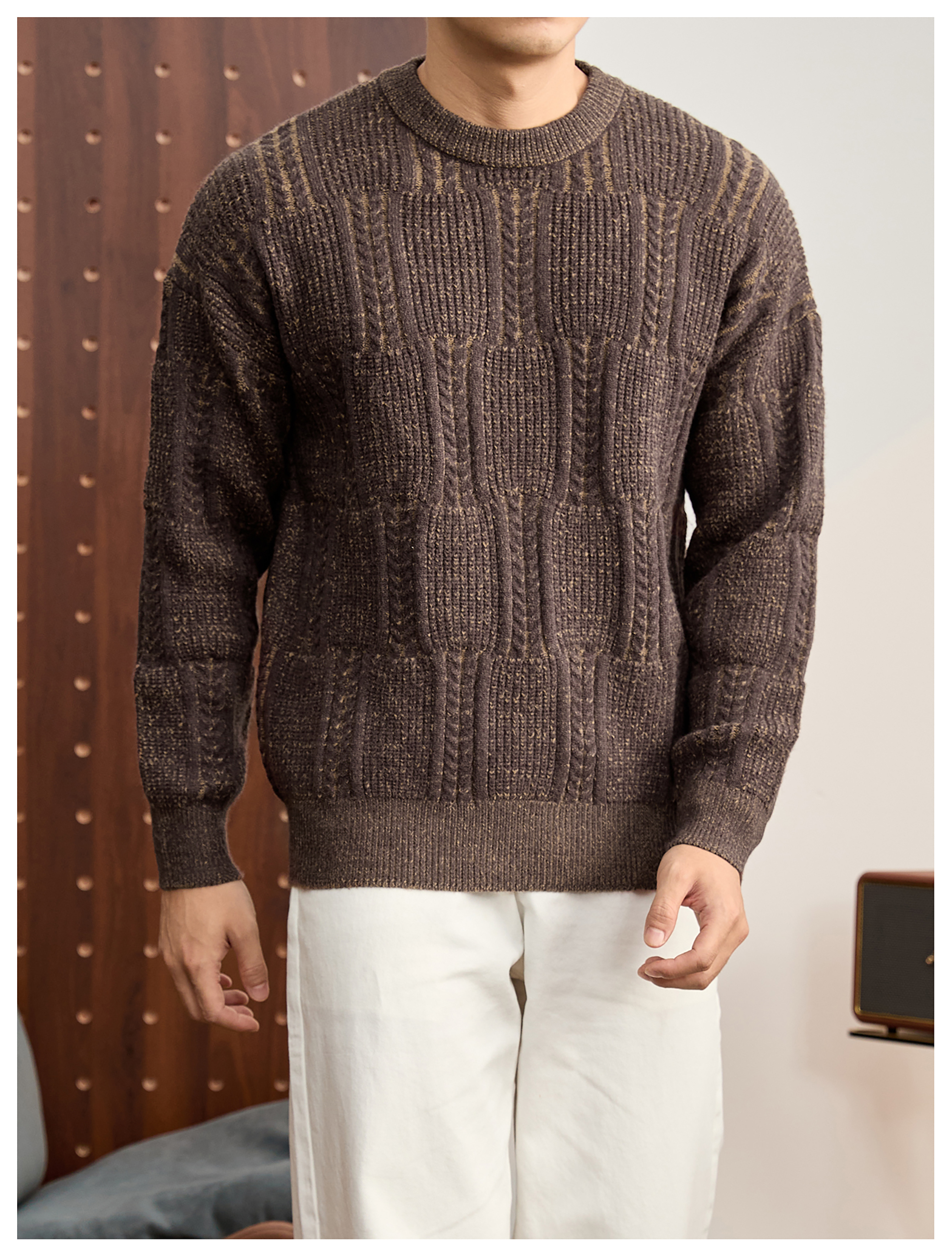 儒雅老錢麥穗紋肌理感毛衣男秋冬混色提花高克重690g針織衫