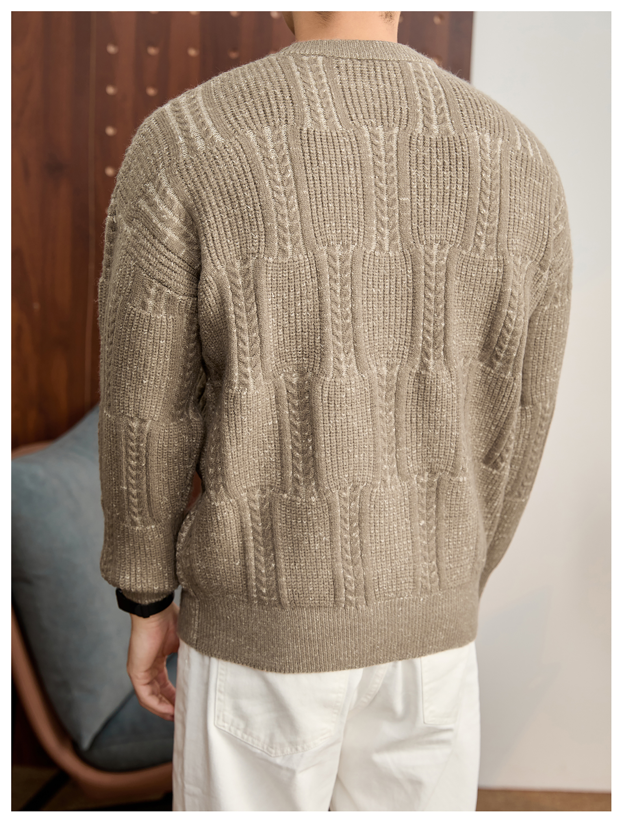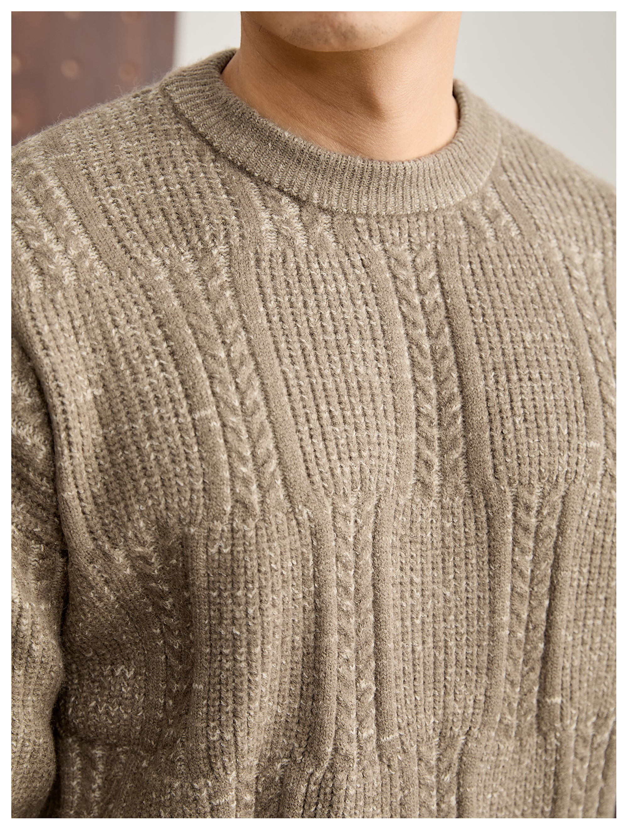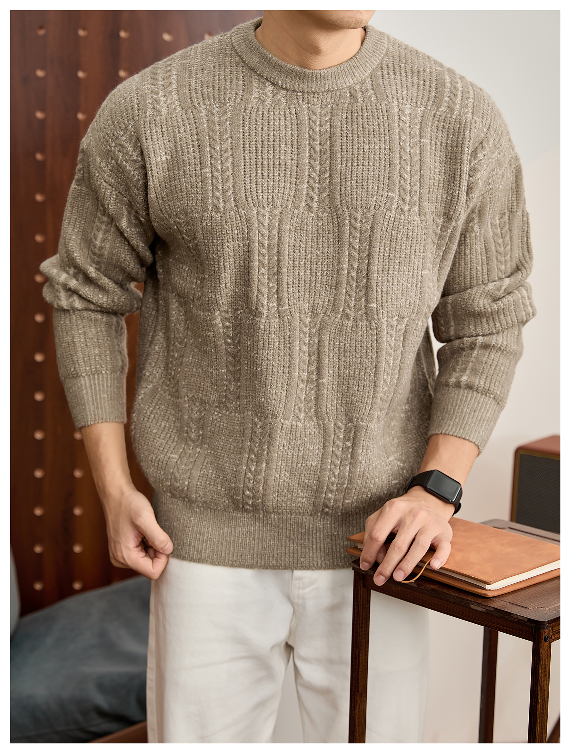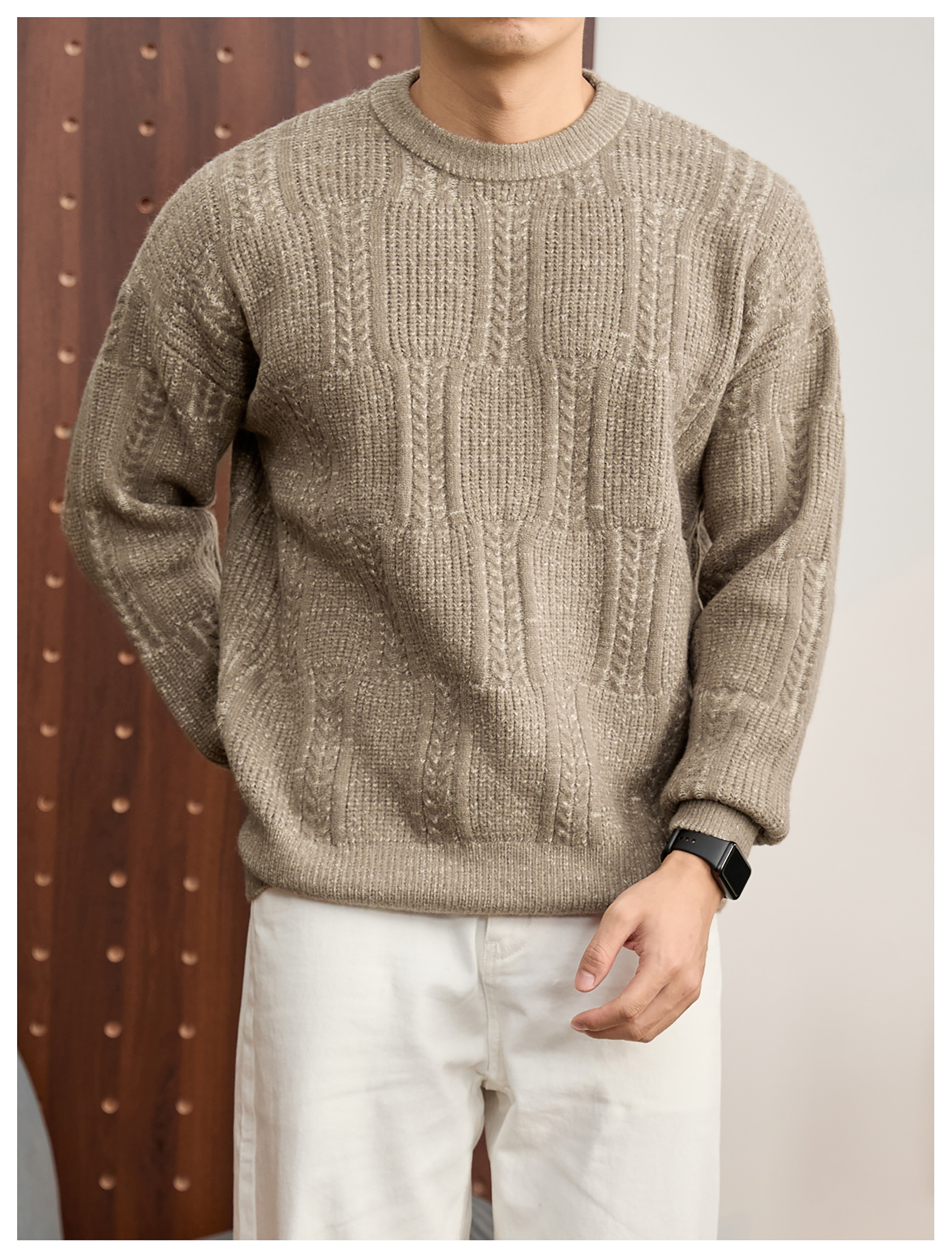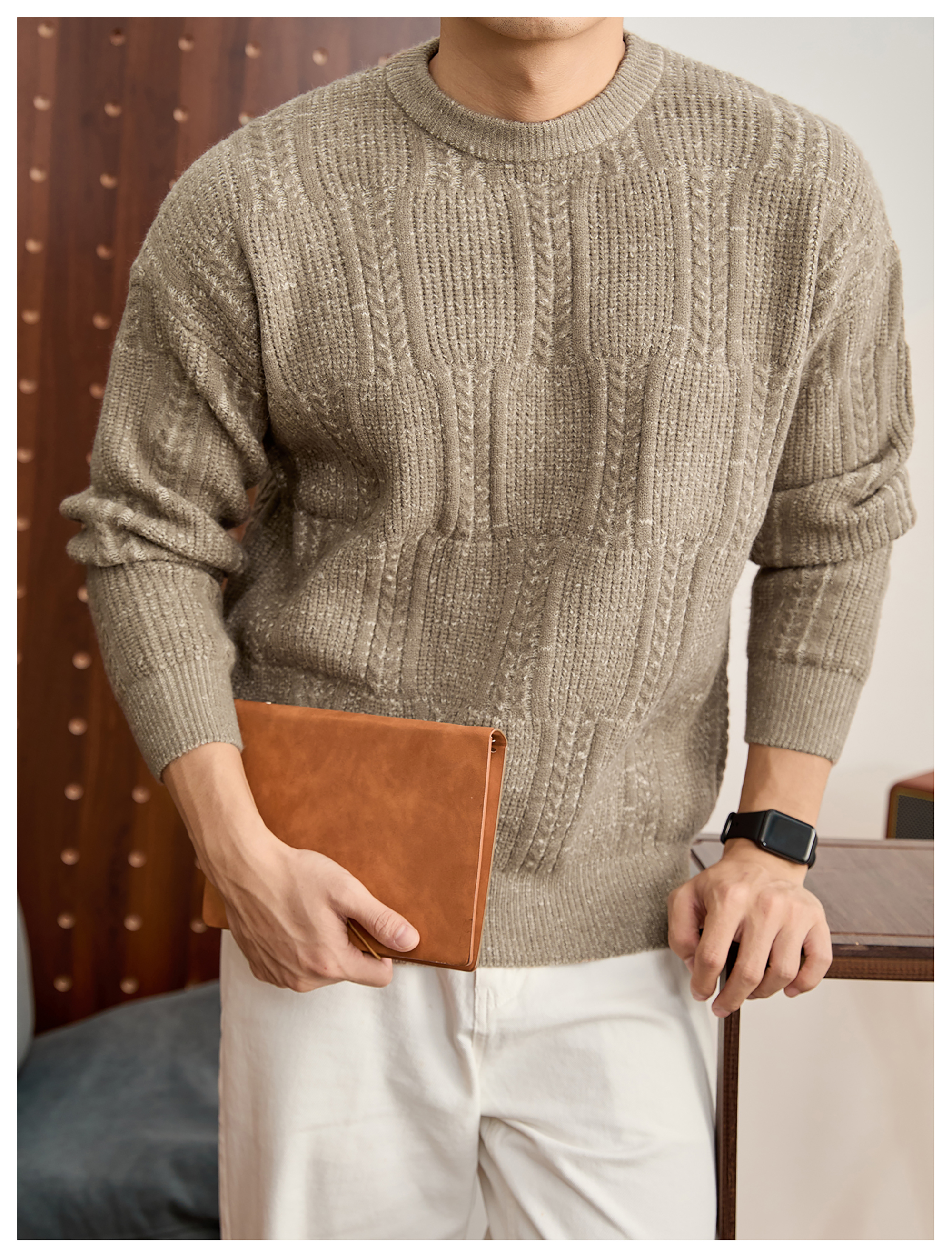 儒雅老錢麥穗紋肌理感毛衣男秋冬混色提花高克重690g針織衫