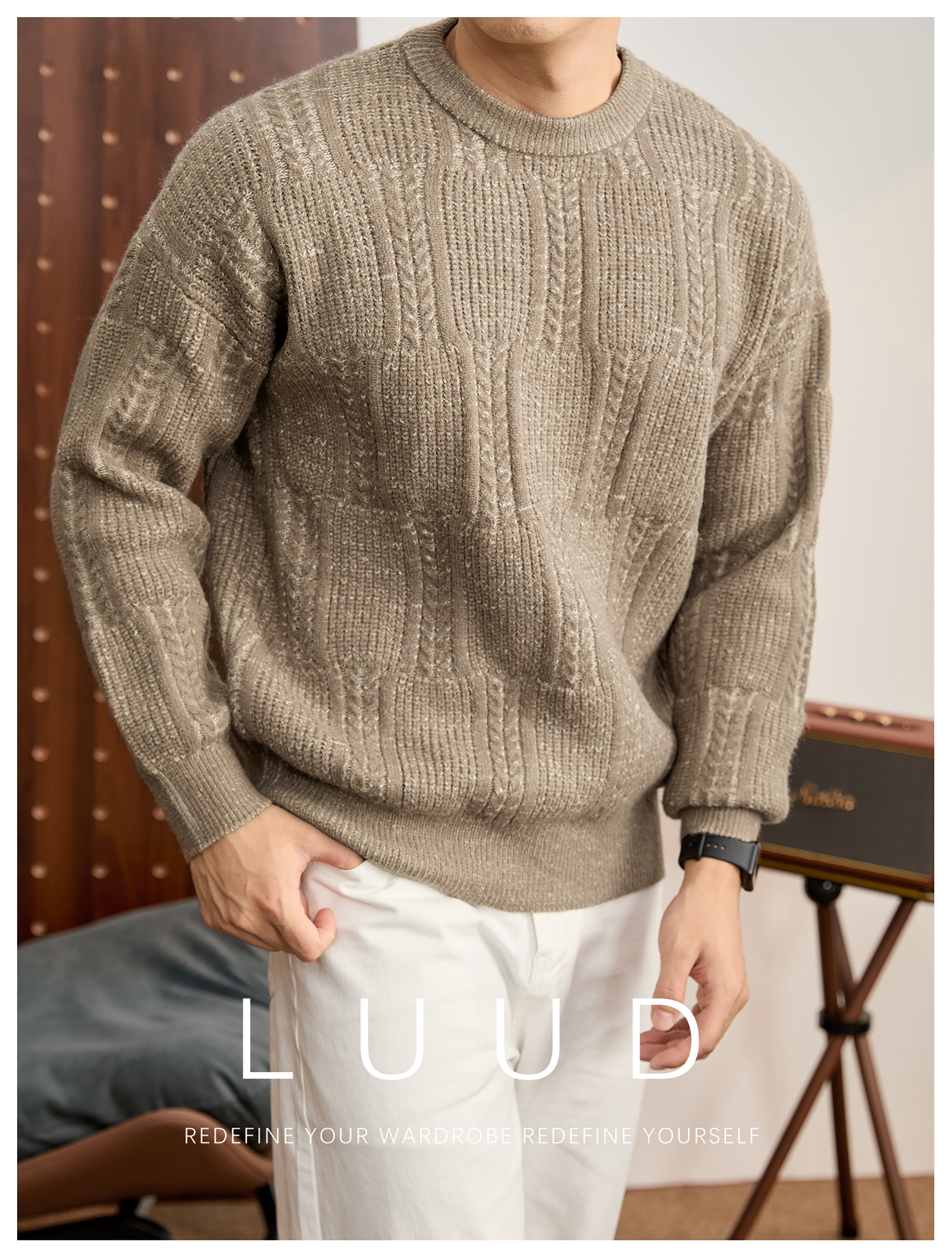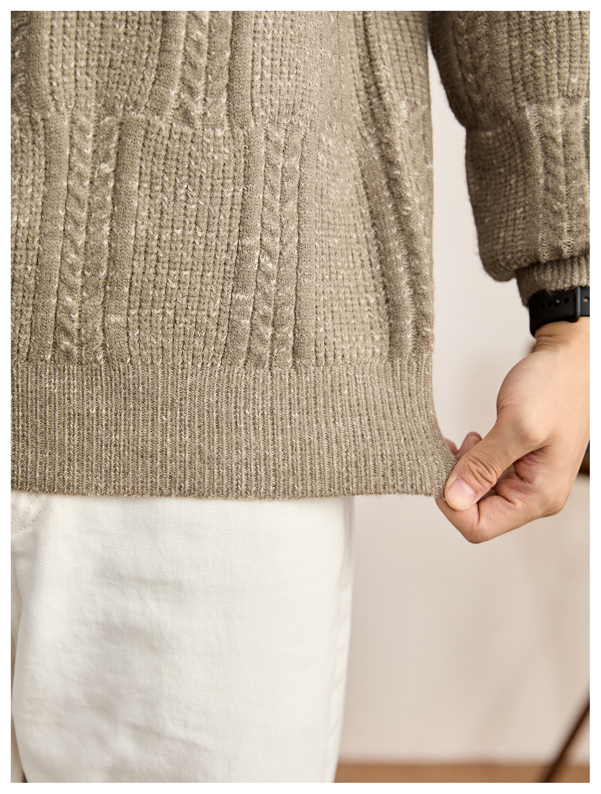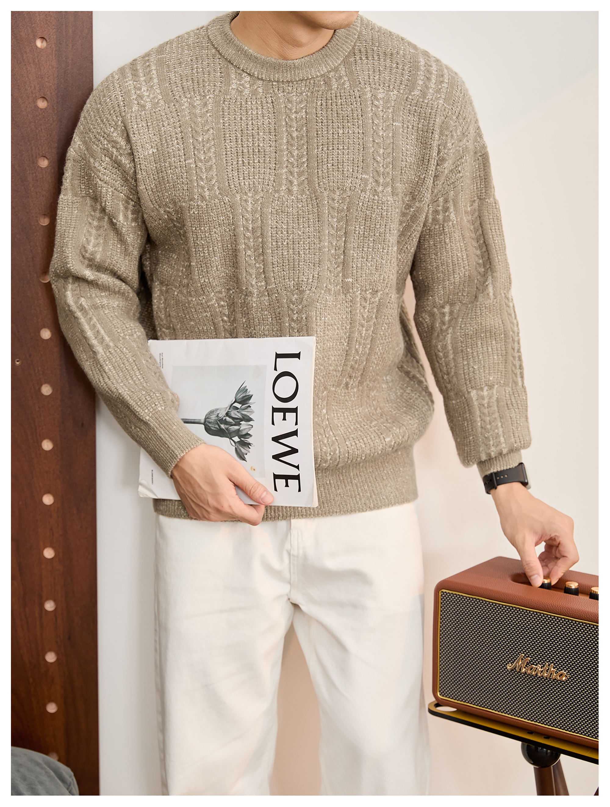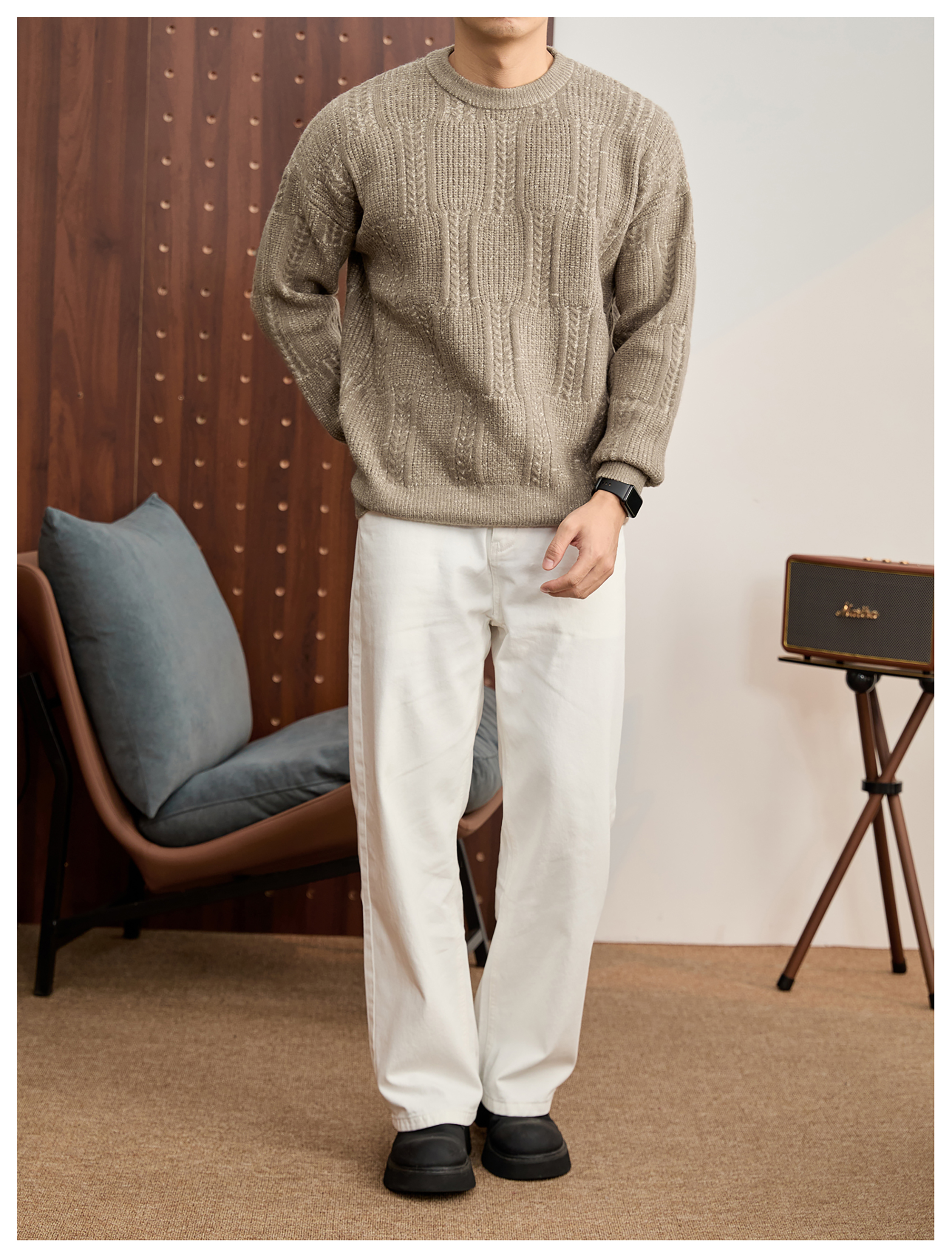 儒雅老錢麥穗紋肌理感毛衣男秋冬混色提花高克重690g針織衫