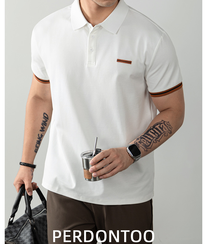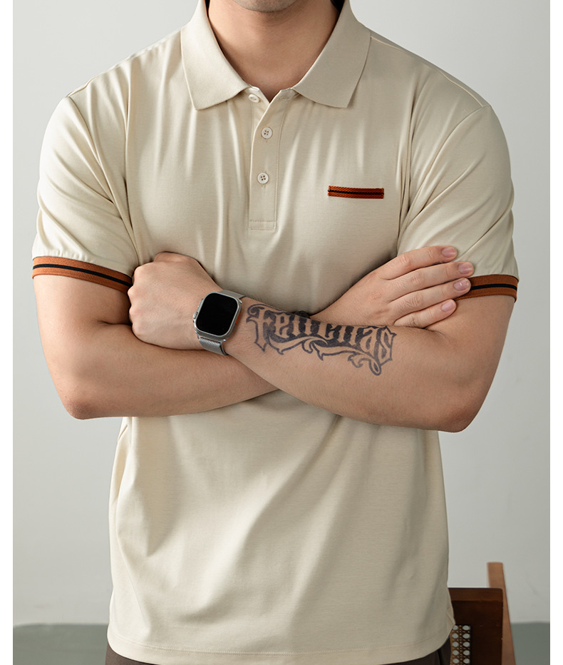 冰格涼感萊賽爾男士POLO領短袖高端老錢風夏季商務休閒撞色保羅衫