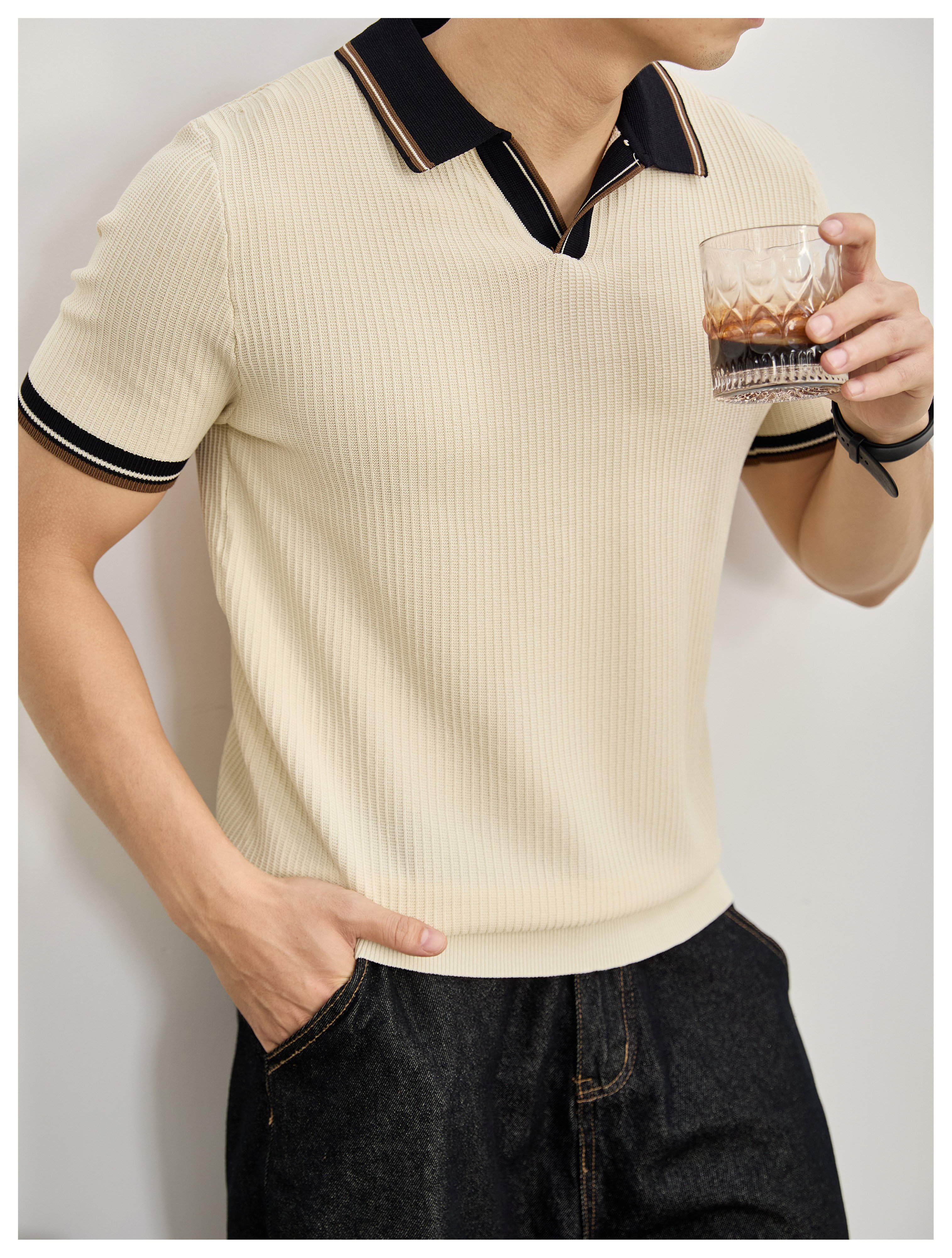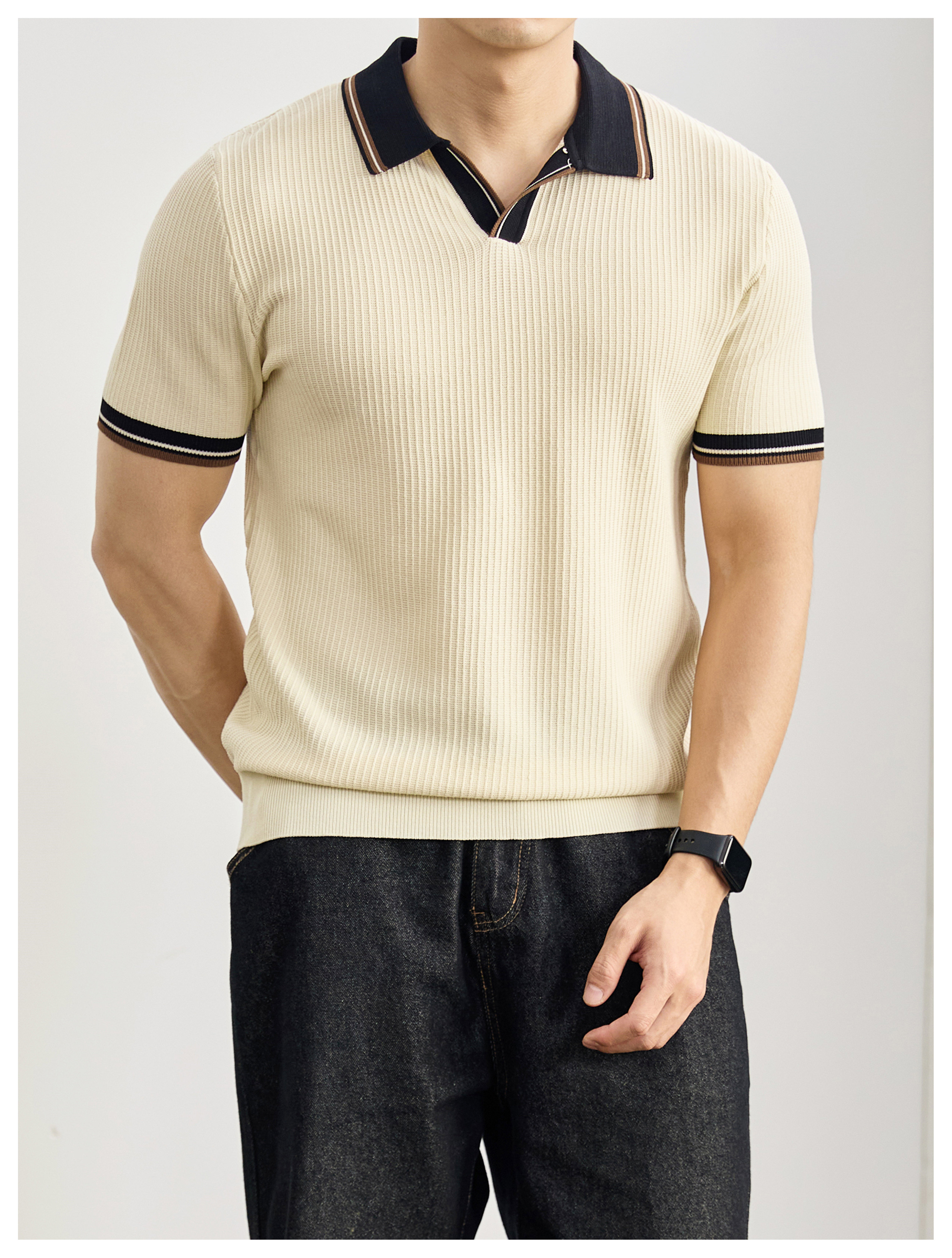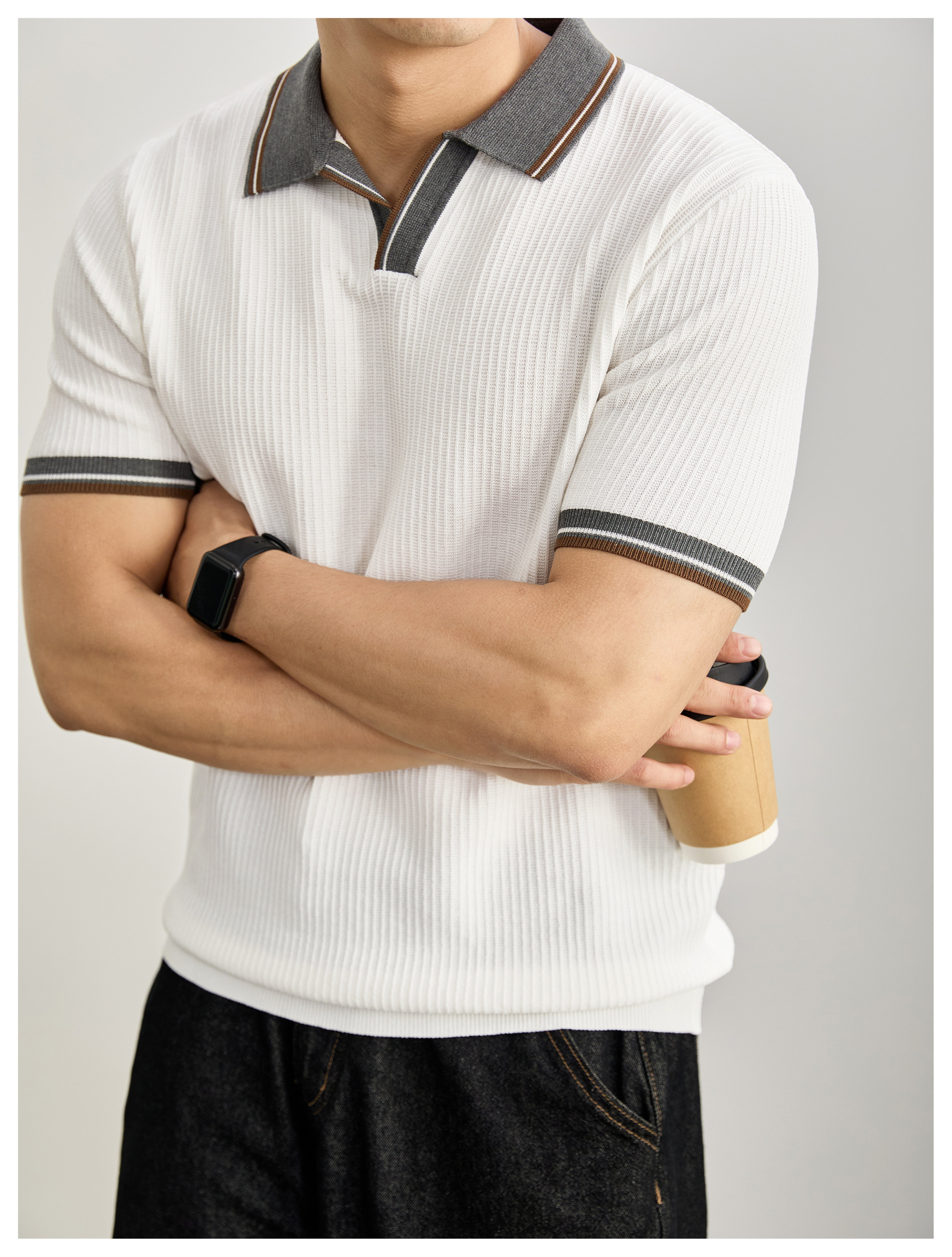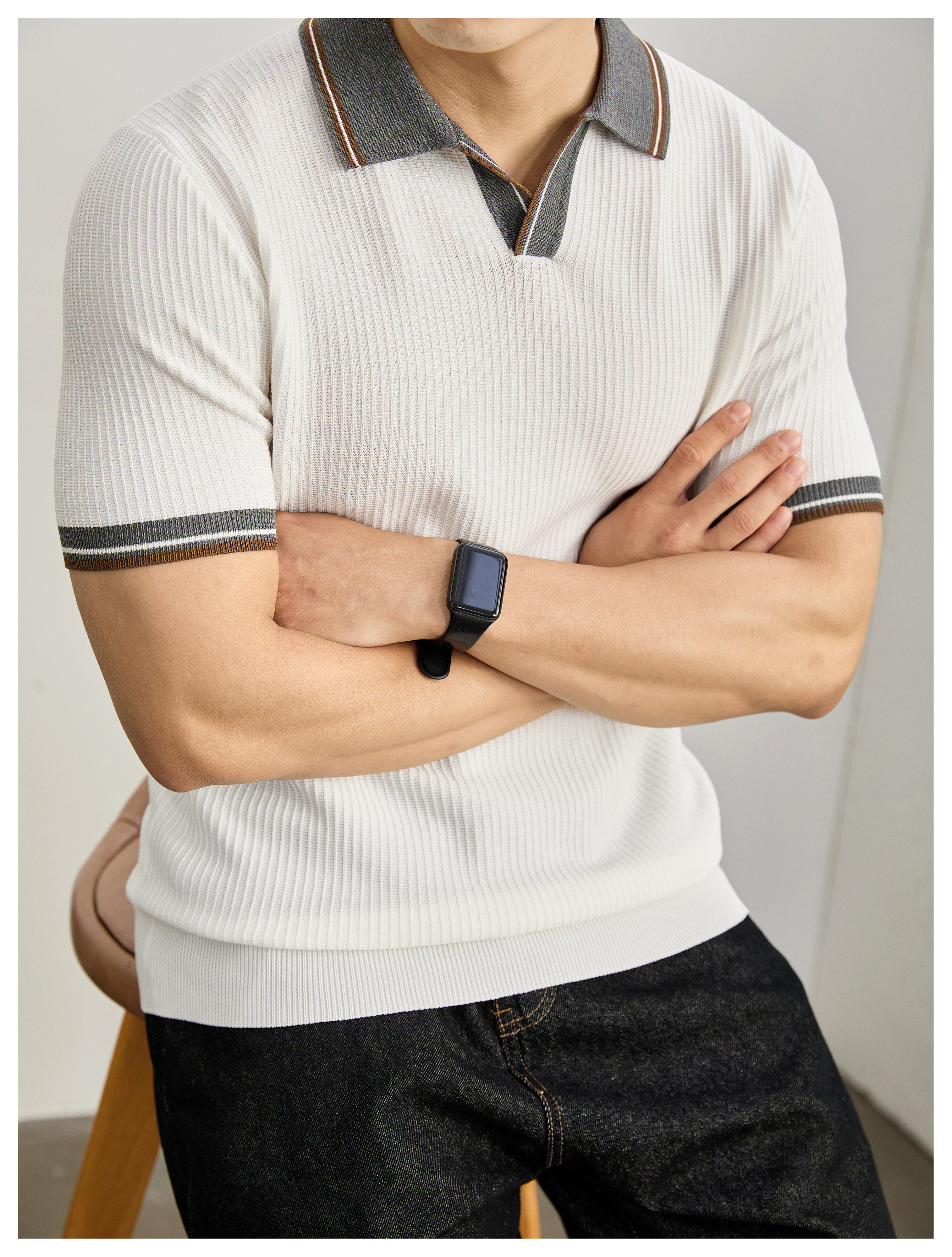 坑條肌理感簡約休閒百搭款翻領短袖T恤男夏海鷗領針織POLO衫