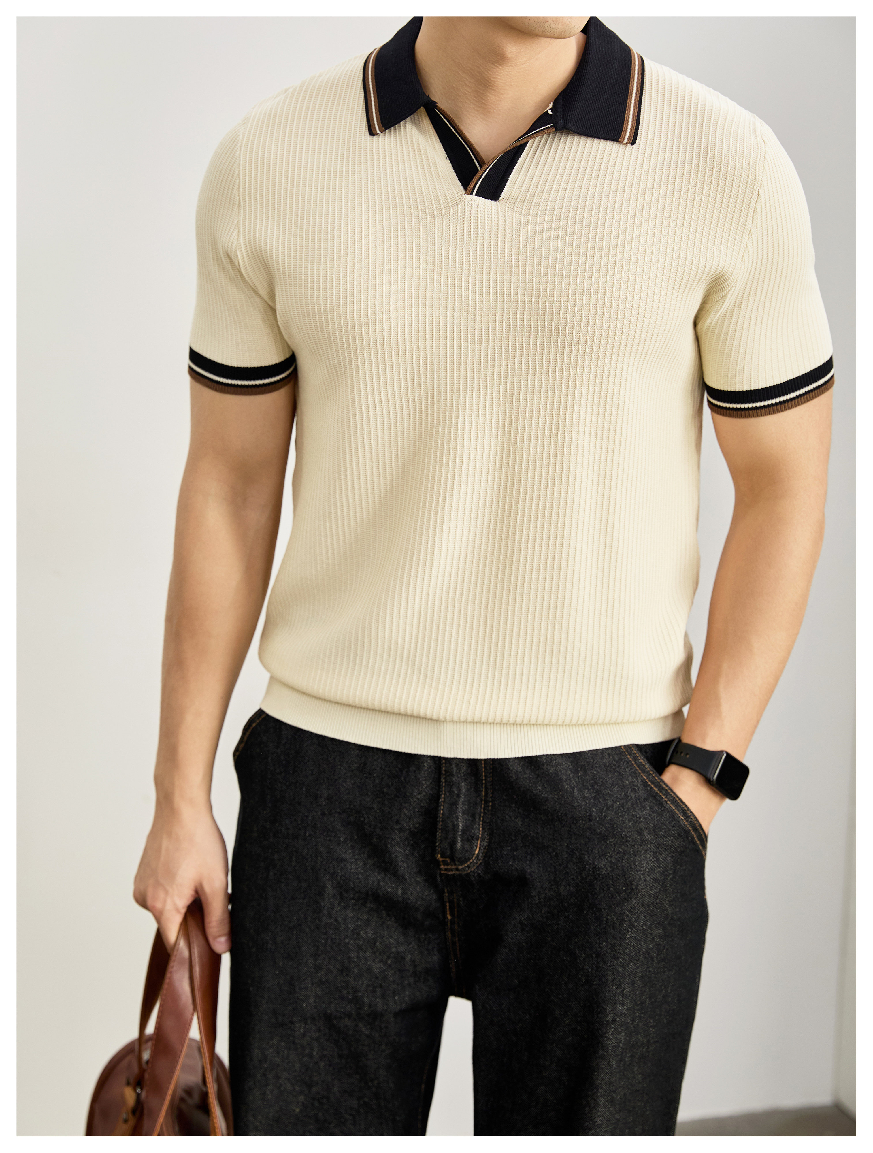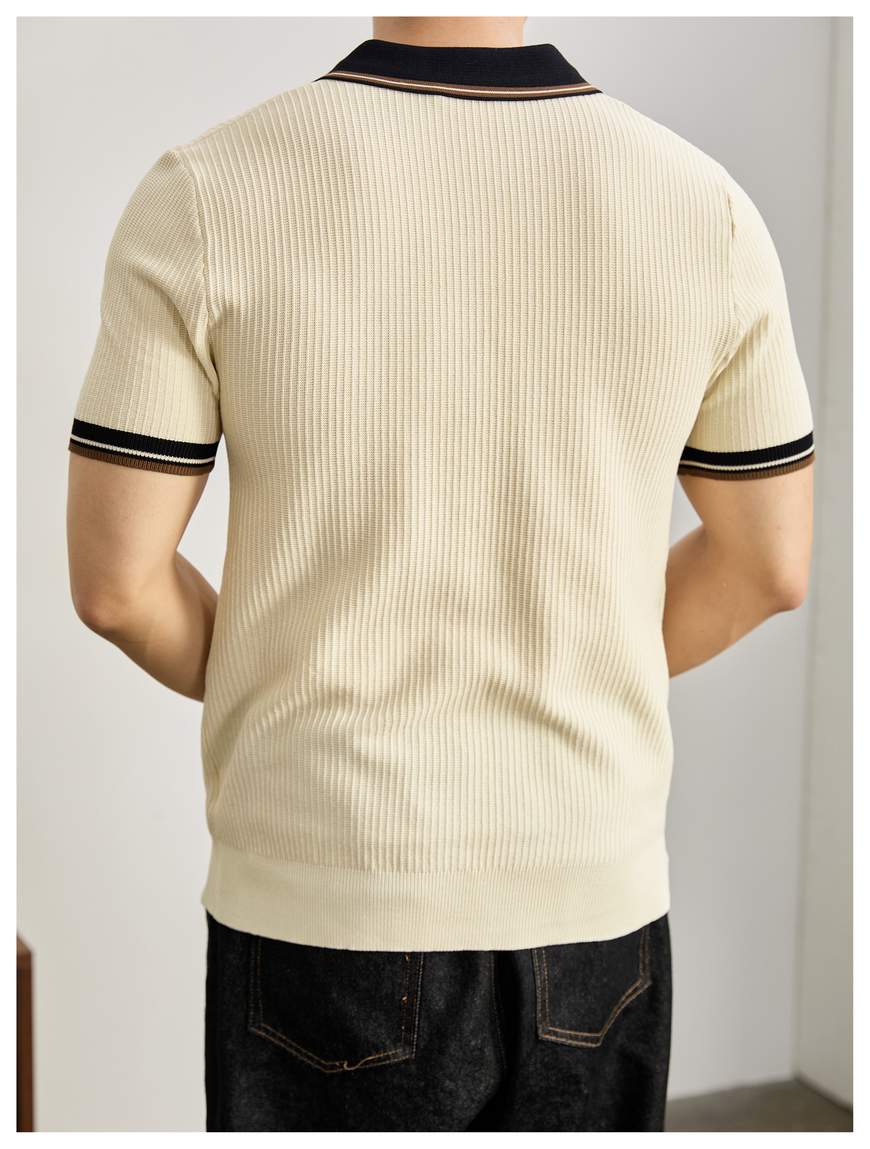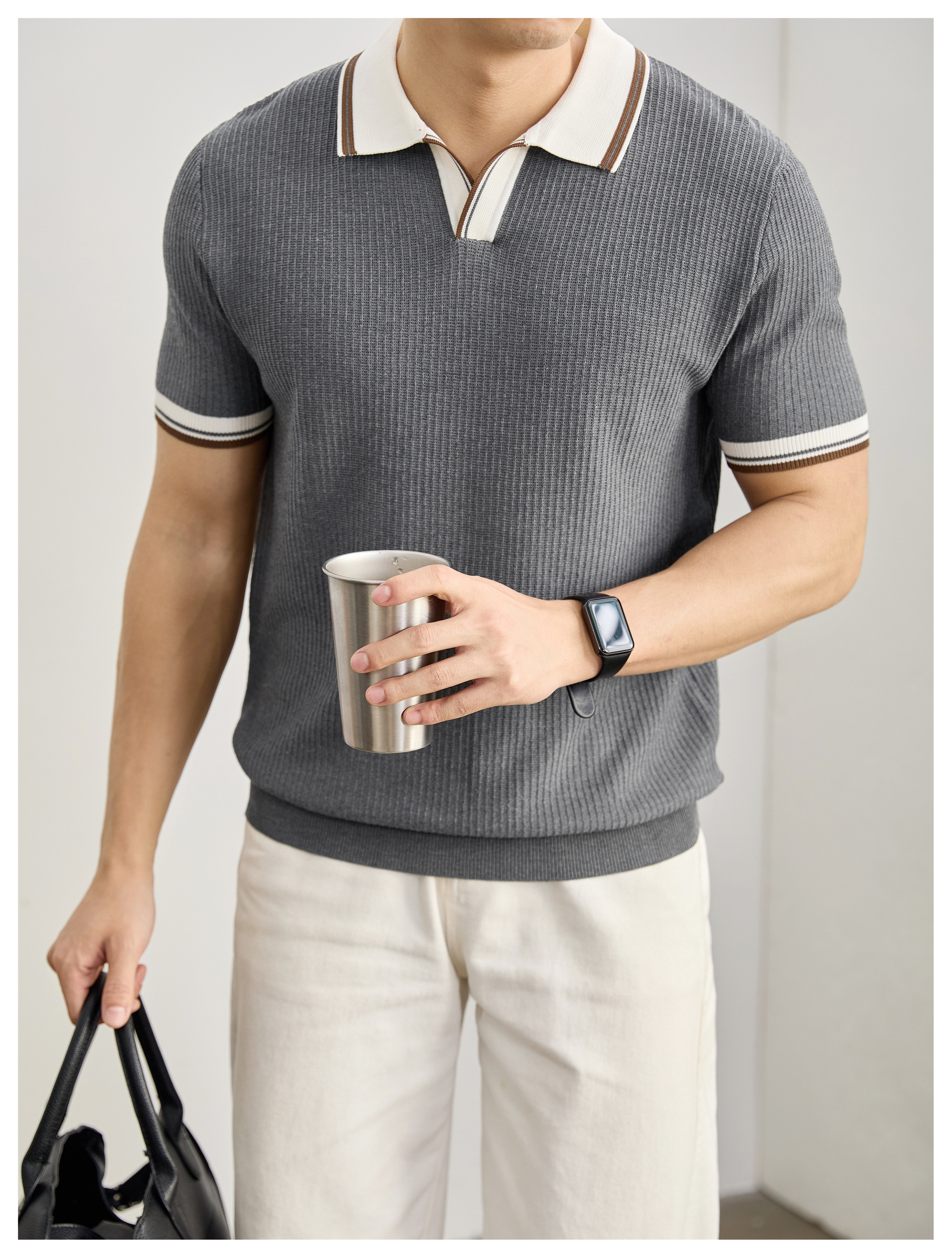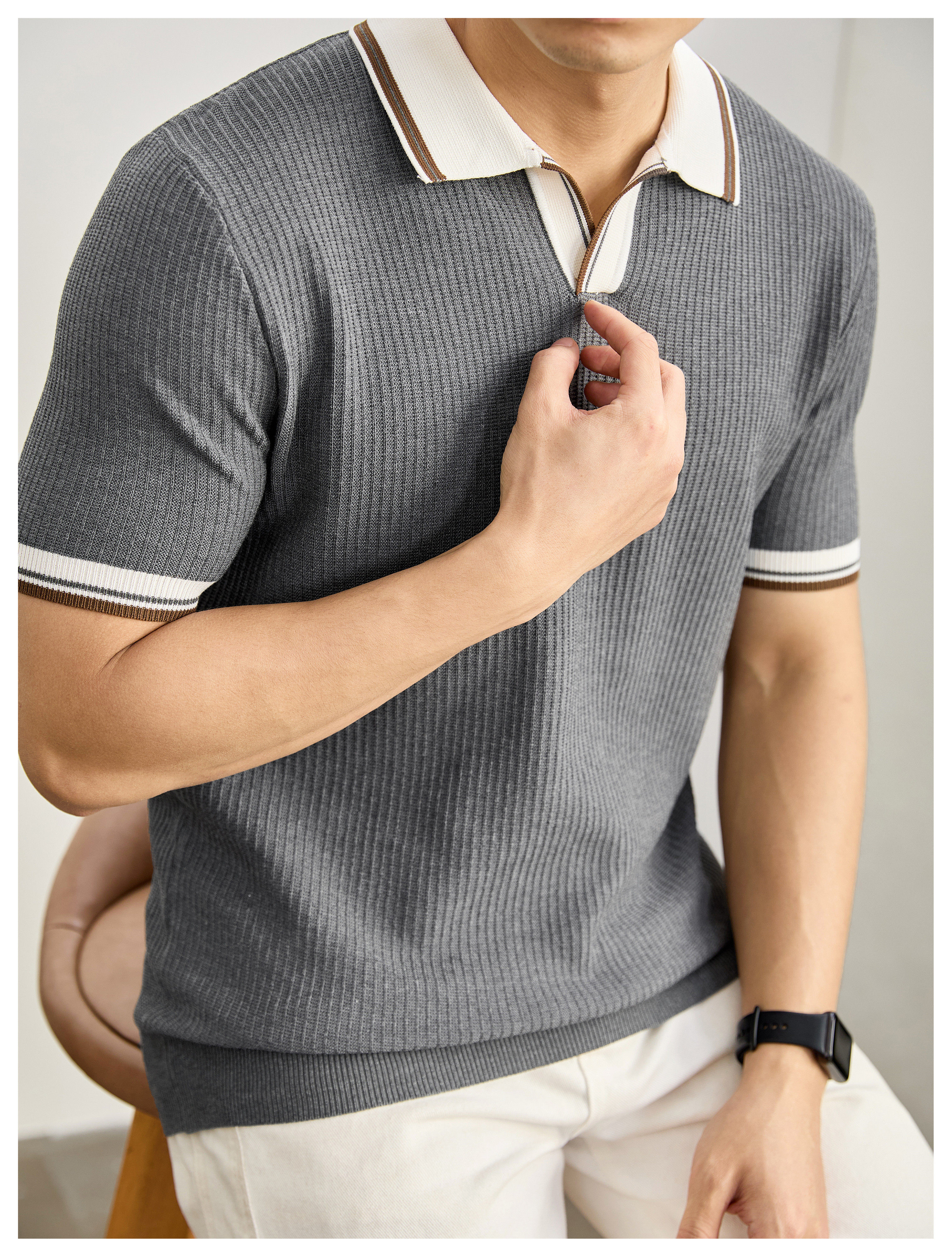 坑條肌理感簡約休閒百搭款翻領短袖T恤男夏海鷗領針織POLO衫