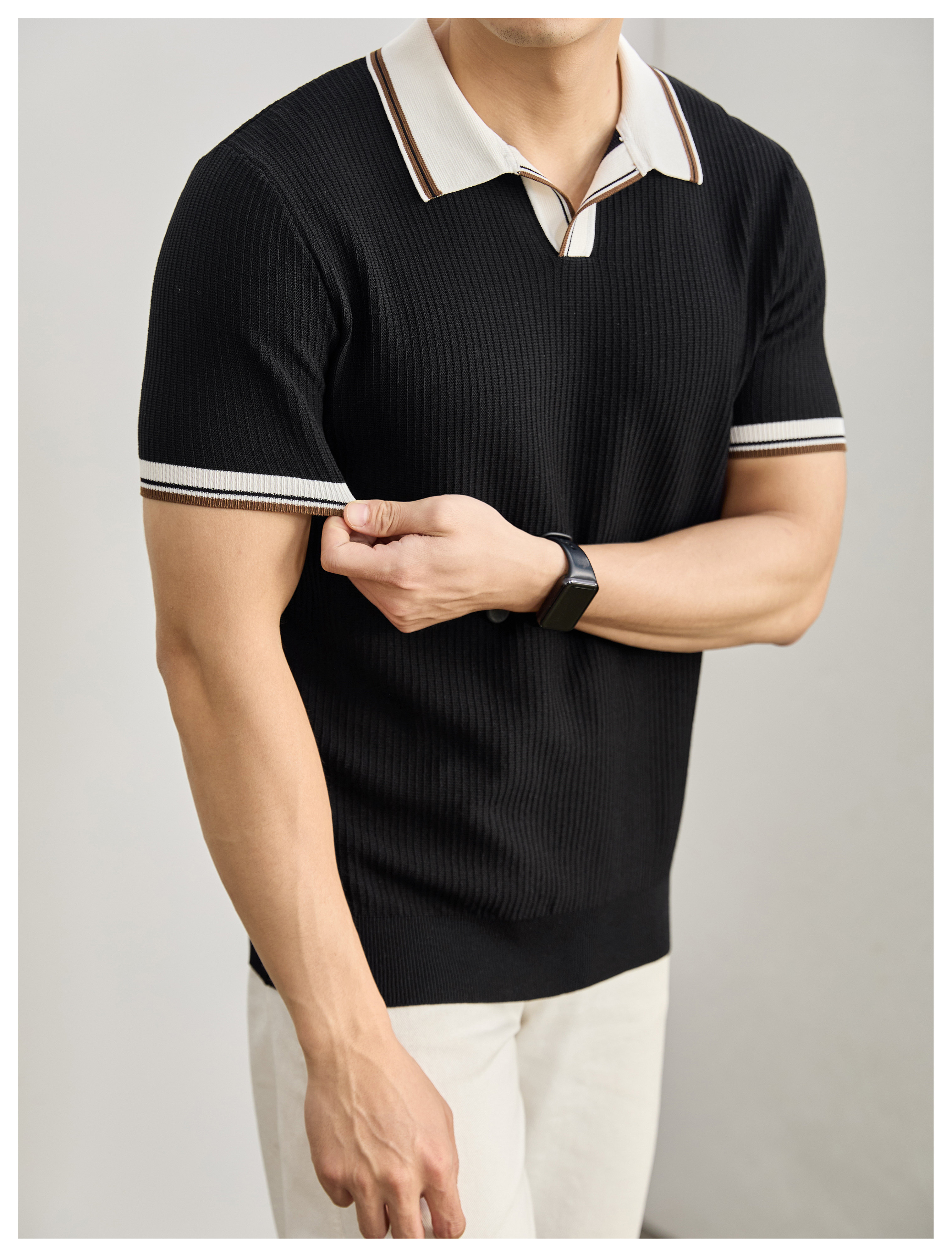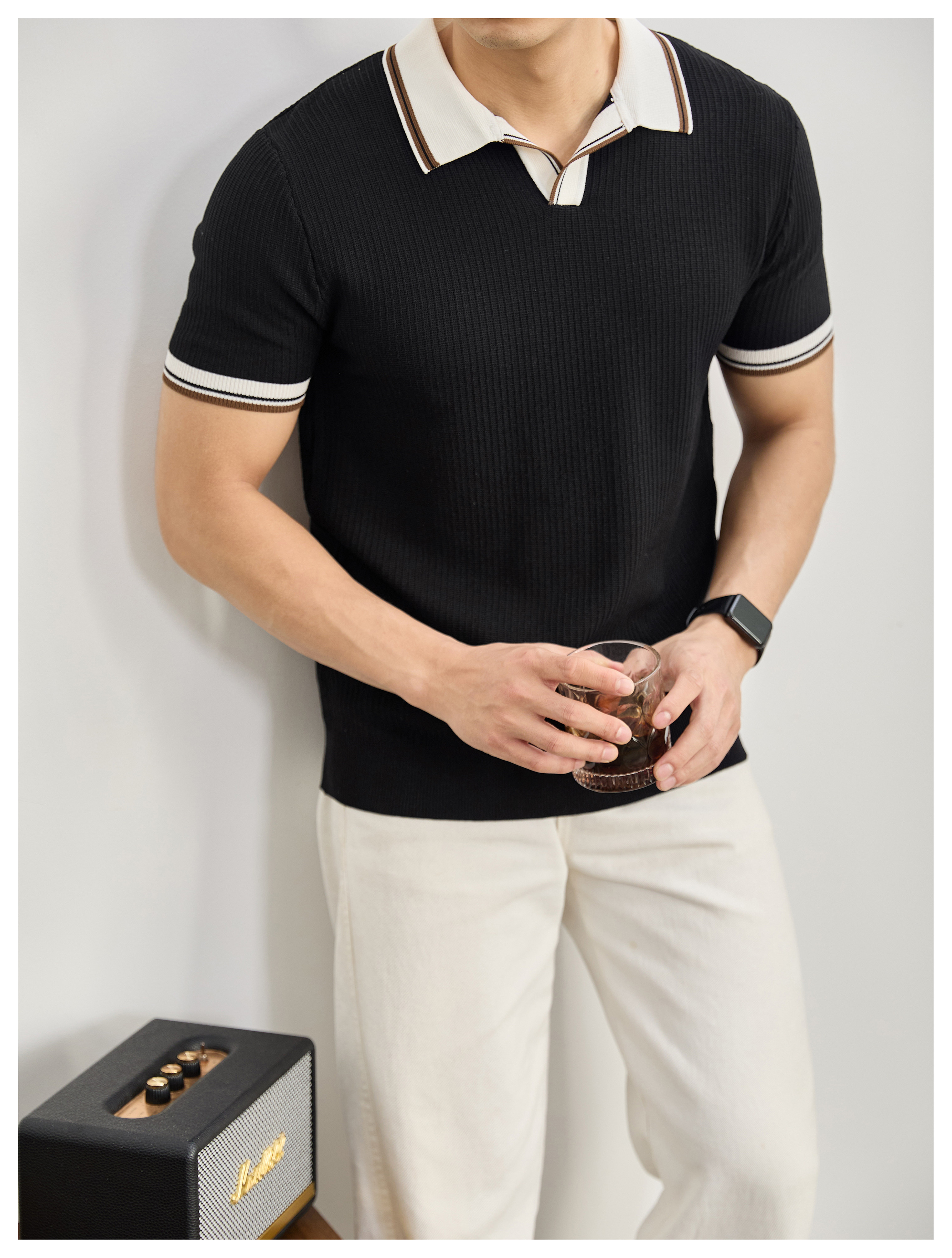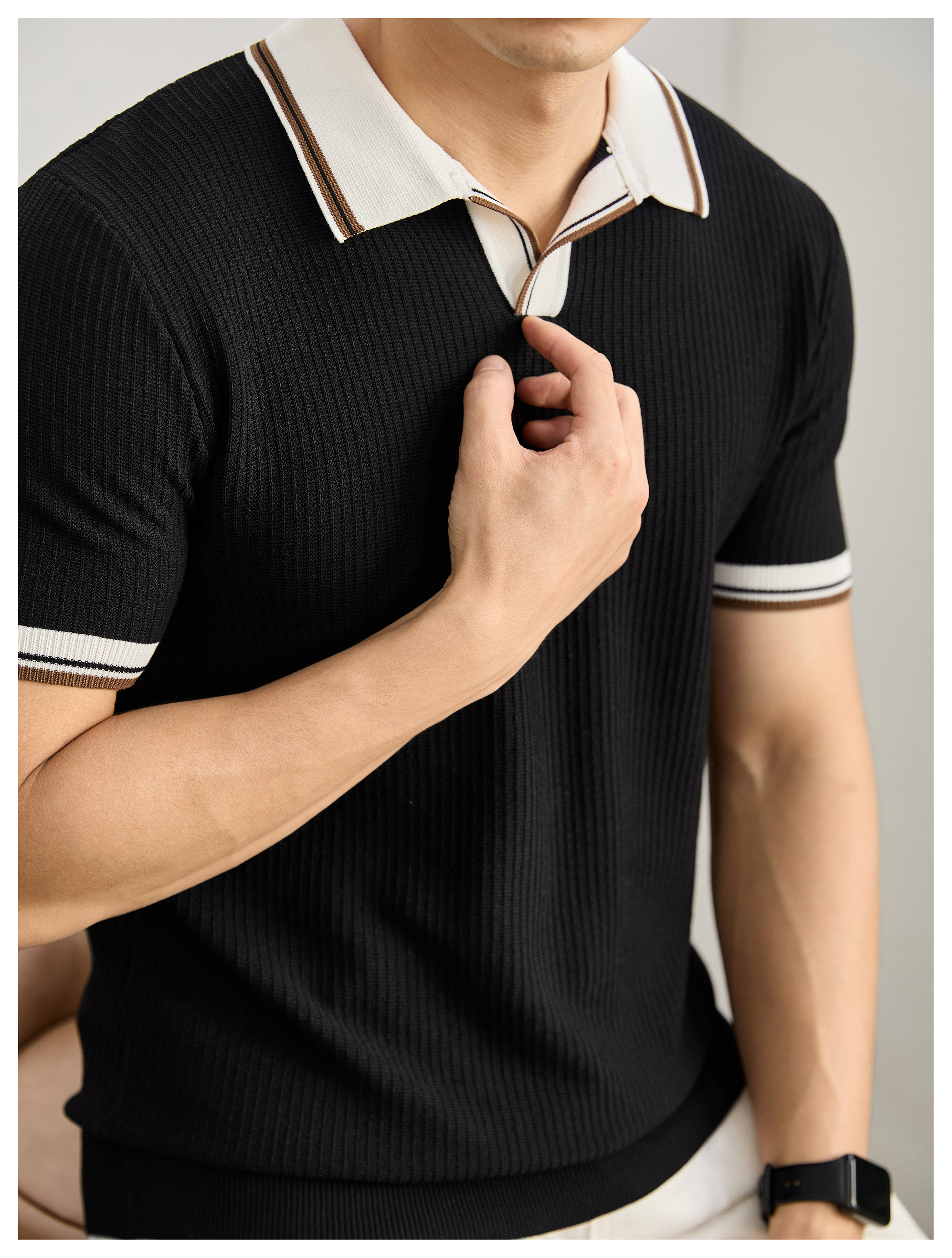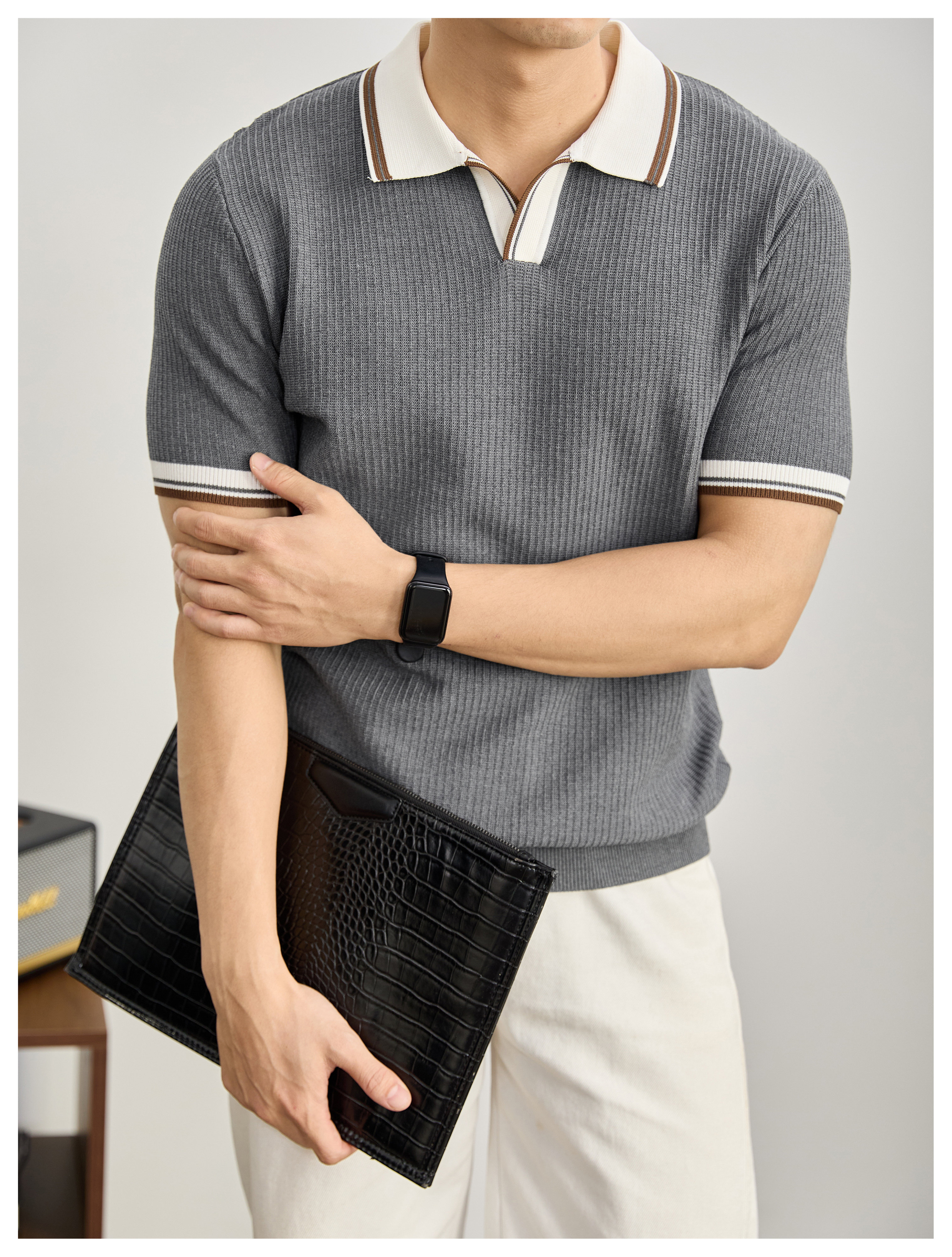 坑條肌理感簡約休閒百搭款翻領短袖T恤男夏海鷗領針織POLO衫