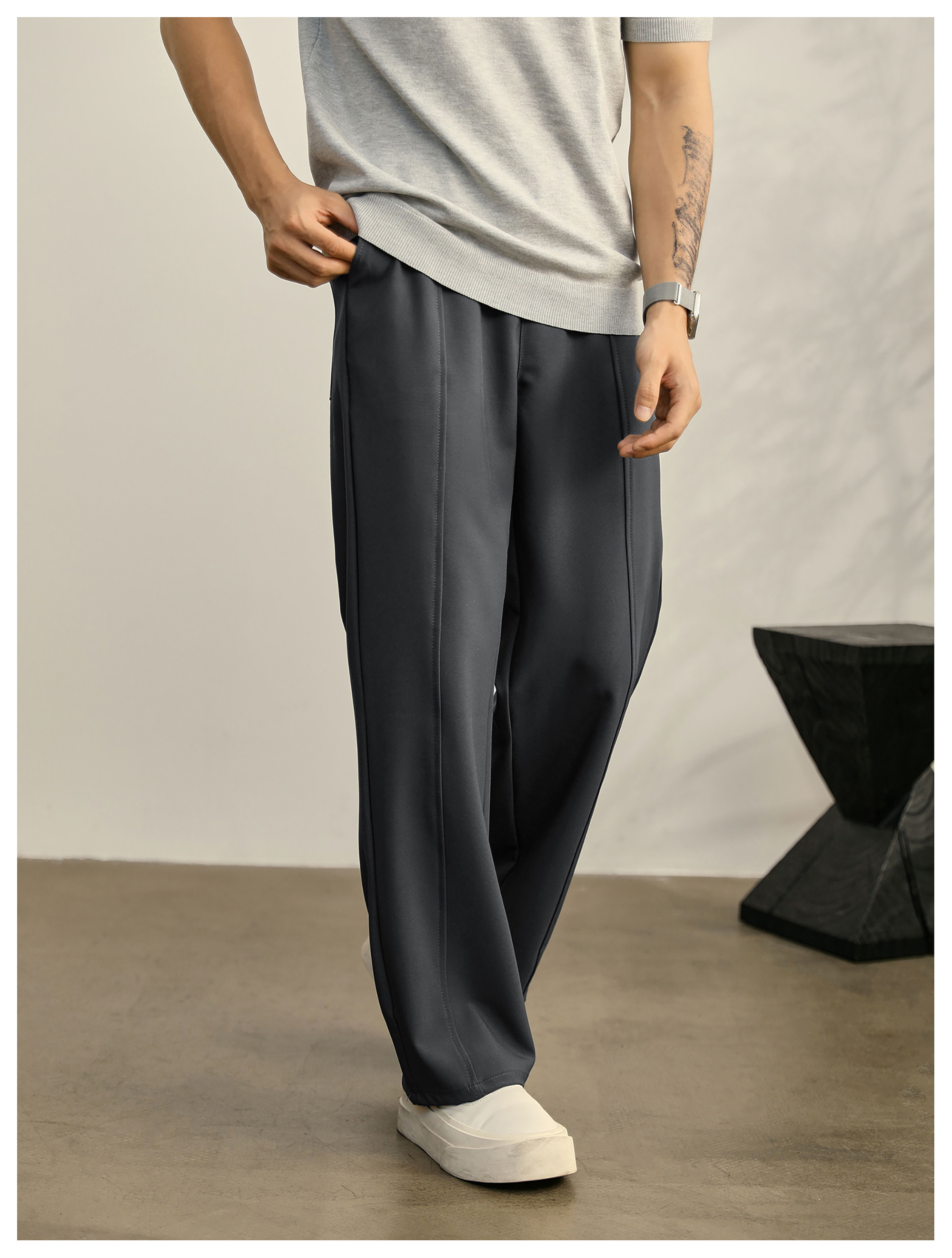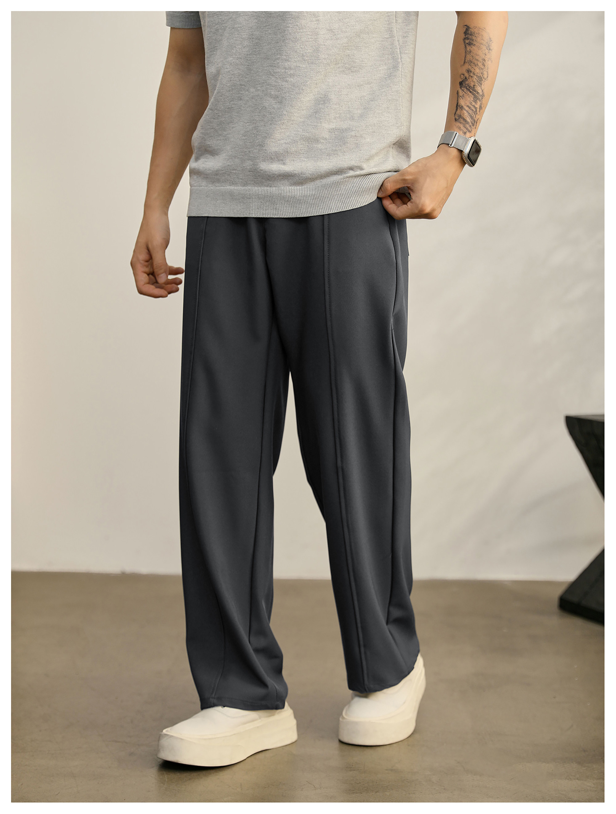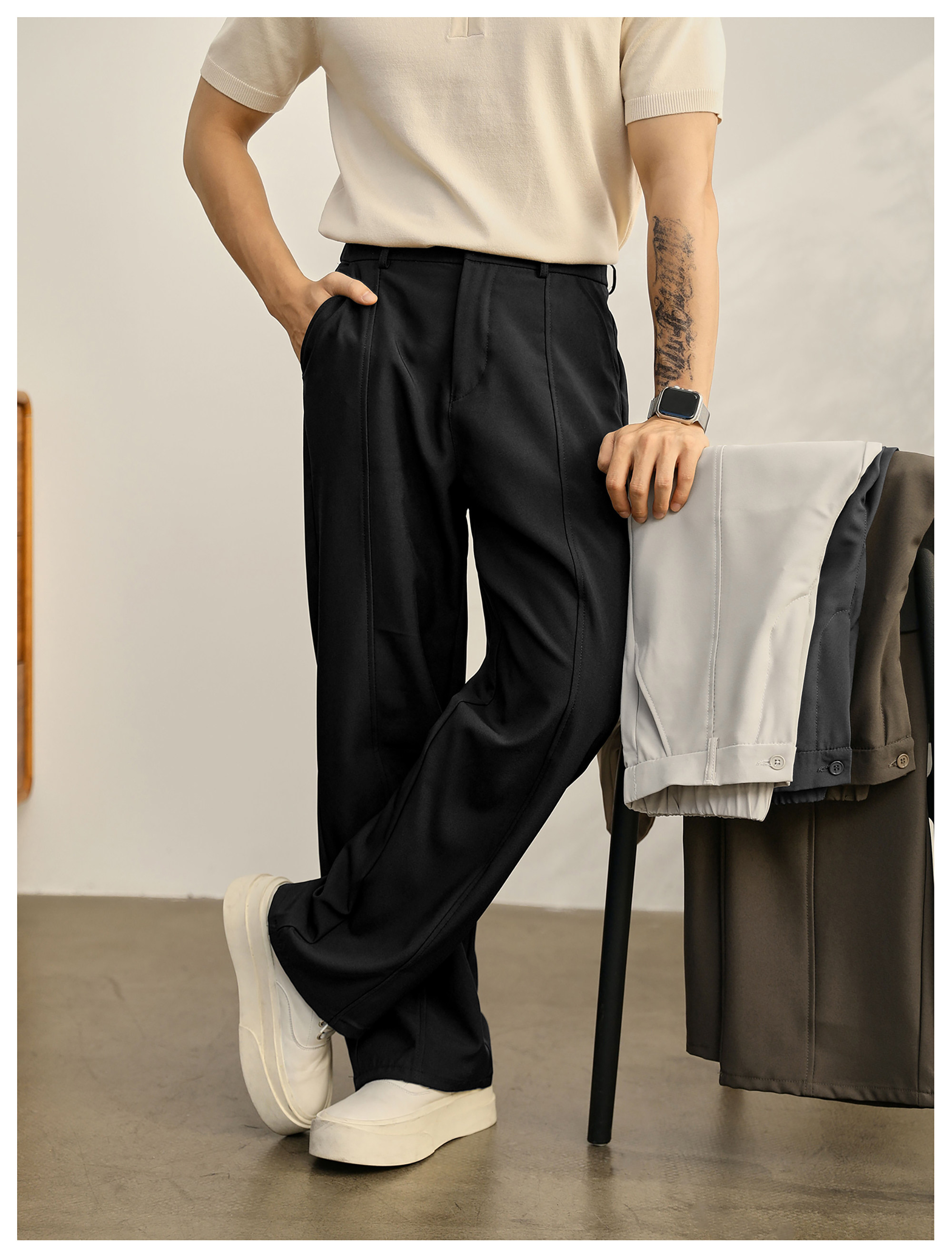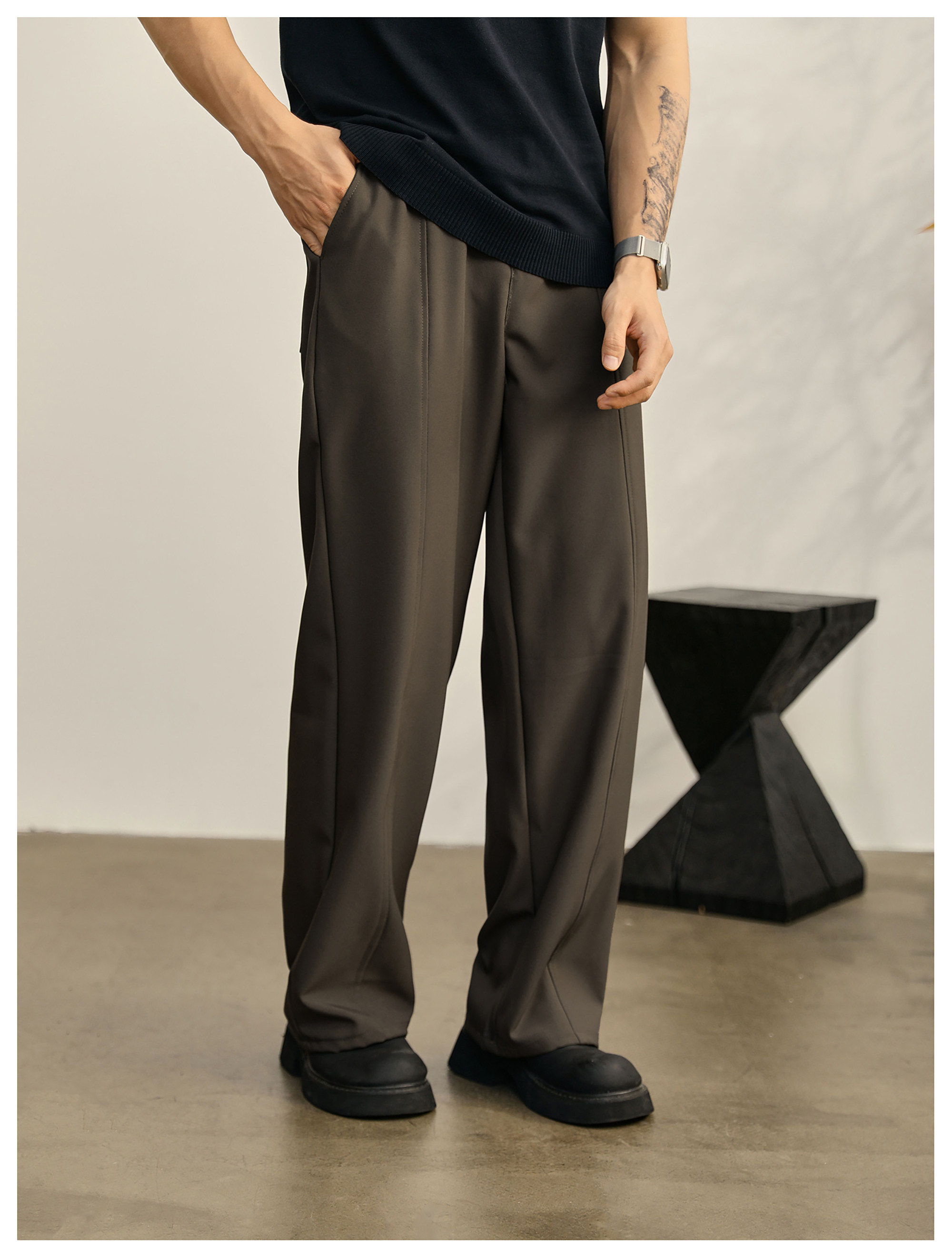 垂墜線條感休閒男士小西褲經典直筒闊腿褲半鬆緊腰免燙長褲