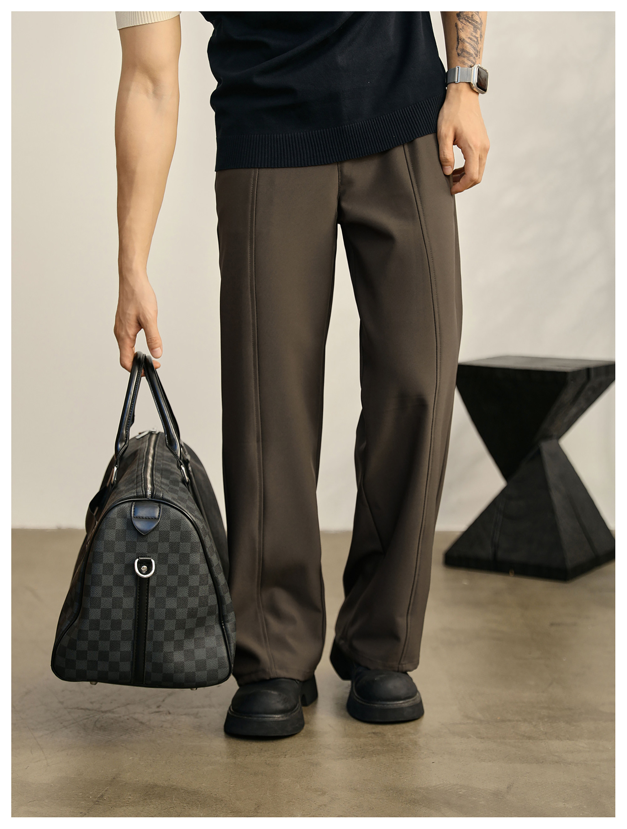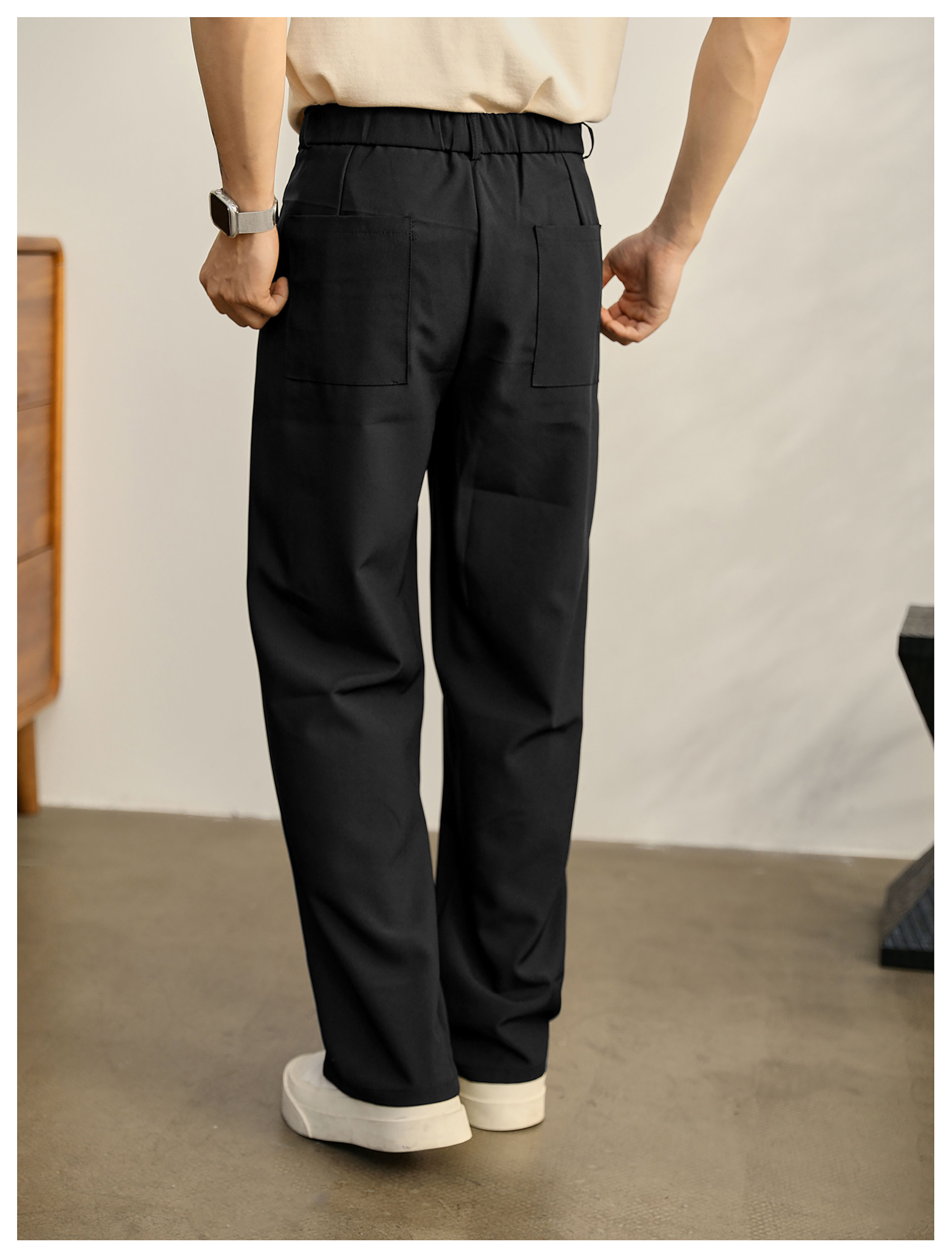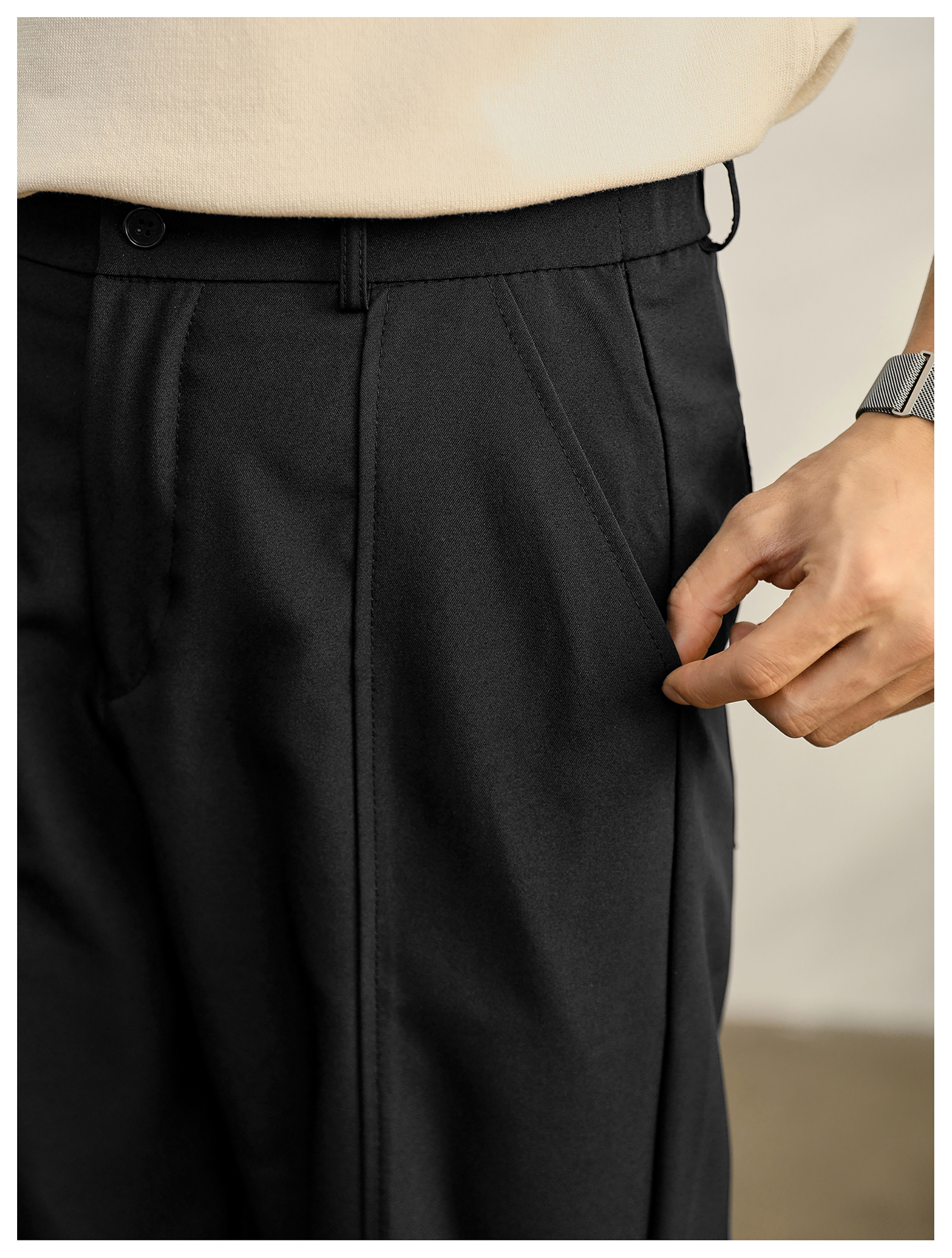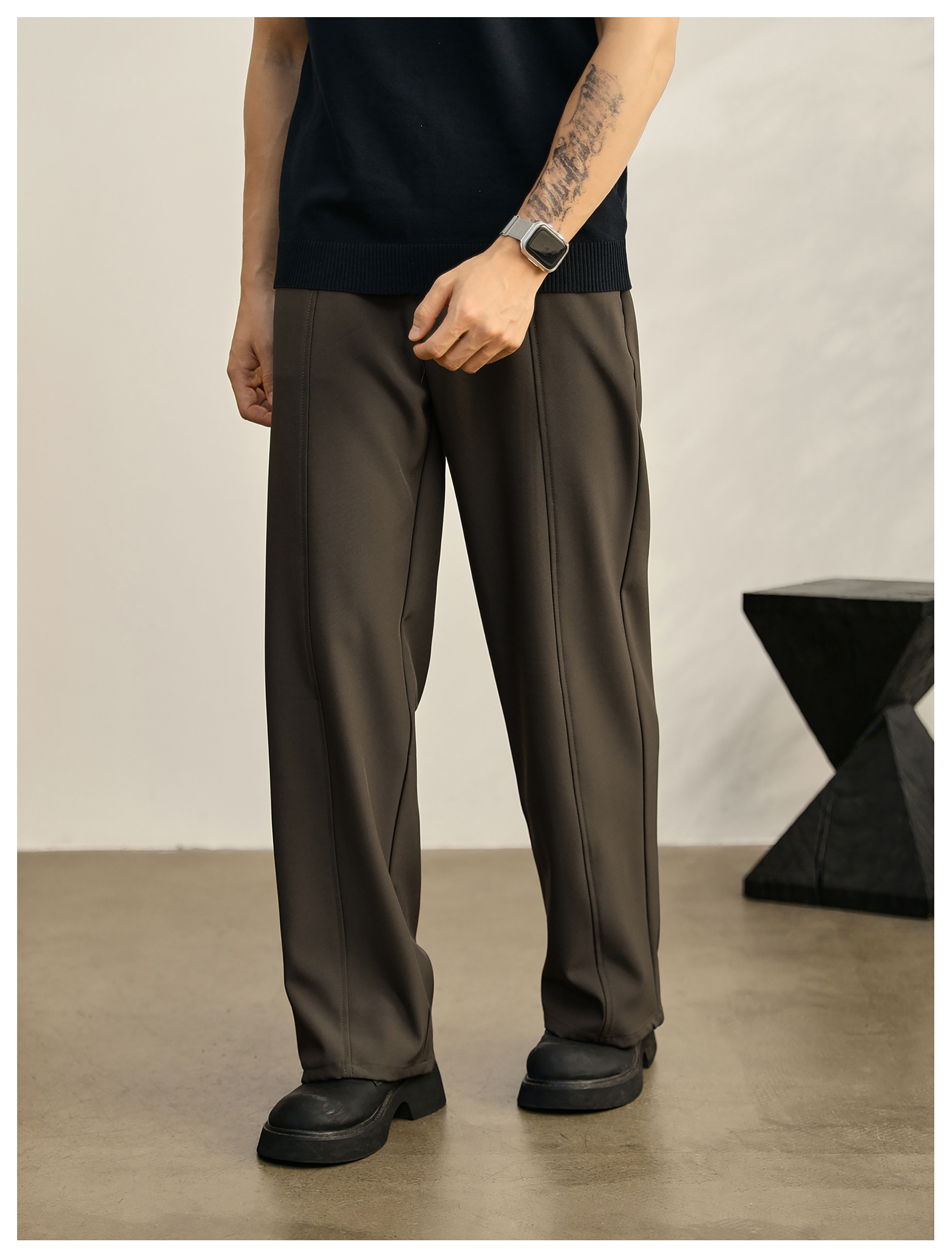 垂墜線條感休閒男士小西褲經典直筒闊腿褲半鬆緊腰免燙長褲