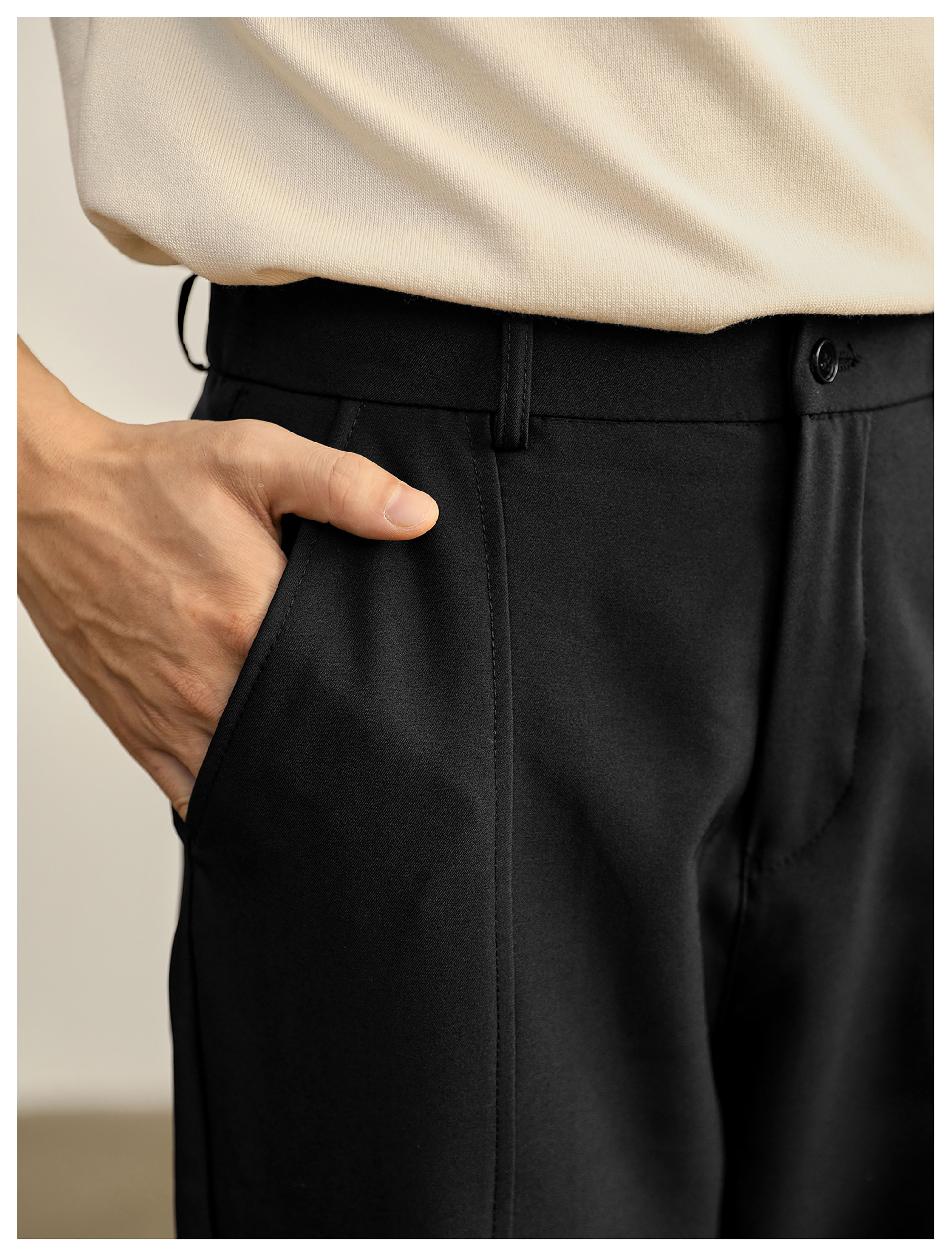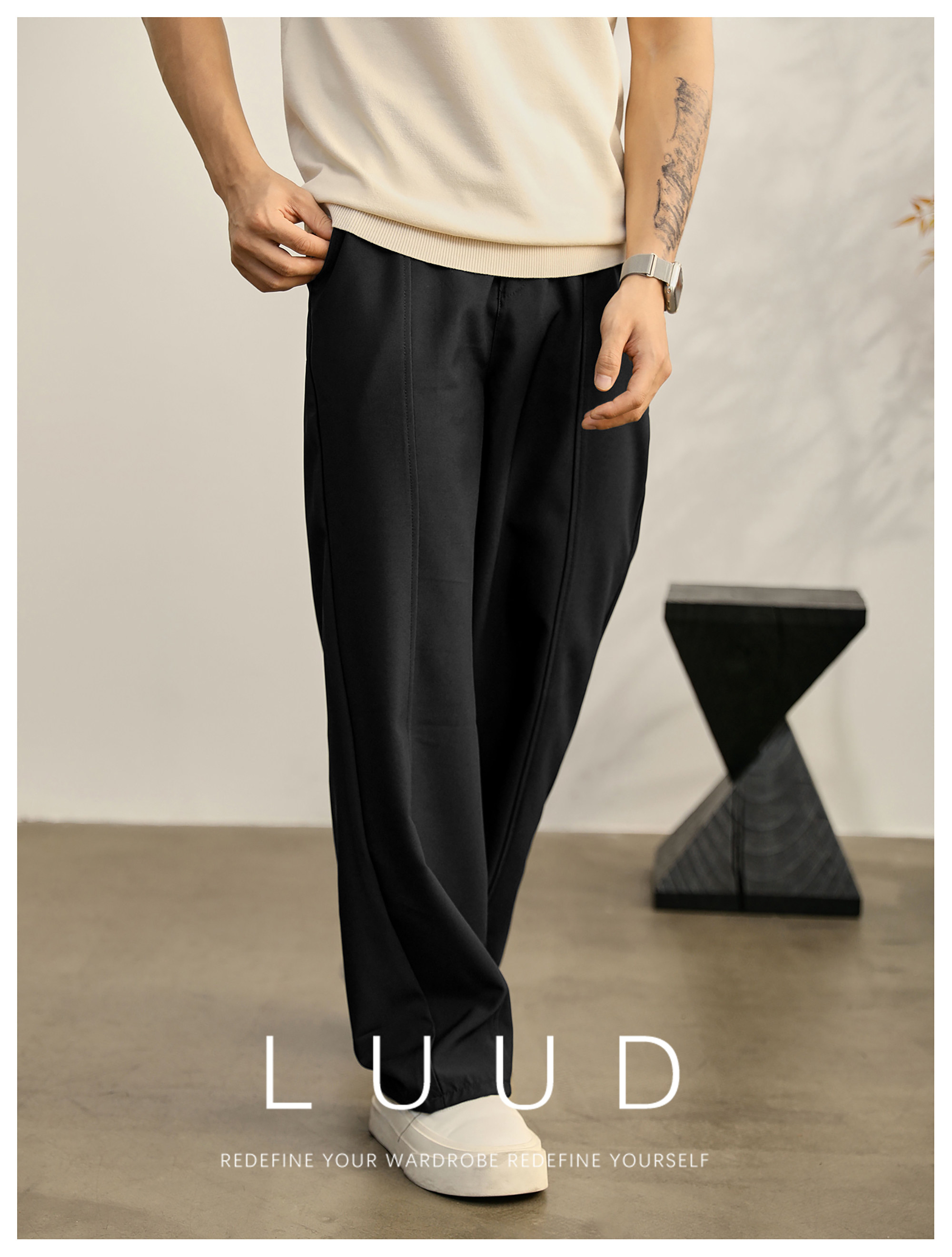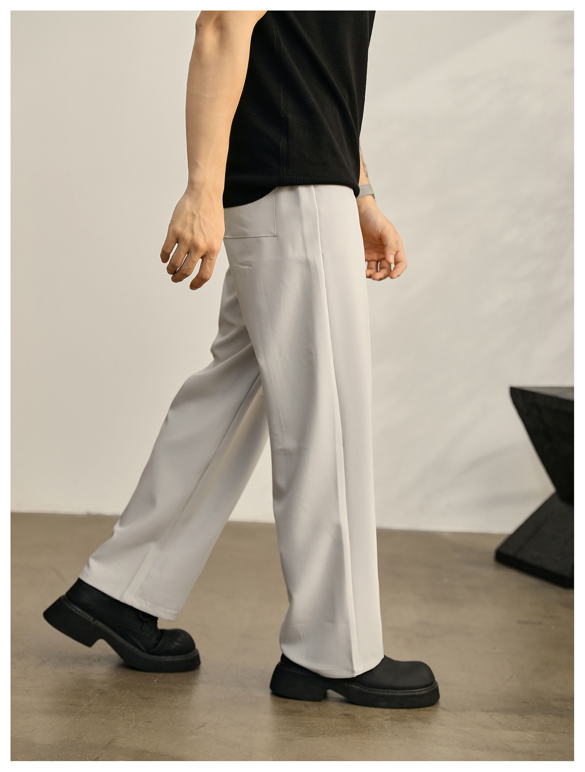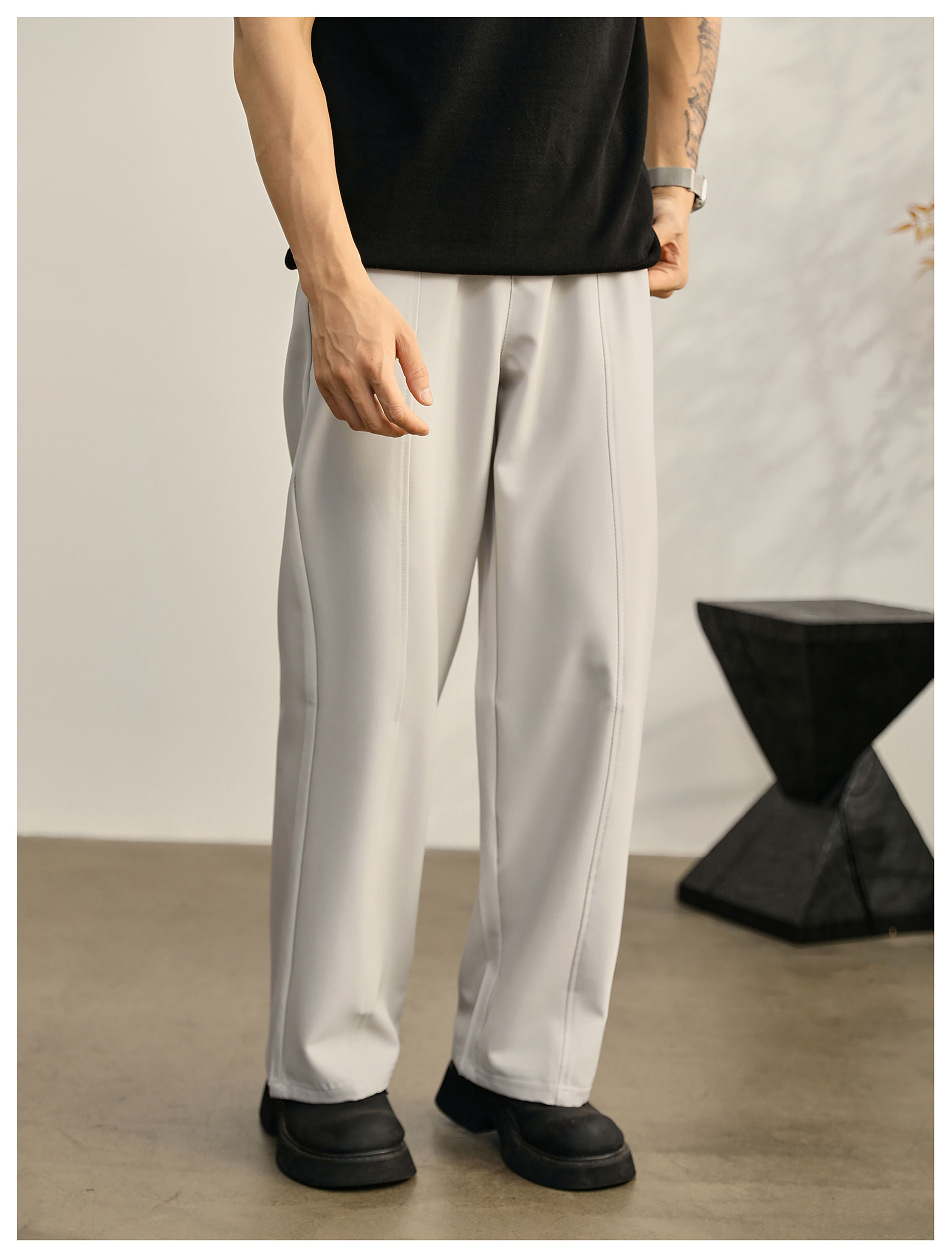 垂墜線條感休閒男士小西褲經典直筒闊腿褲半鬆緊腰免燙長褲