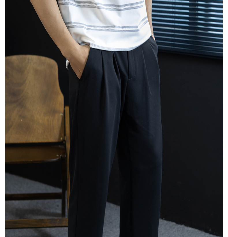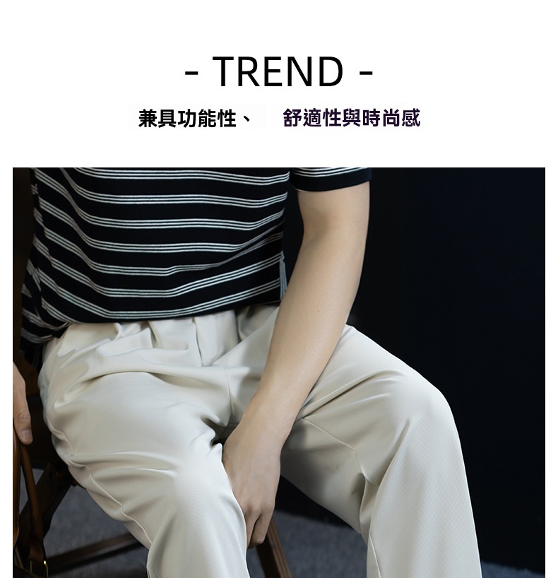 奢感紋理|仿梭織格彈力舒適男士休閒褲純色褶皺九分褲商務西褲