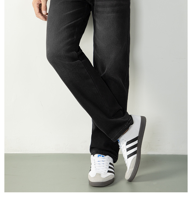 復古休閒風| 高級感石磨水洗通勤牛仔褲男微闊純色百搭直筒長褲