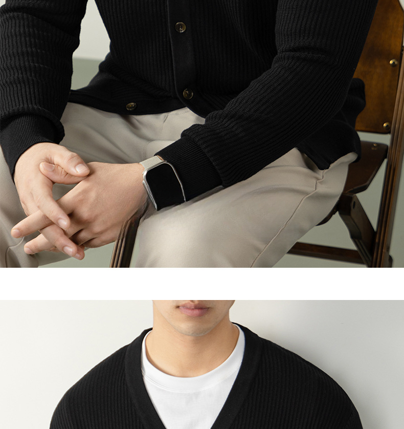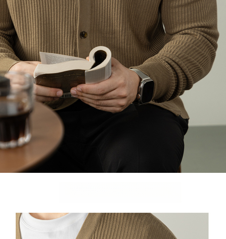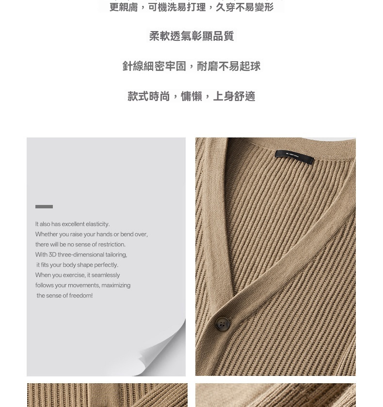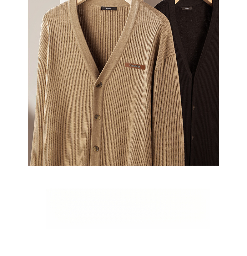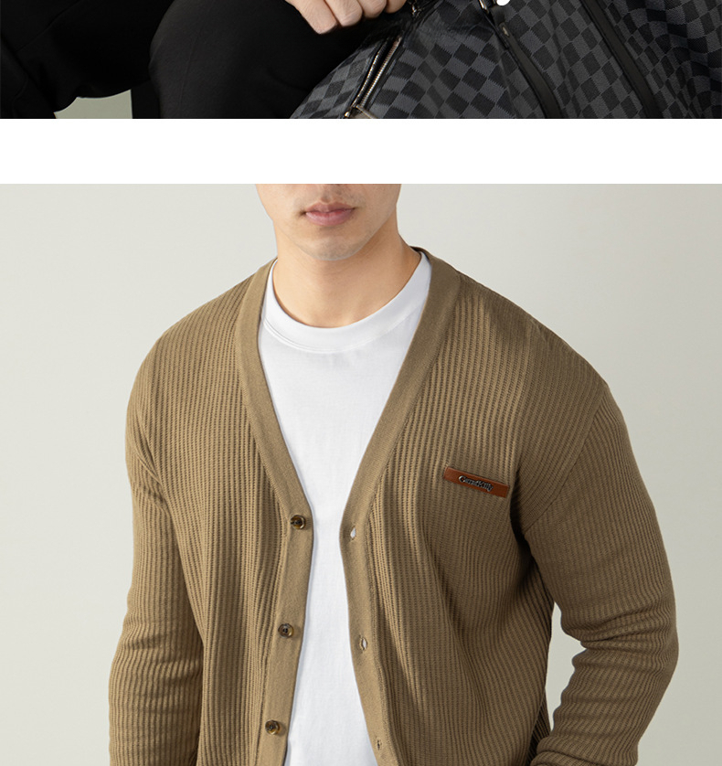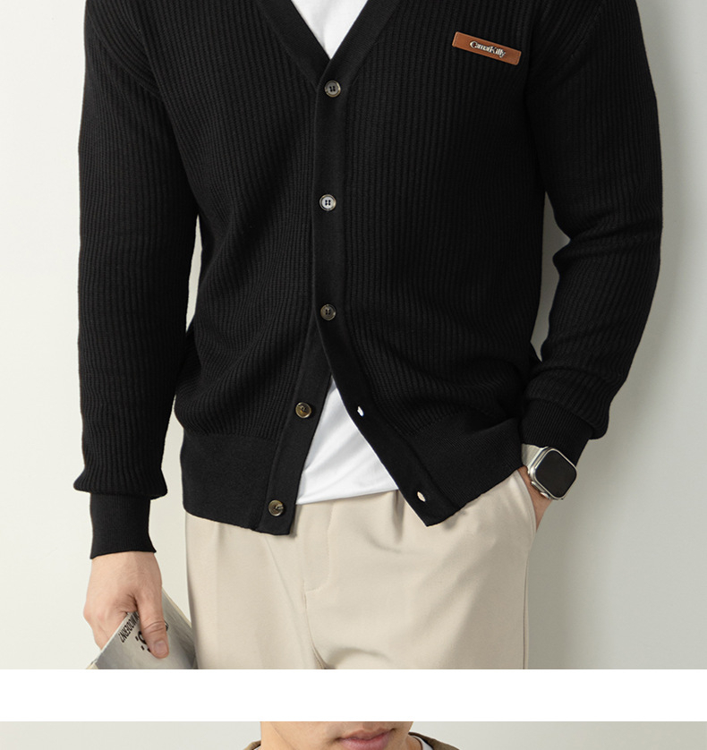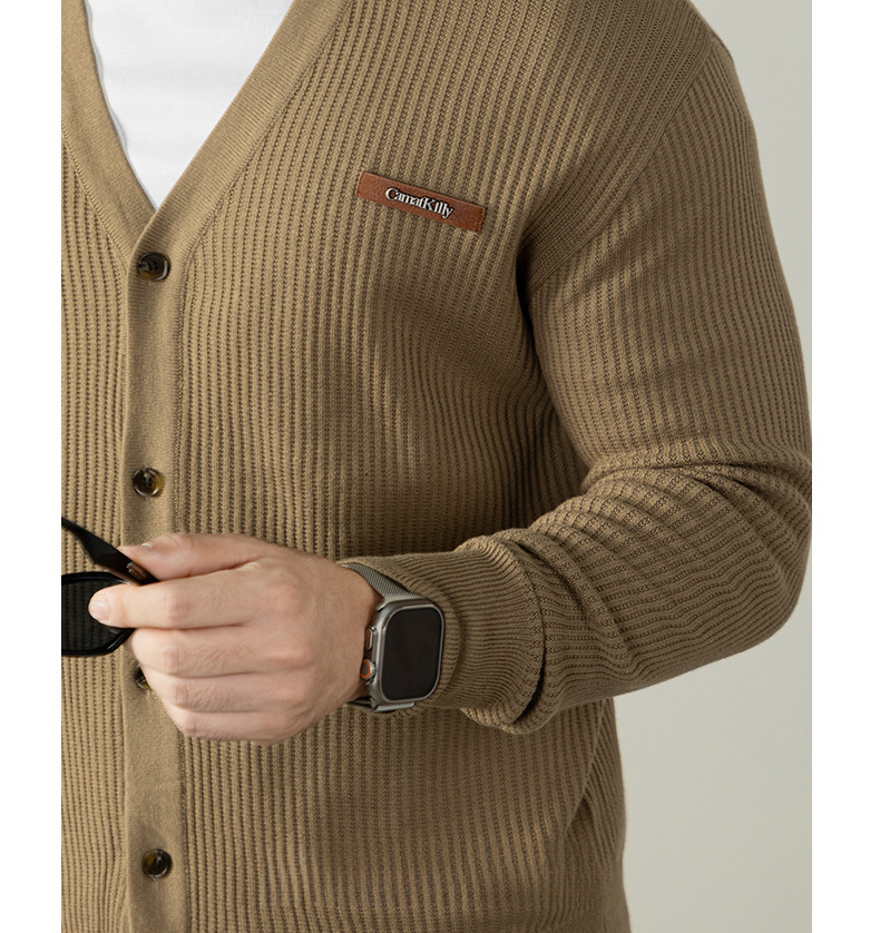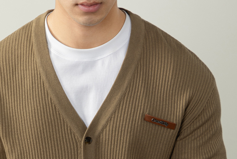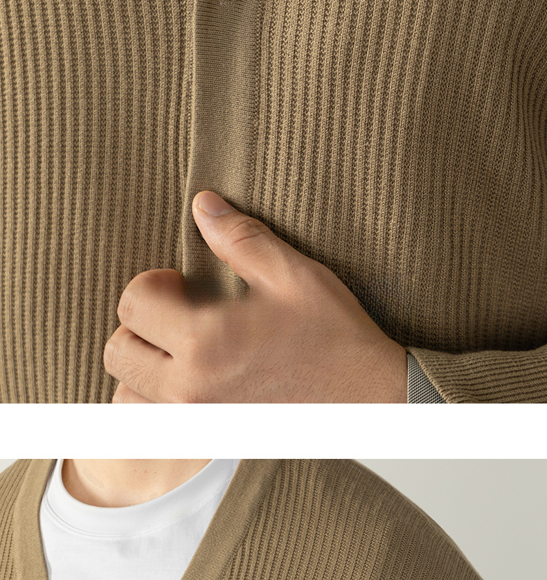 復古植鞣皮標針織衫12針精紡豎紋男士開衫毛衣秋冬通勤高級不撞款