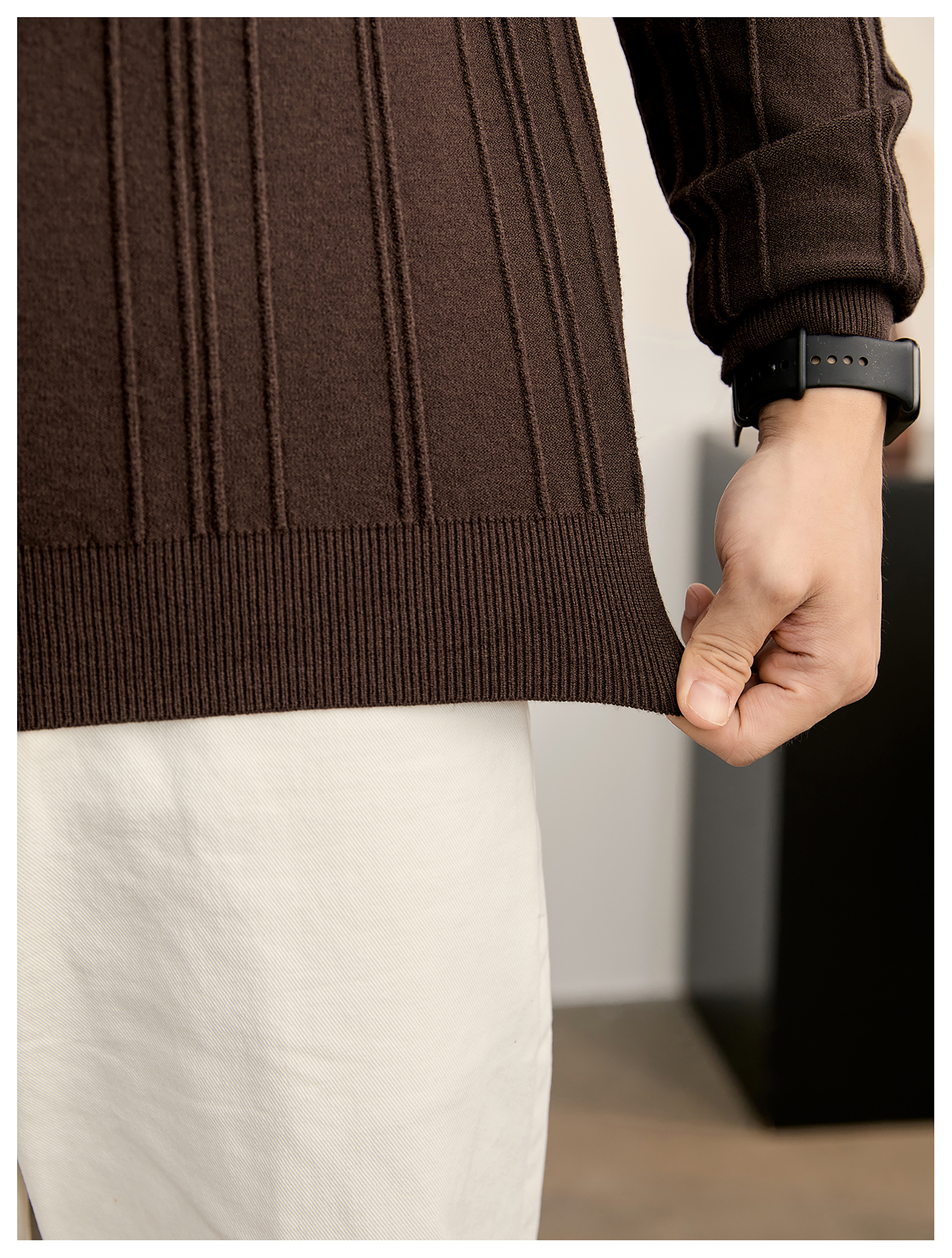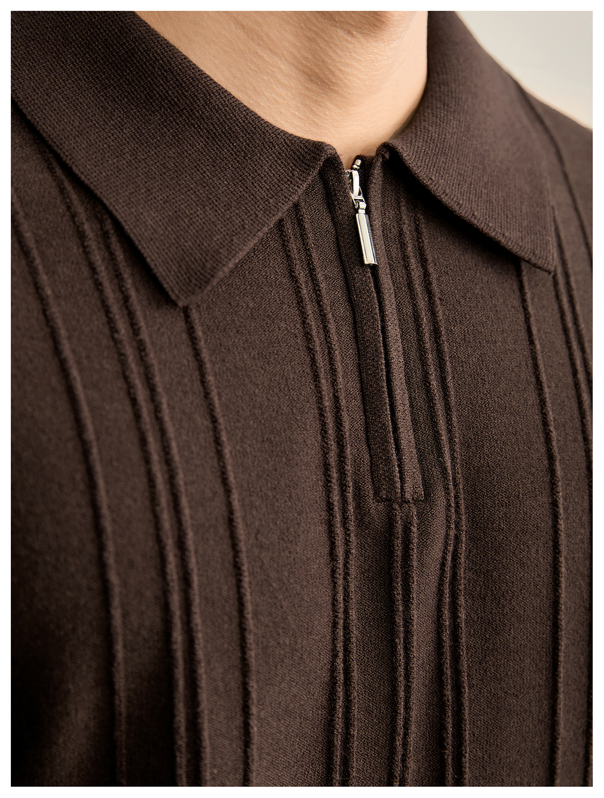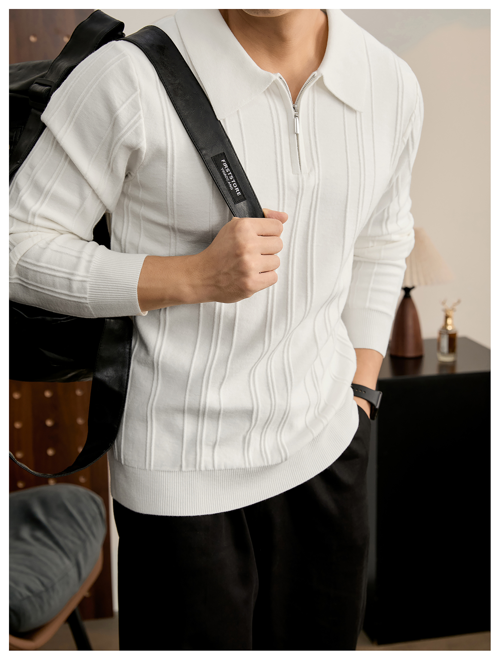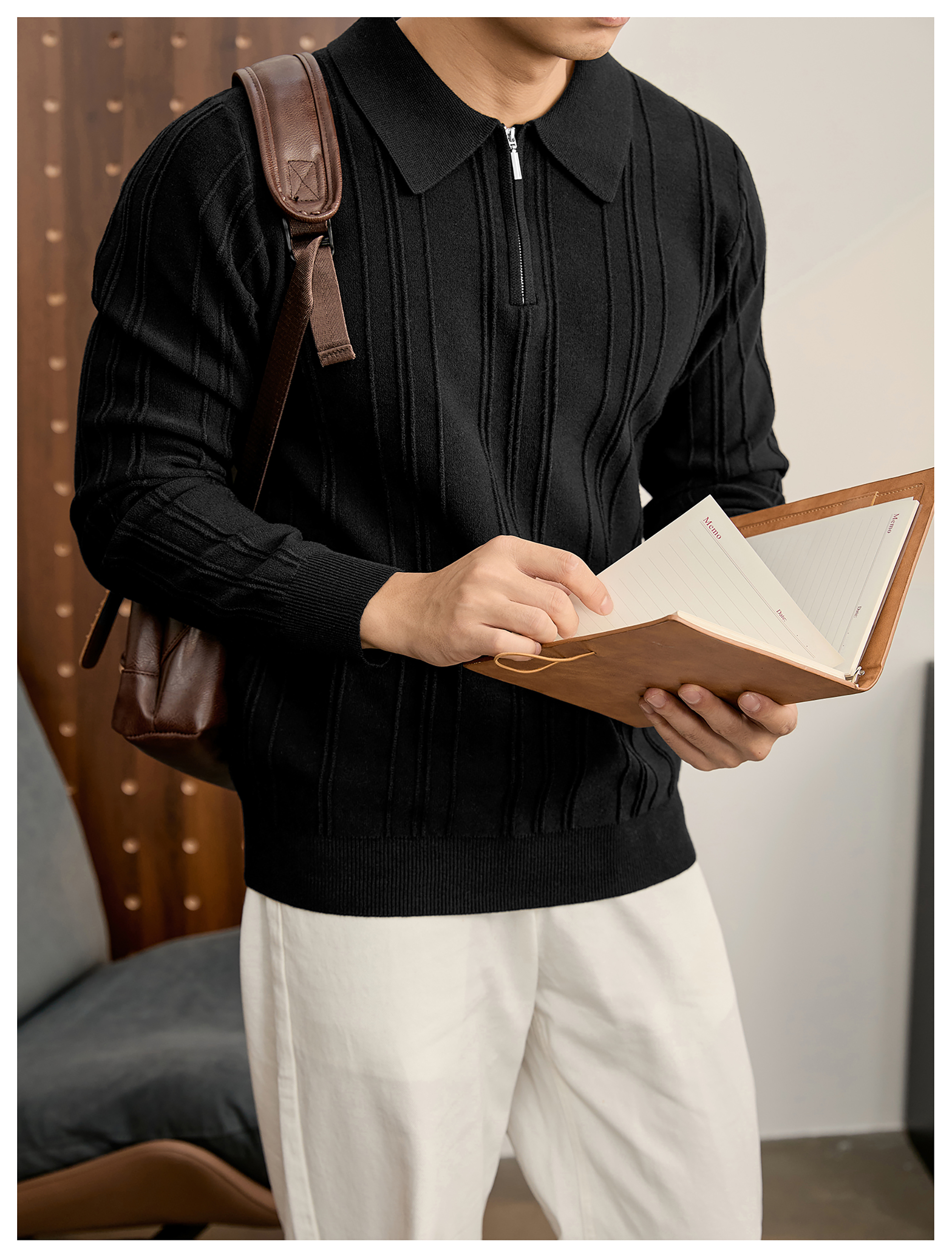 復古老錢半拉鍊翻領針織衫男秋冬豎紋肌理提花抗起球POLO衫