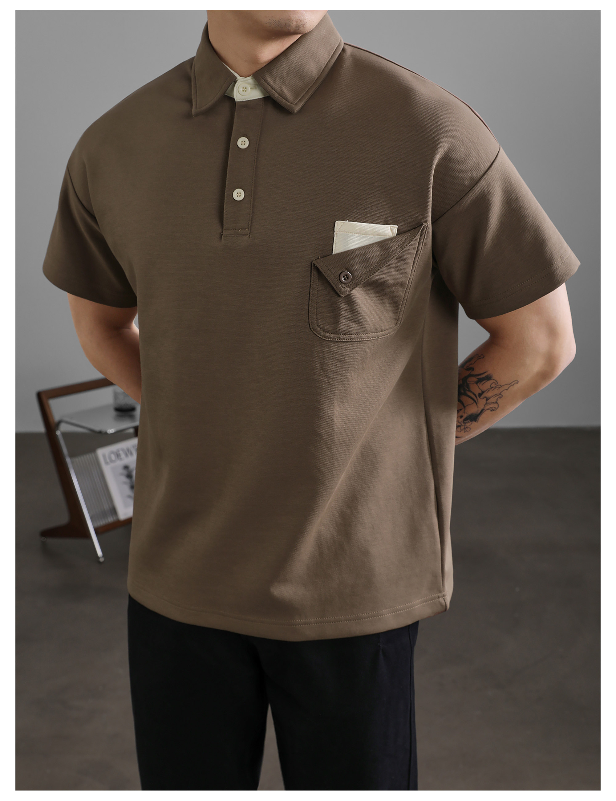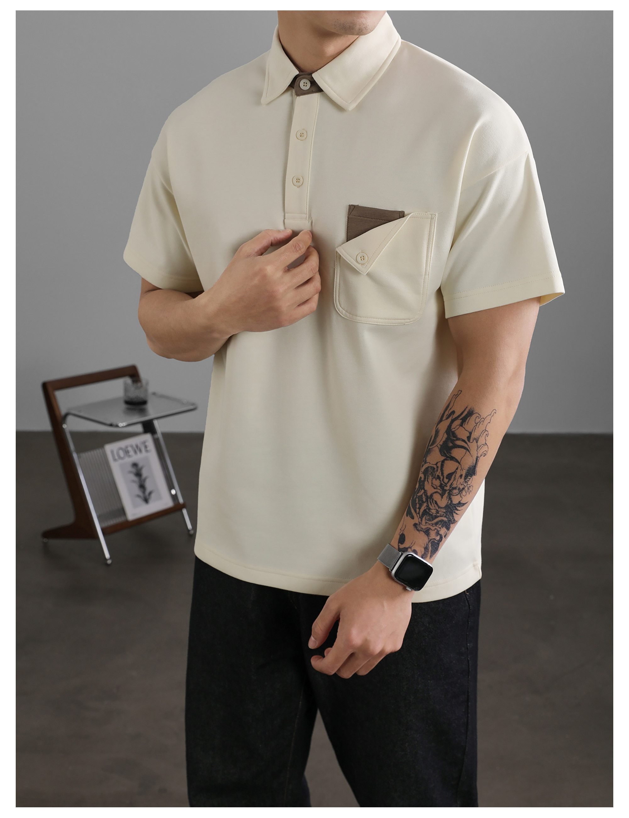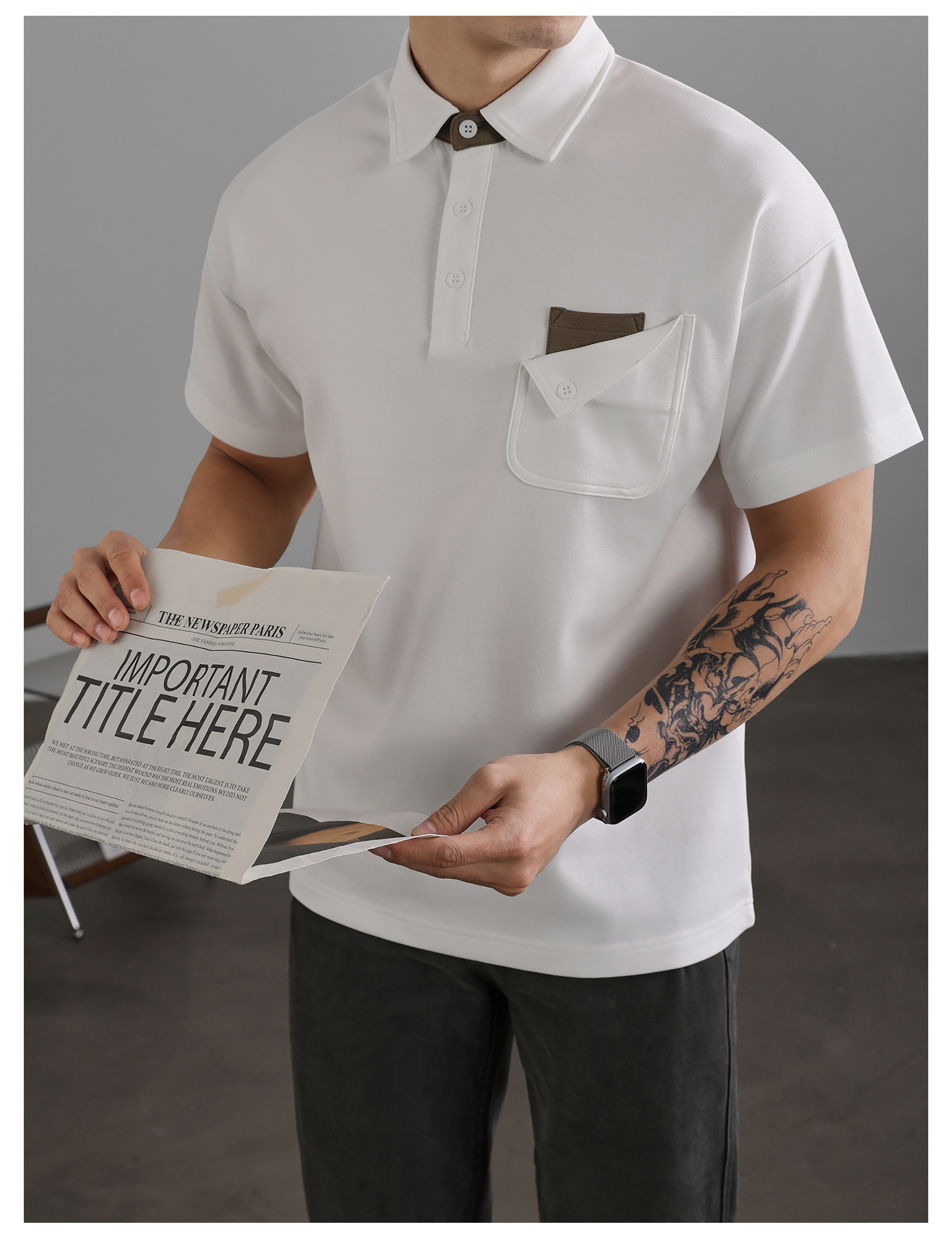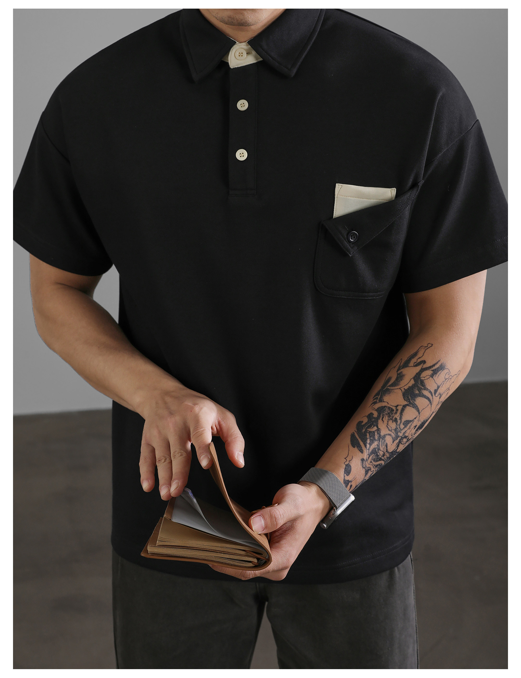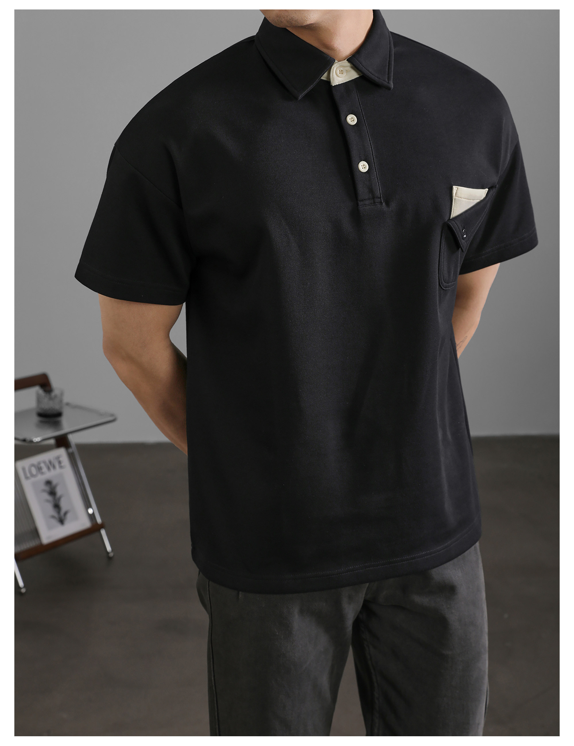 復古風休閒短袖保羅POLO衫男士復古水洗T恤夏日通勤有領上衣