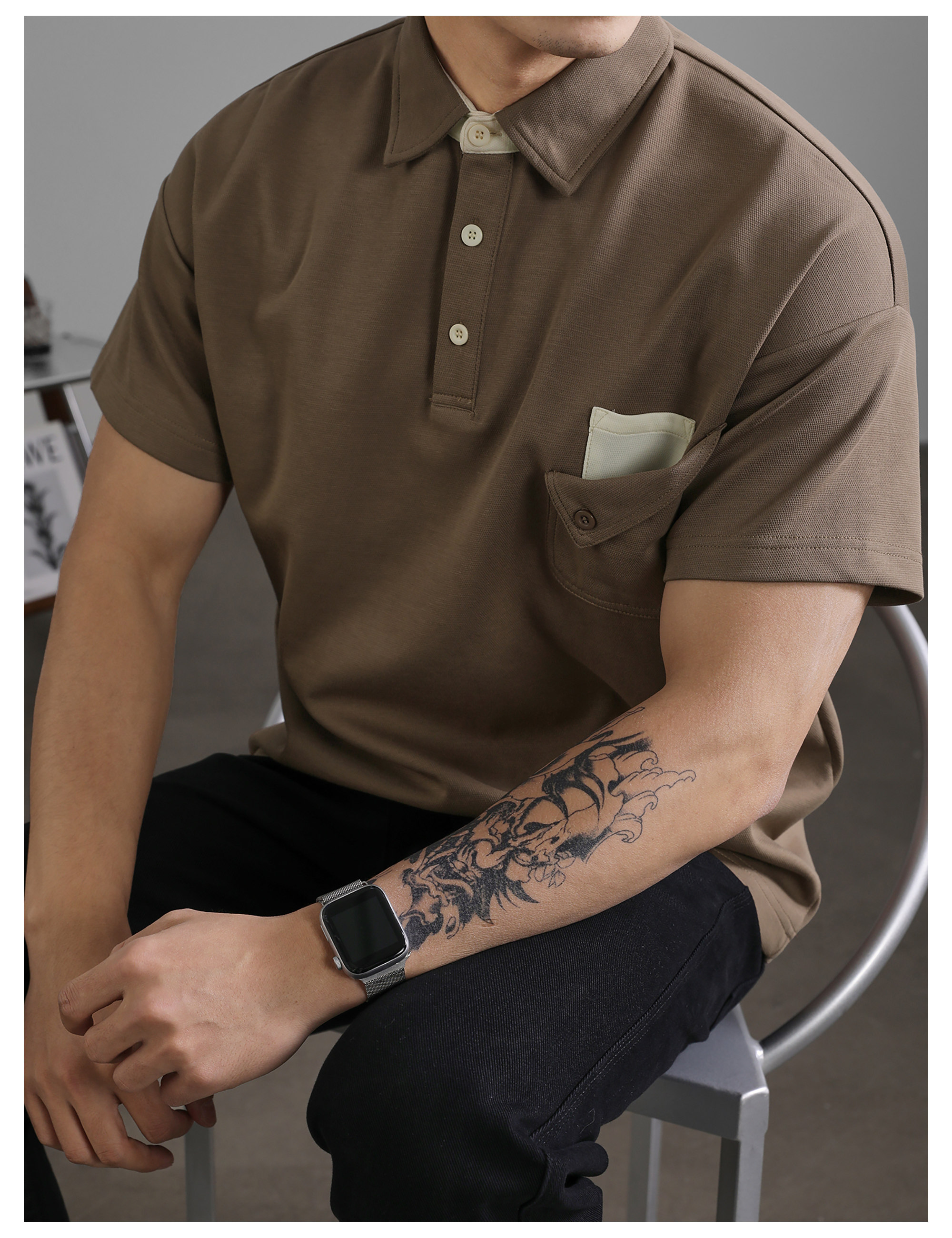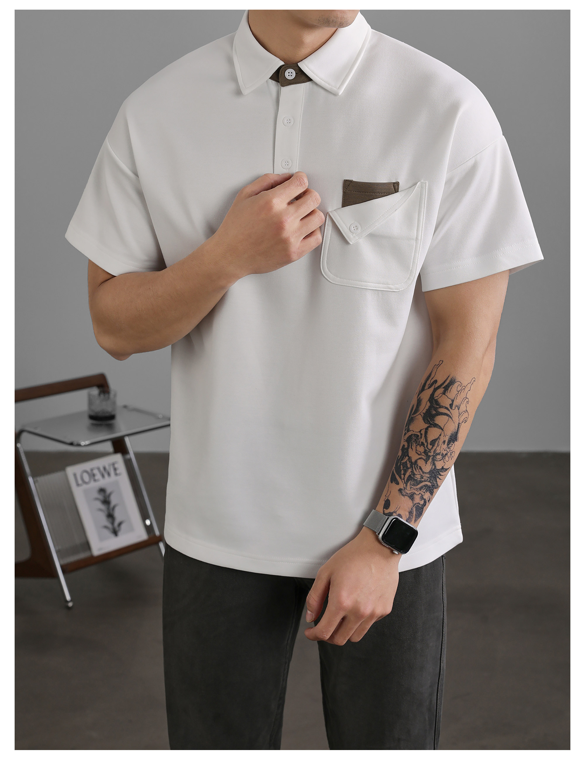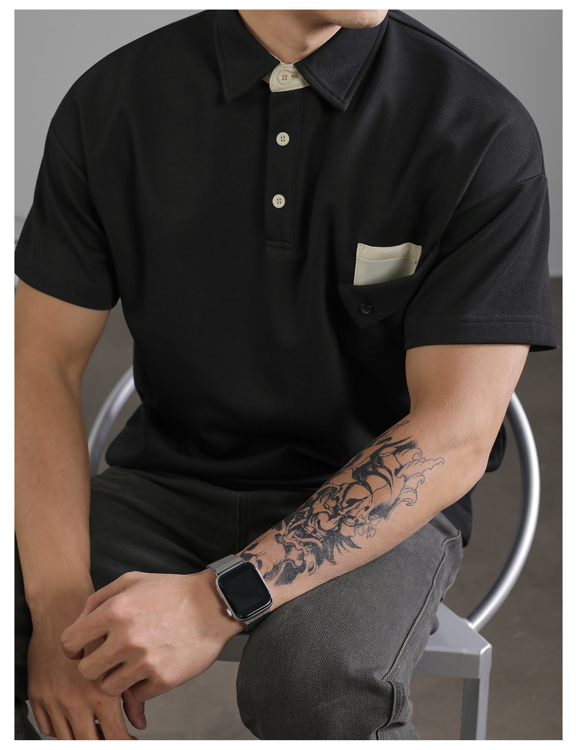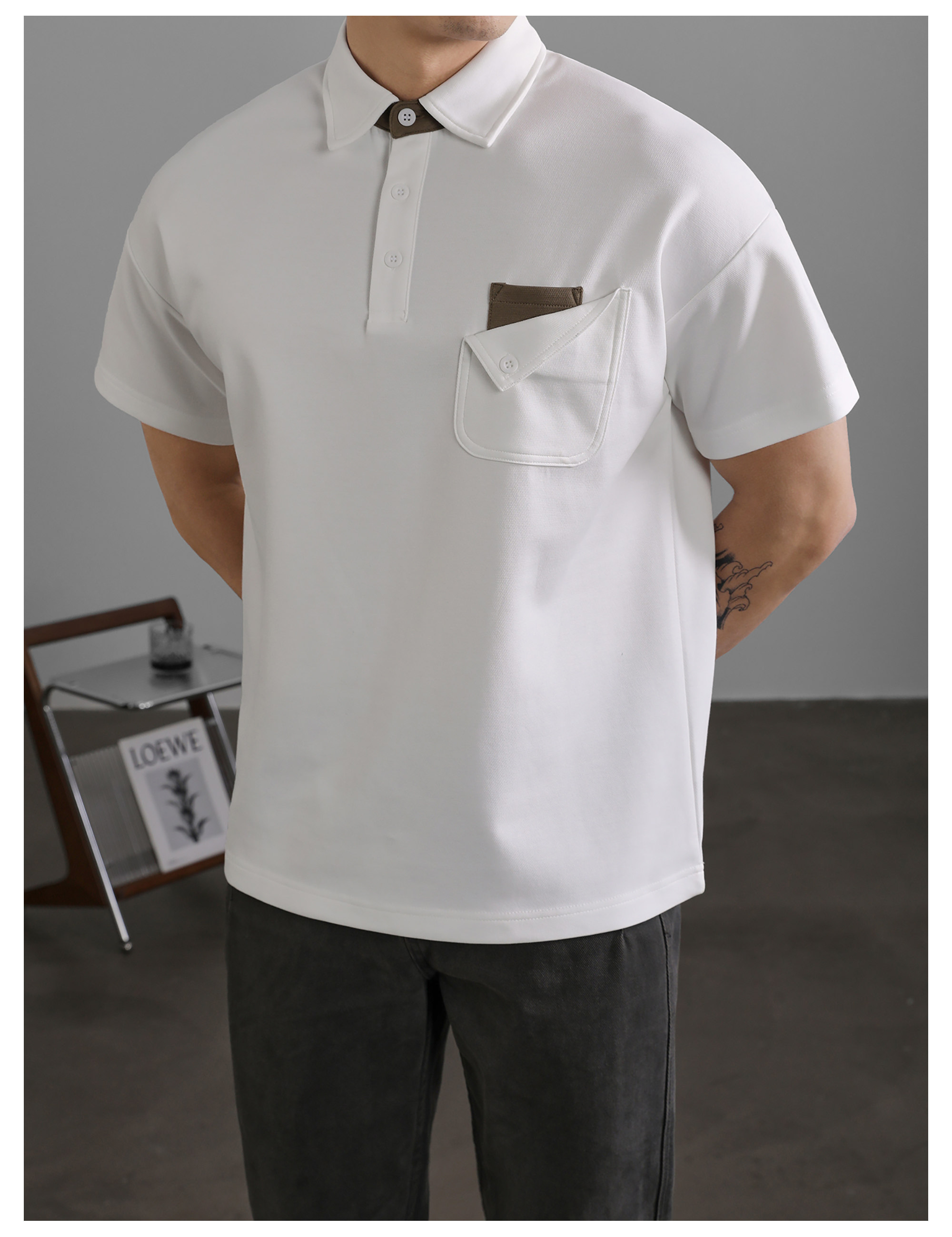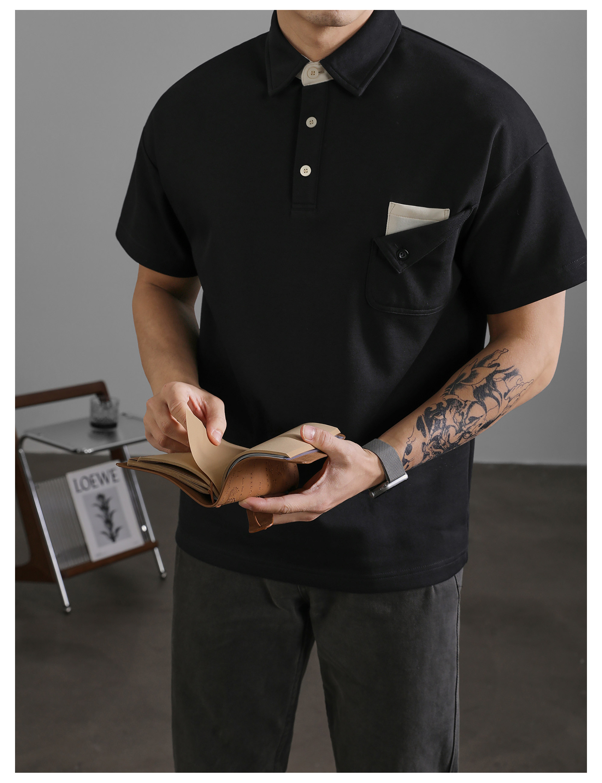 復古風休閒短袖保羅POLO衫男士復古水洗T恤夏日通勤有領上衣