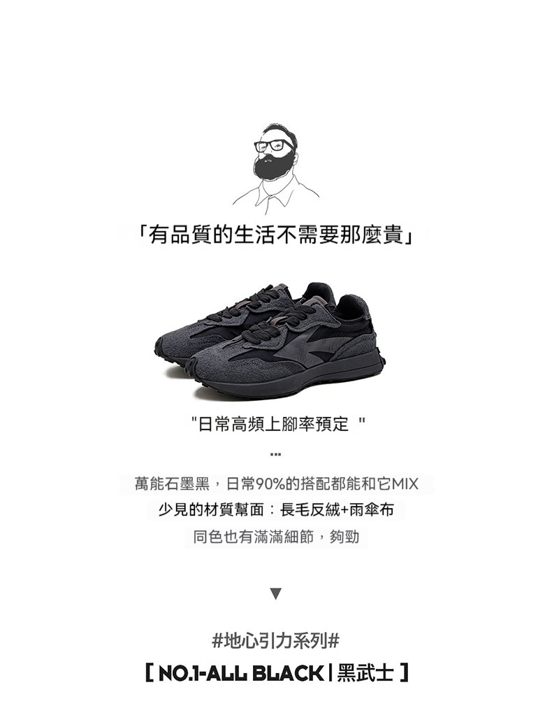 復古黑武士老爹鞋純黑色厚底减震運動休閒百搭鞋子男春季
