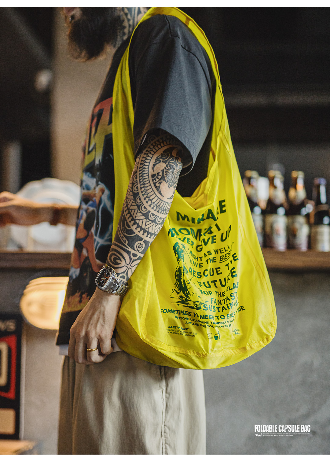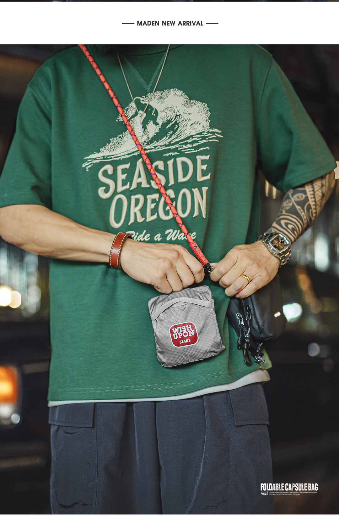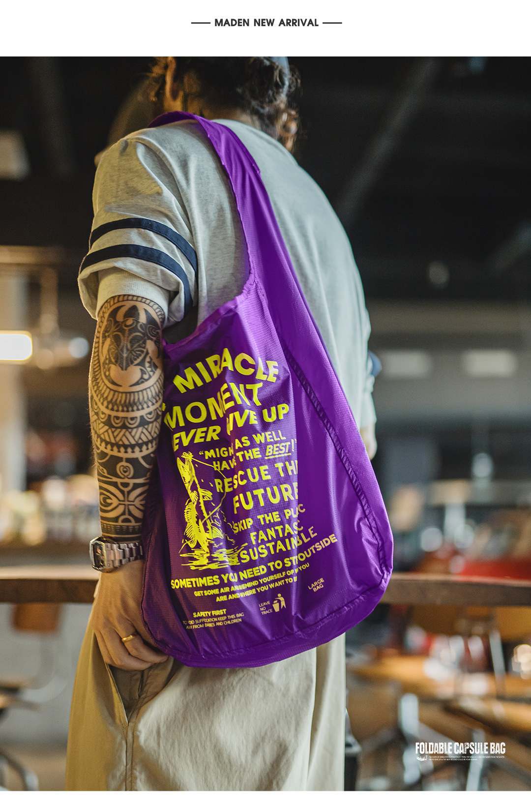 戶外超輕薄可折疊寬肩帶旅行挎包尼龍山系大容量手提包男