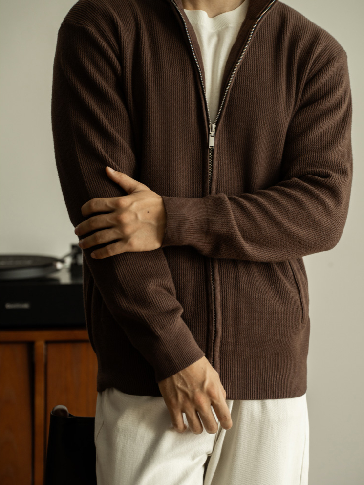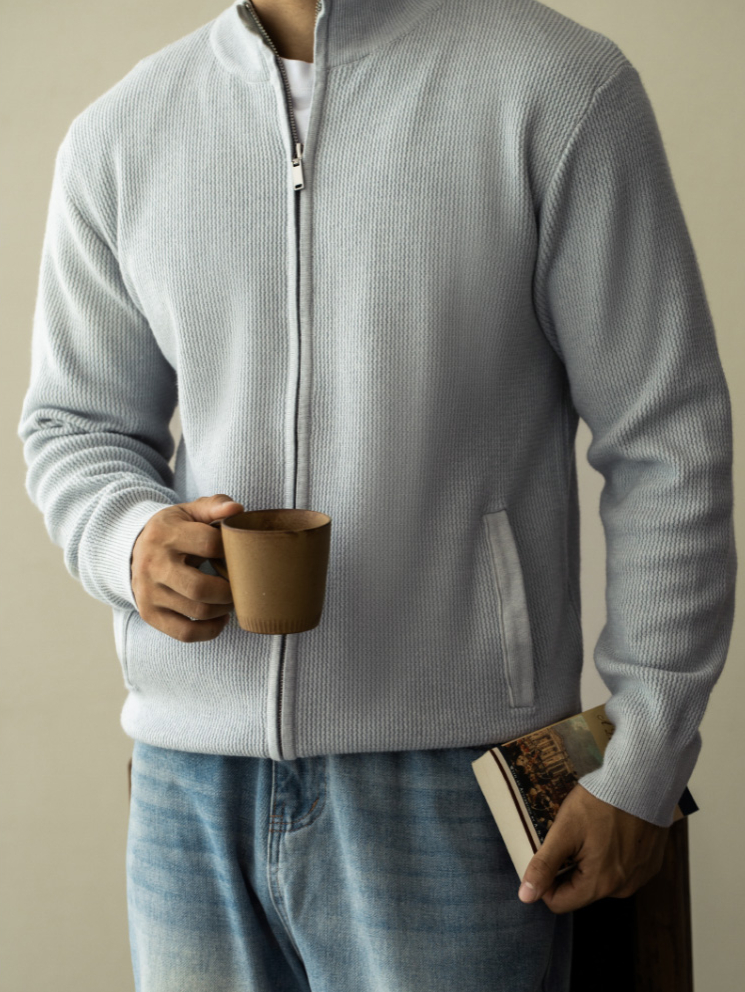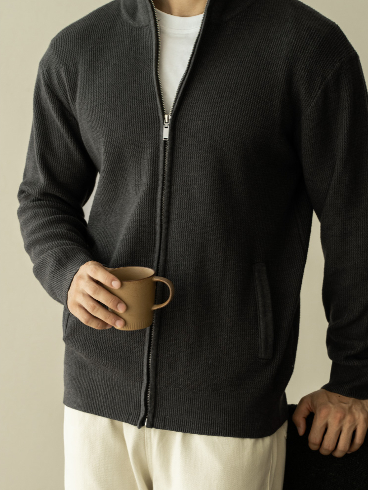 抗起球肌理男針織外套2025春外穿高領拉鍊休閒立領外套