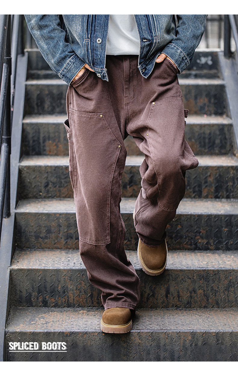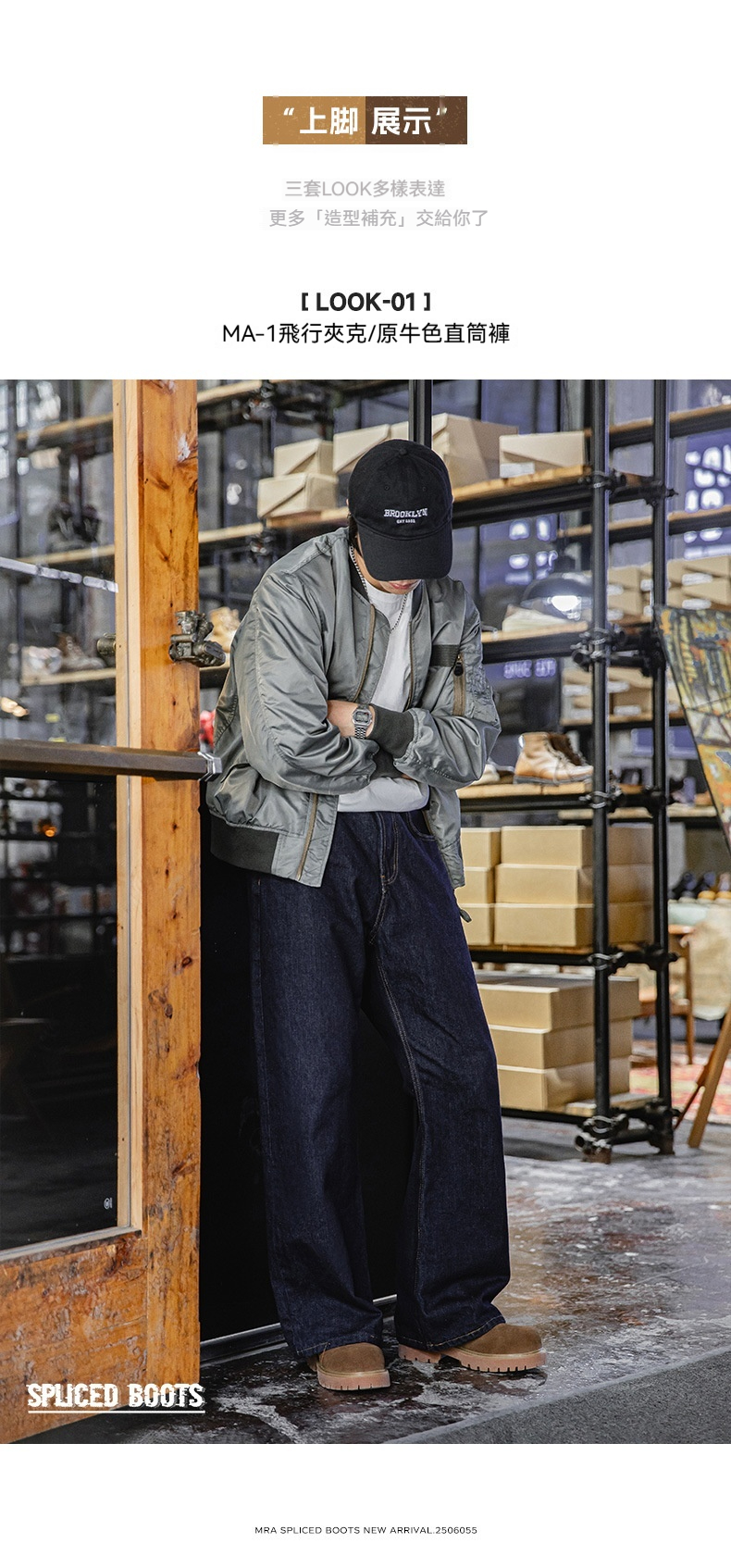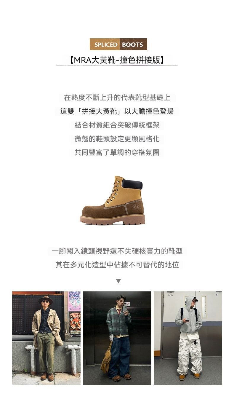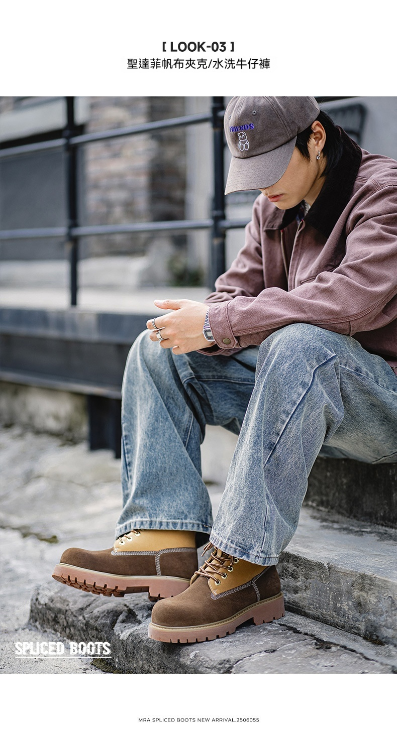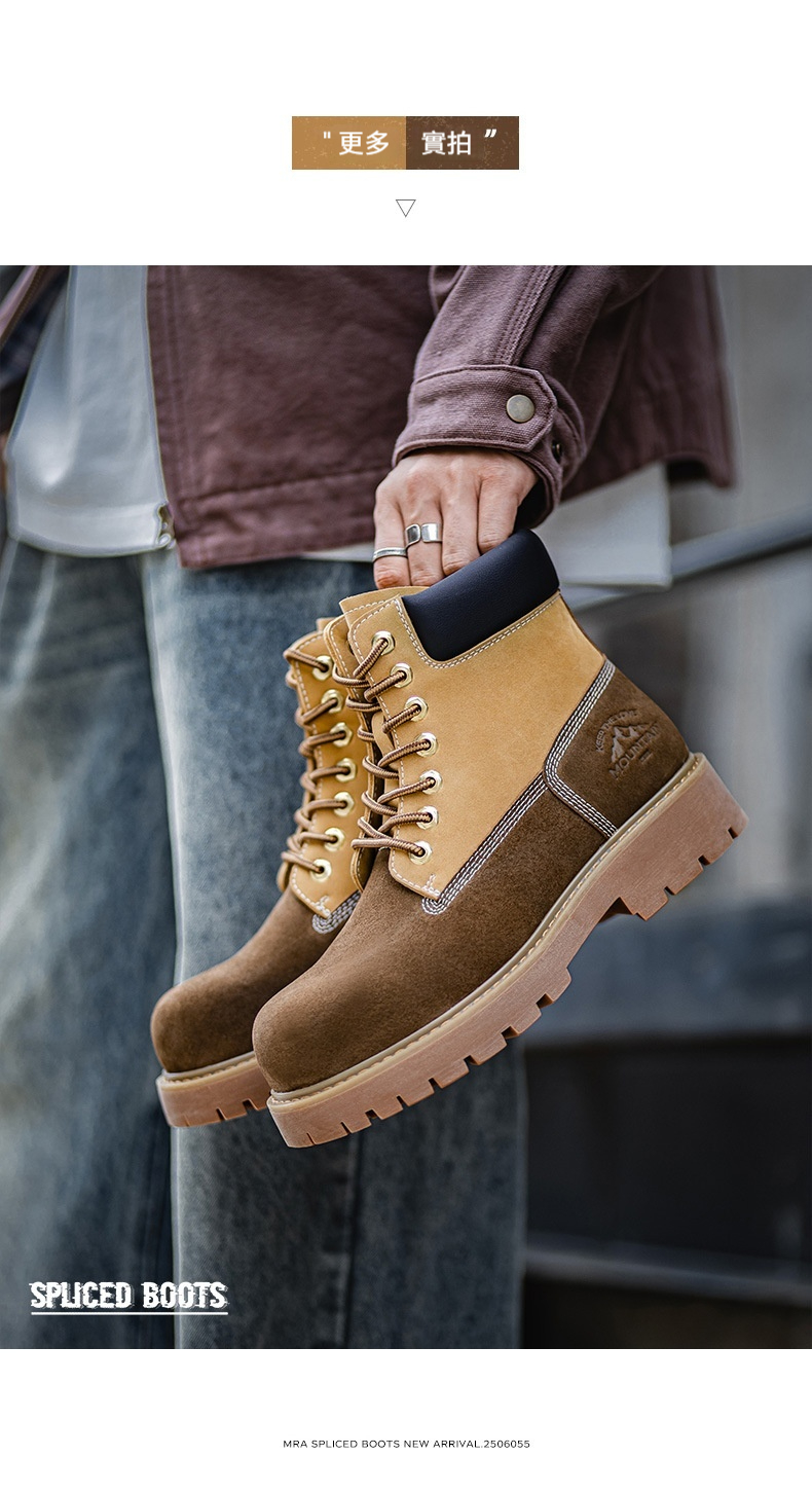 拼接版大黃靴男款2025冬季新款中幫馬丁靴美式復古戶外工裝靴