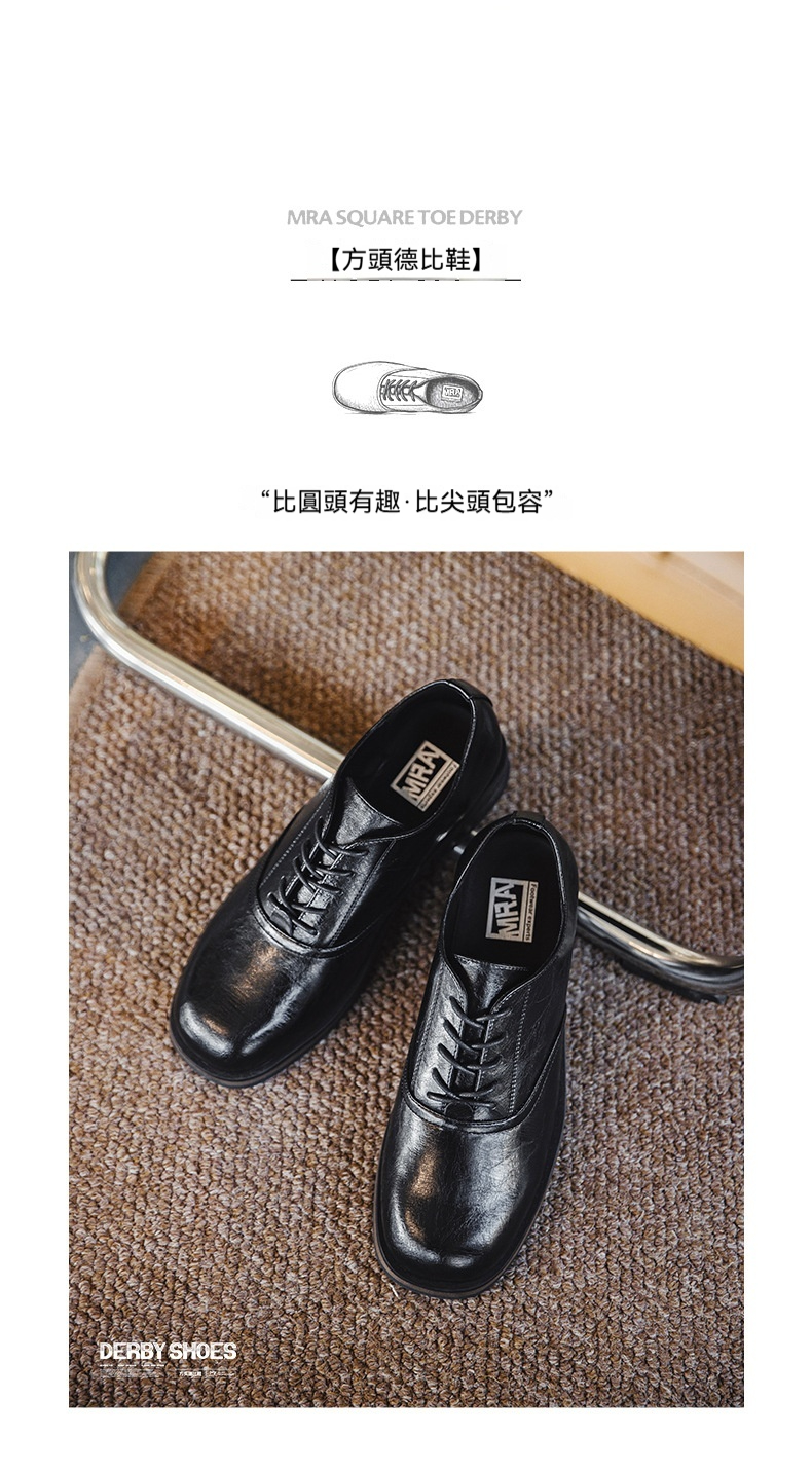 方頭德比鞋男士皮鞋秋款正裝商務厚底增高結婚鞋新郎牛津鞋子