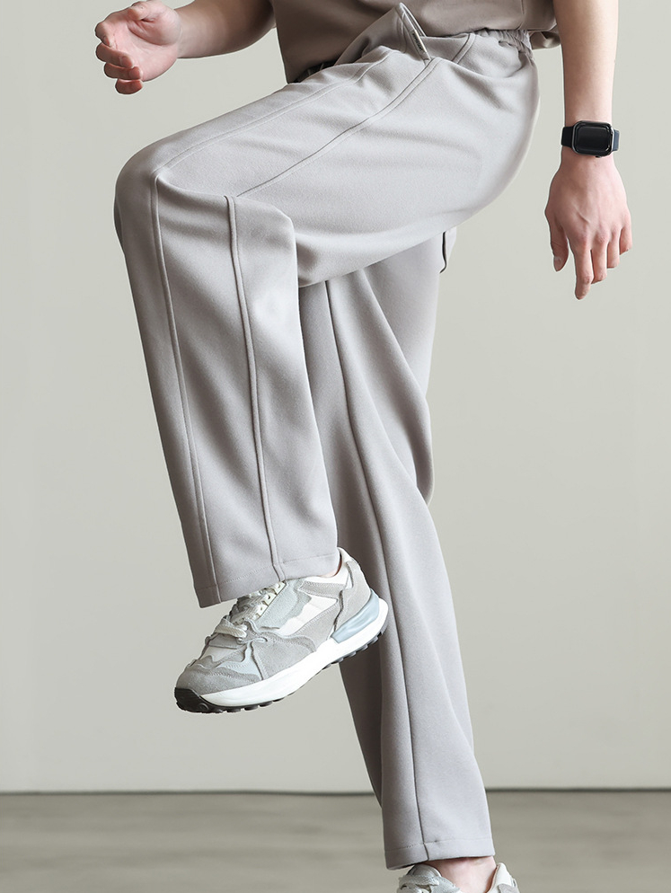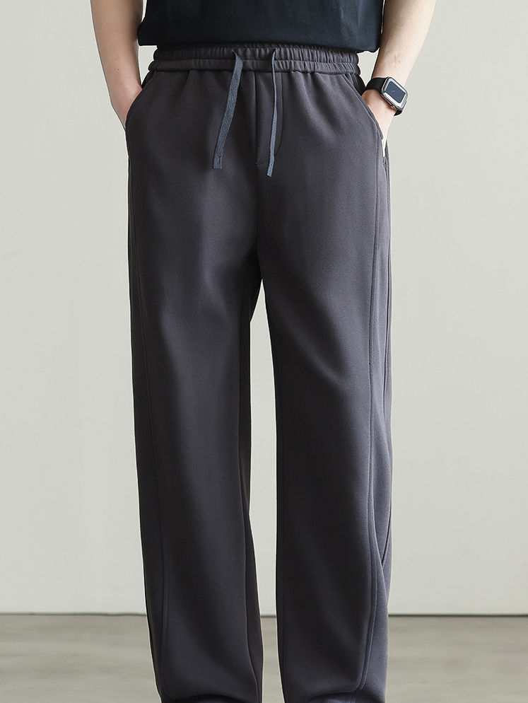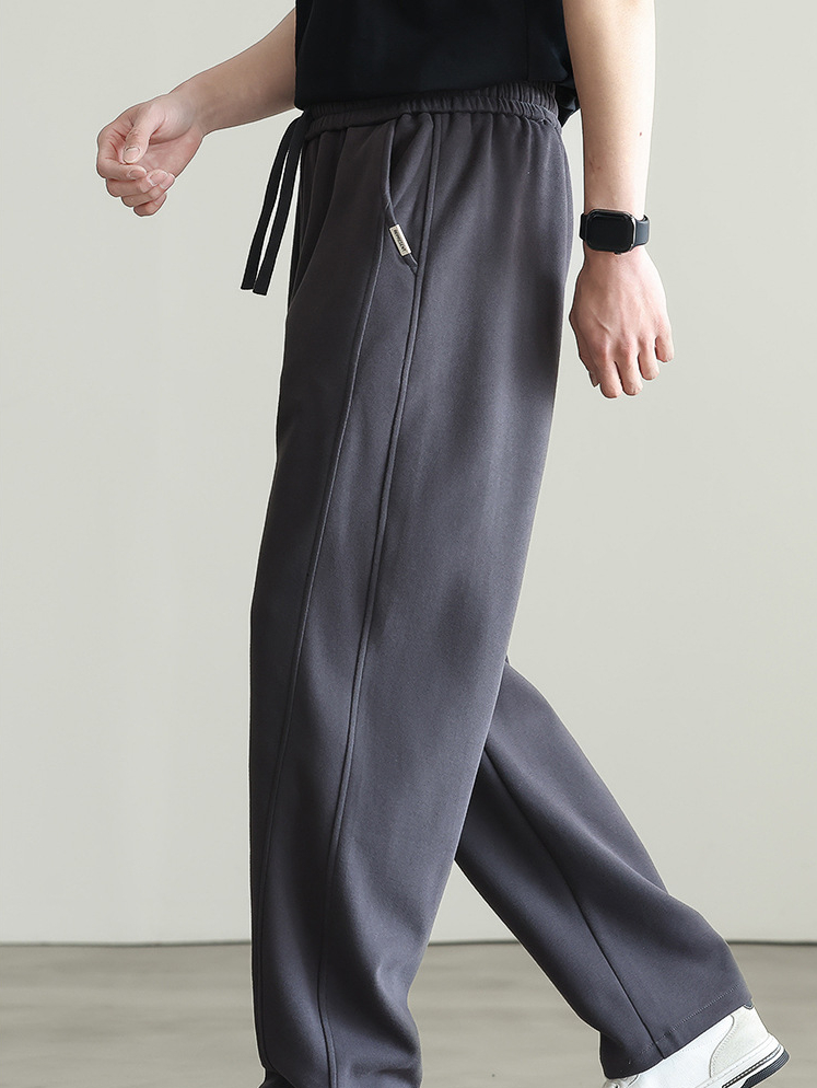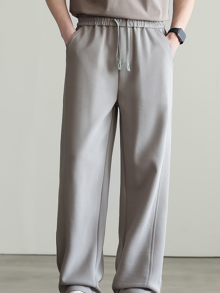 日系壓褶抽繩純色運動休閒褲男士2025夏季通勤寬鬆直筒新款衛褲男