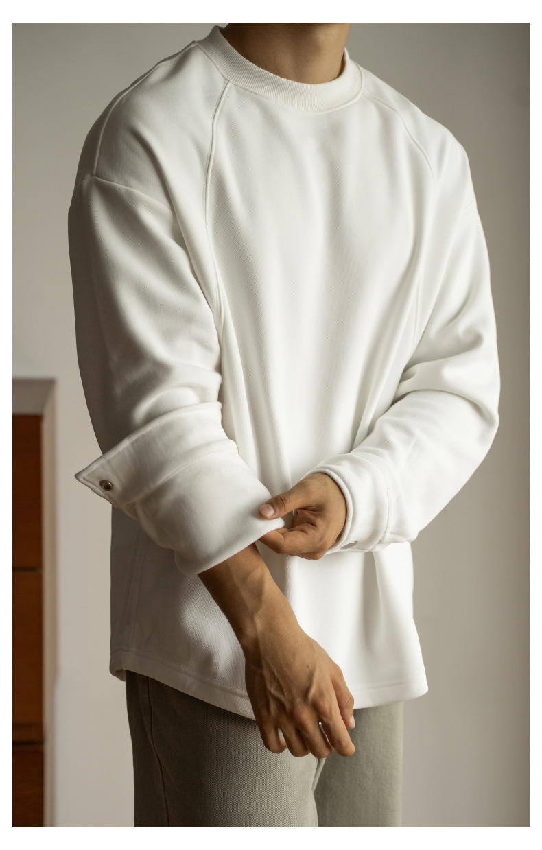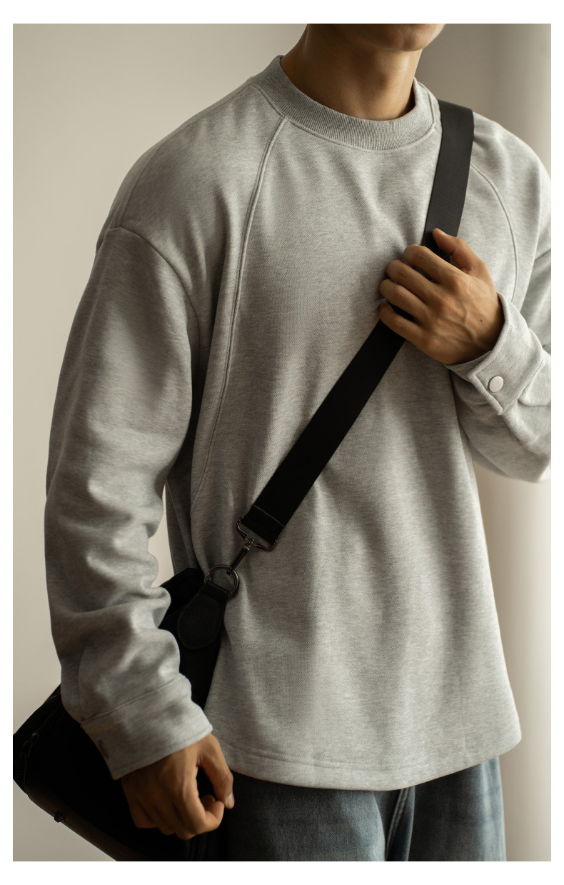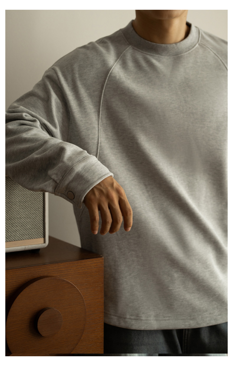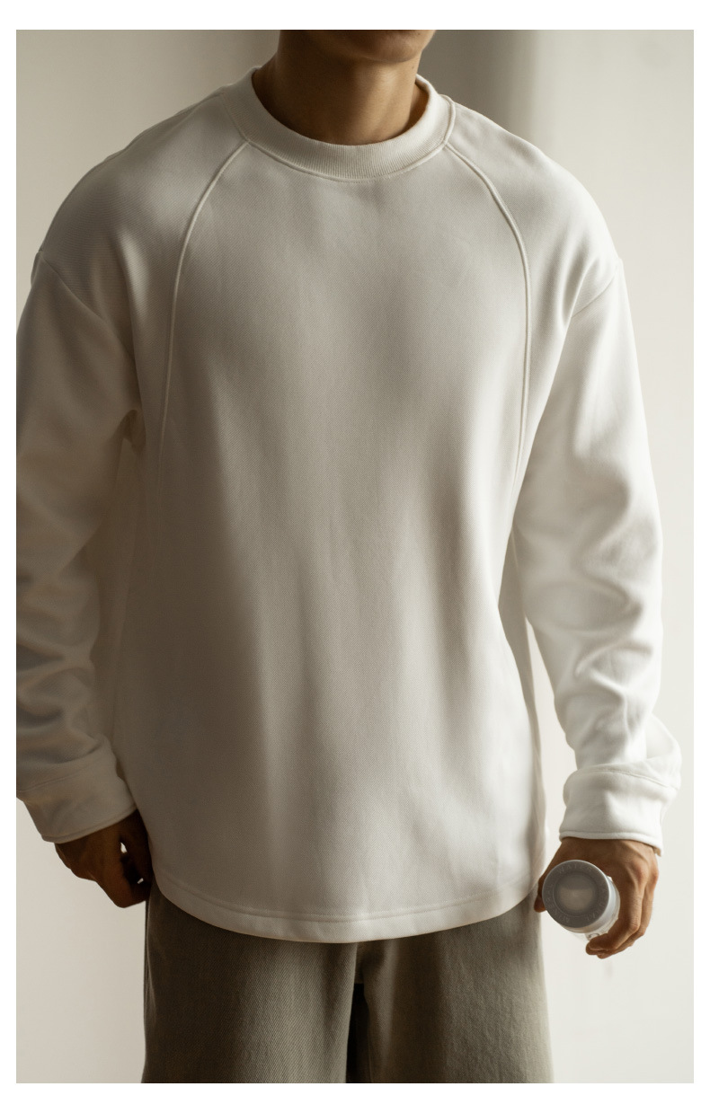 日系重磅加絨加厚插肩襯衫袖衛衣男青年新款休閒長袖打底T恤