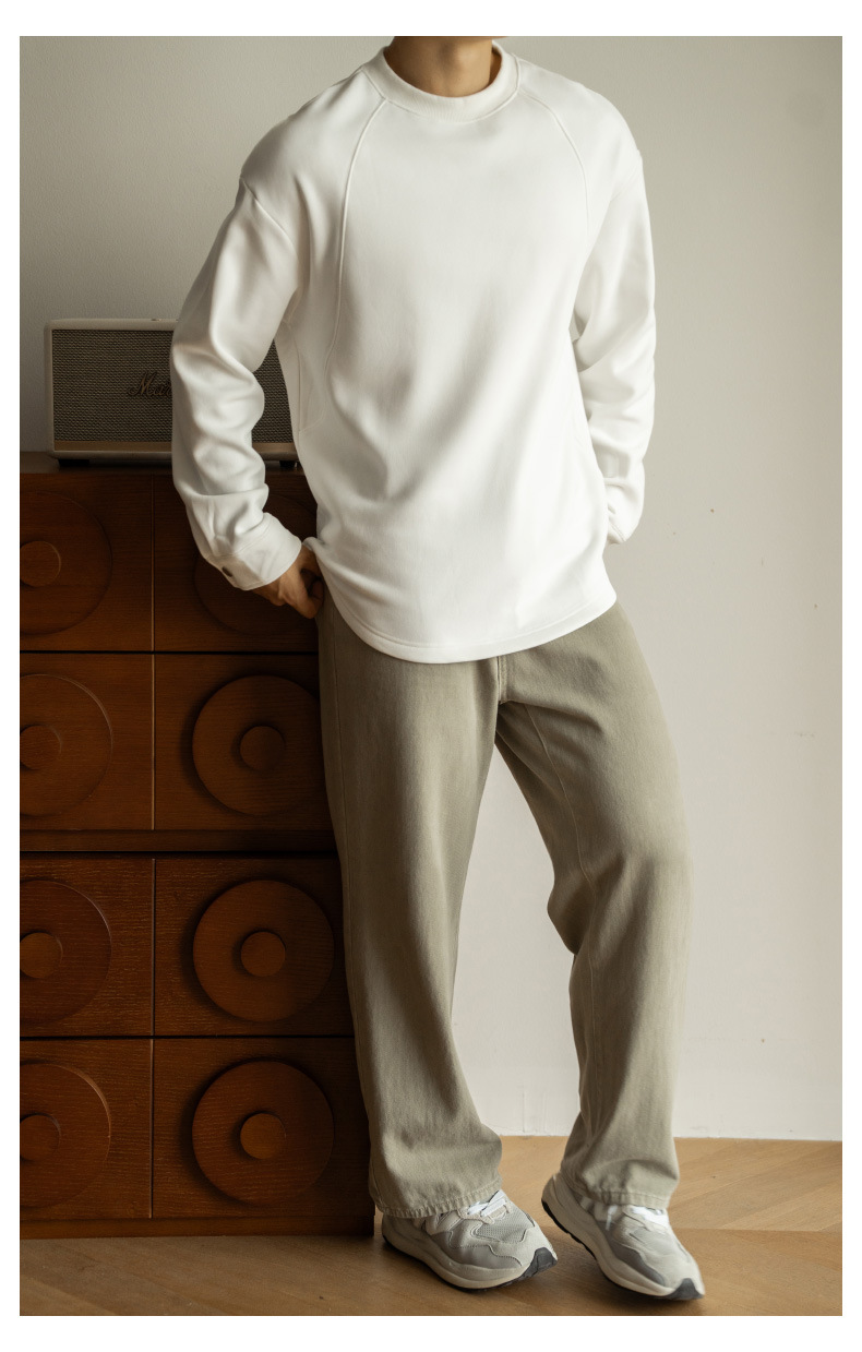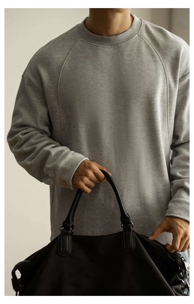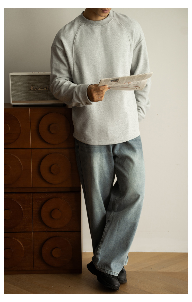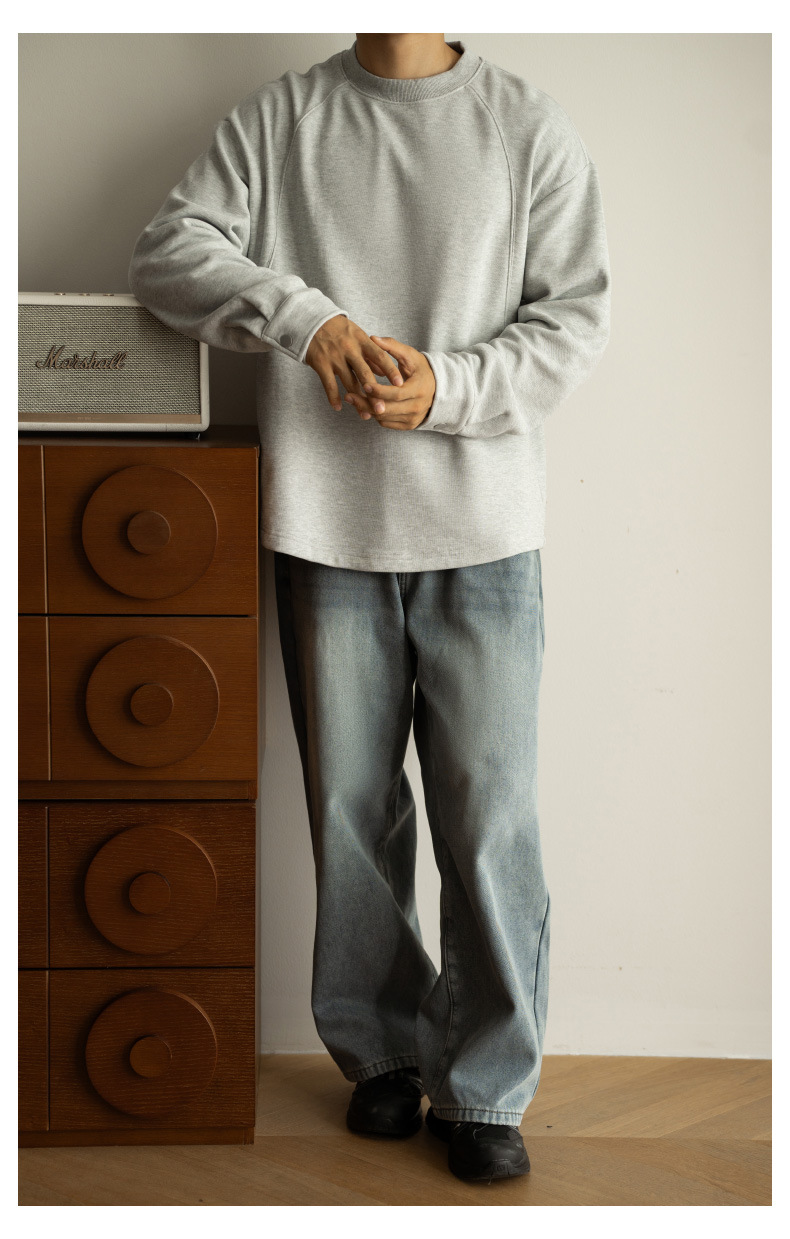 日系重磅加絨加厚插肩襯衫袖衛衣男青年新款休閒長袖打底T恤