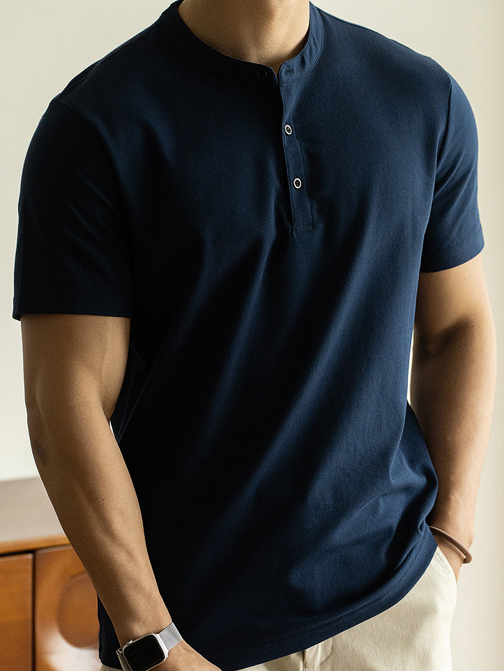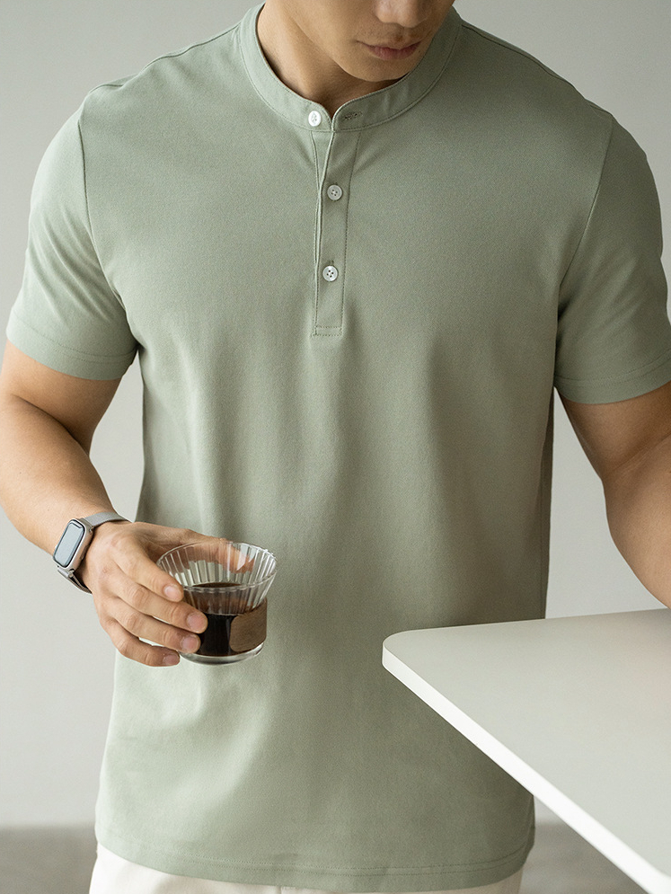 春夏新款7A抗菌防蟎防曬透氣亨利領短袖T恤男士休閒打底衫上衣