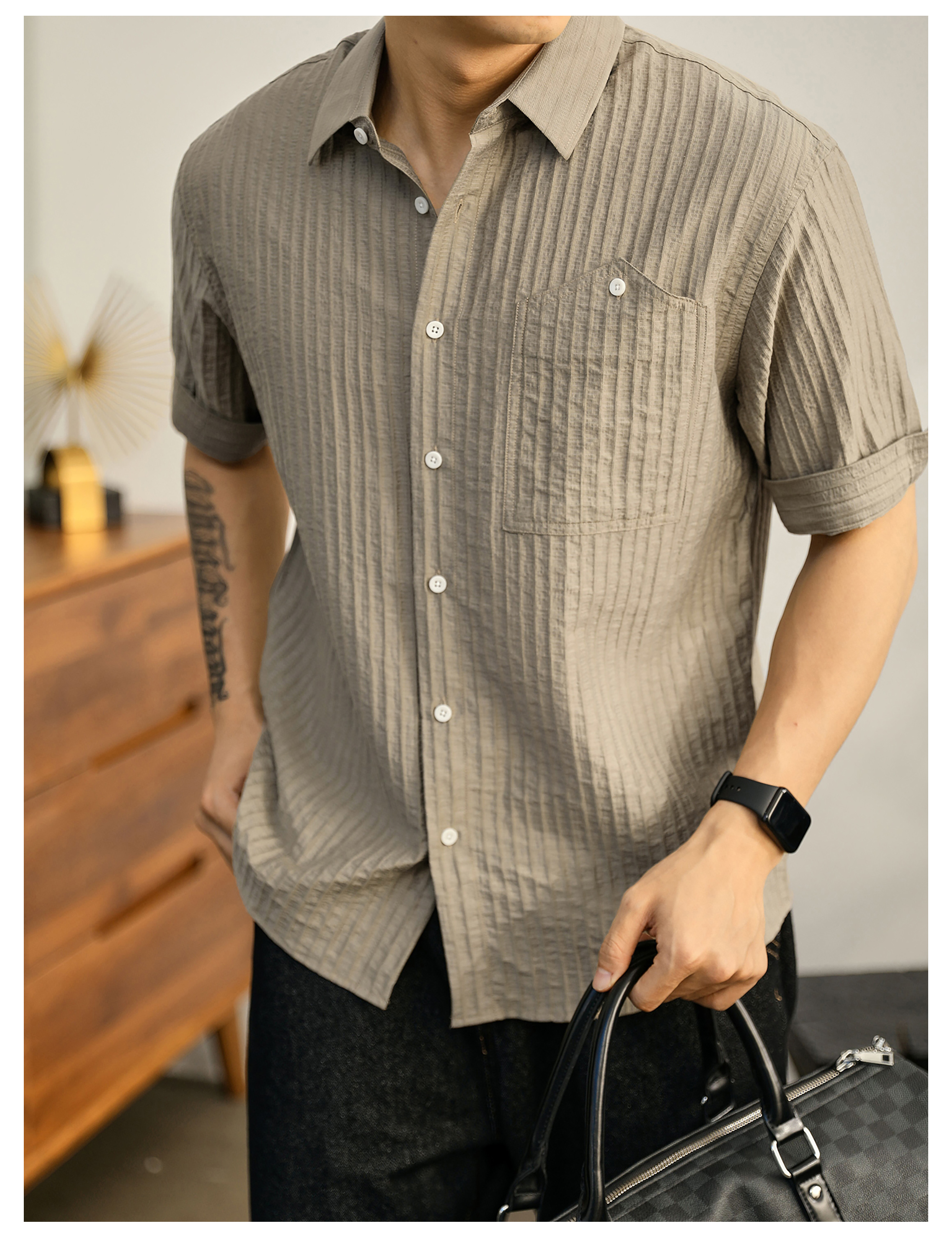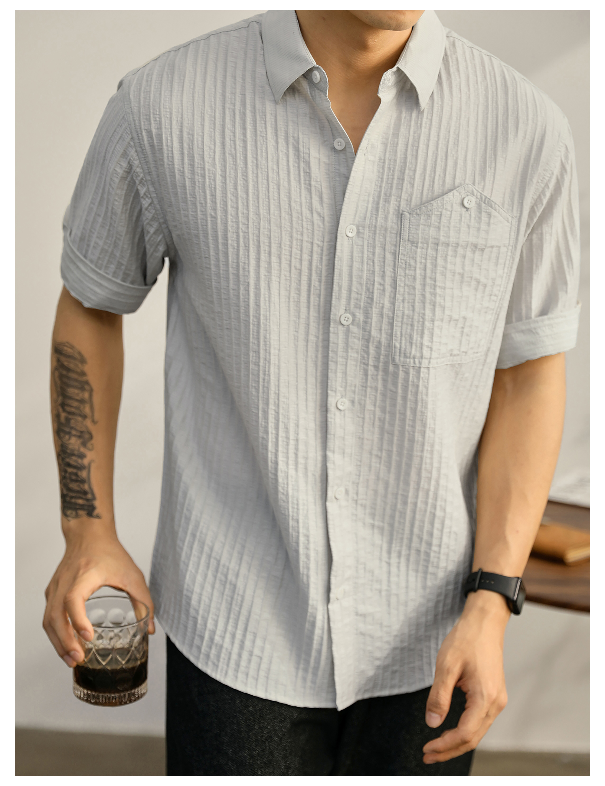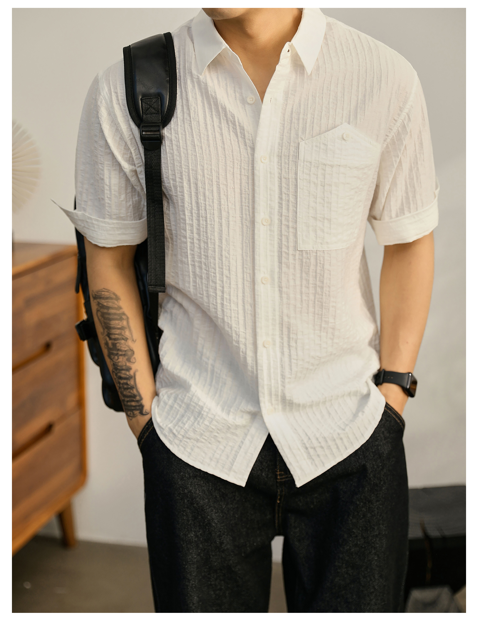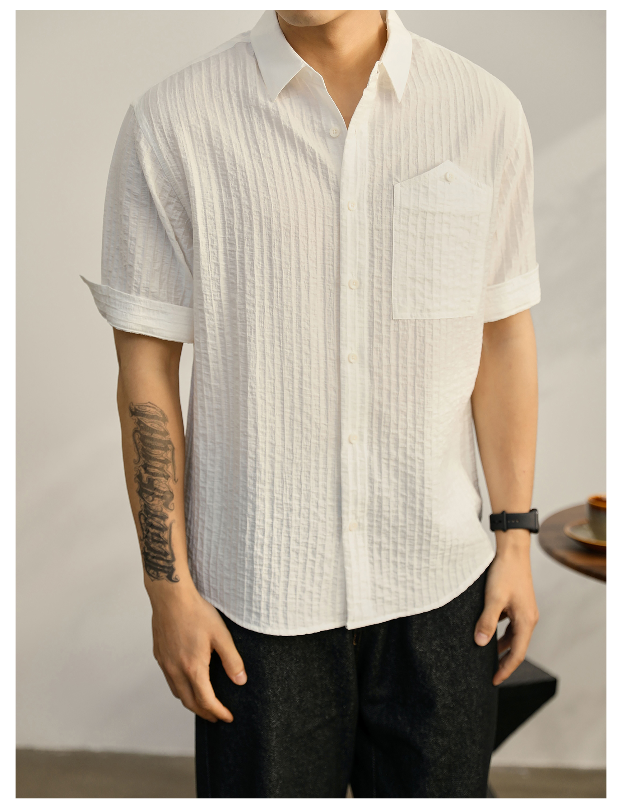 時尚潮流帥氣單穿襯衫男萊賽爾透氣襯衣泡泡肌理感紋理短袖