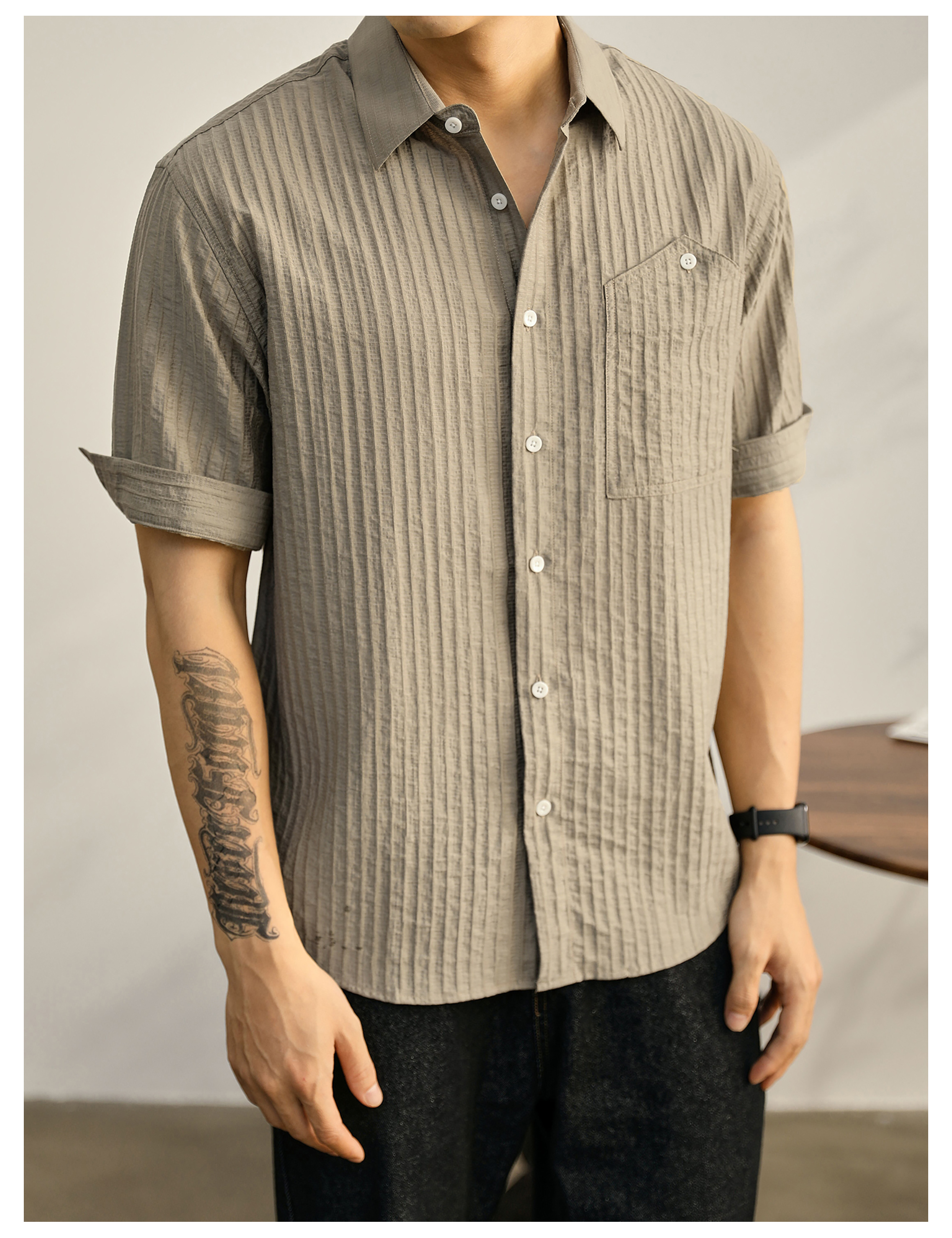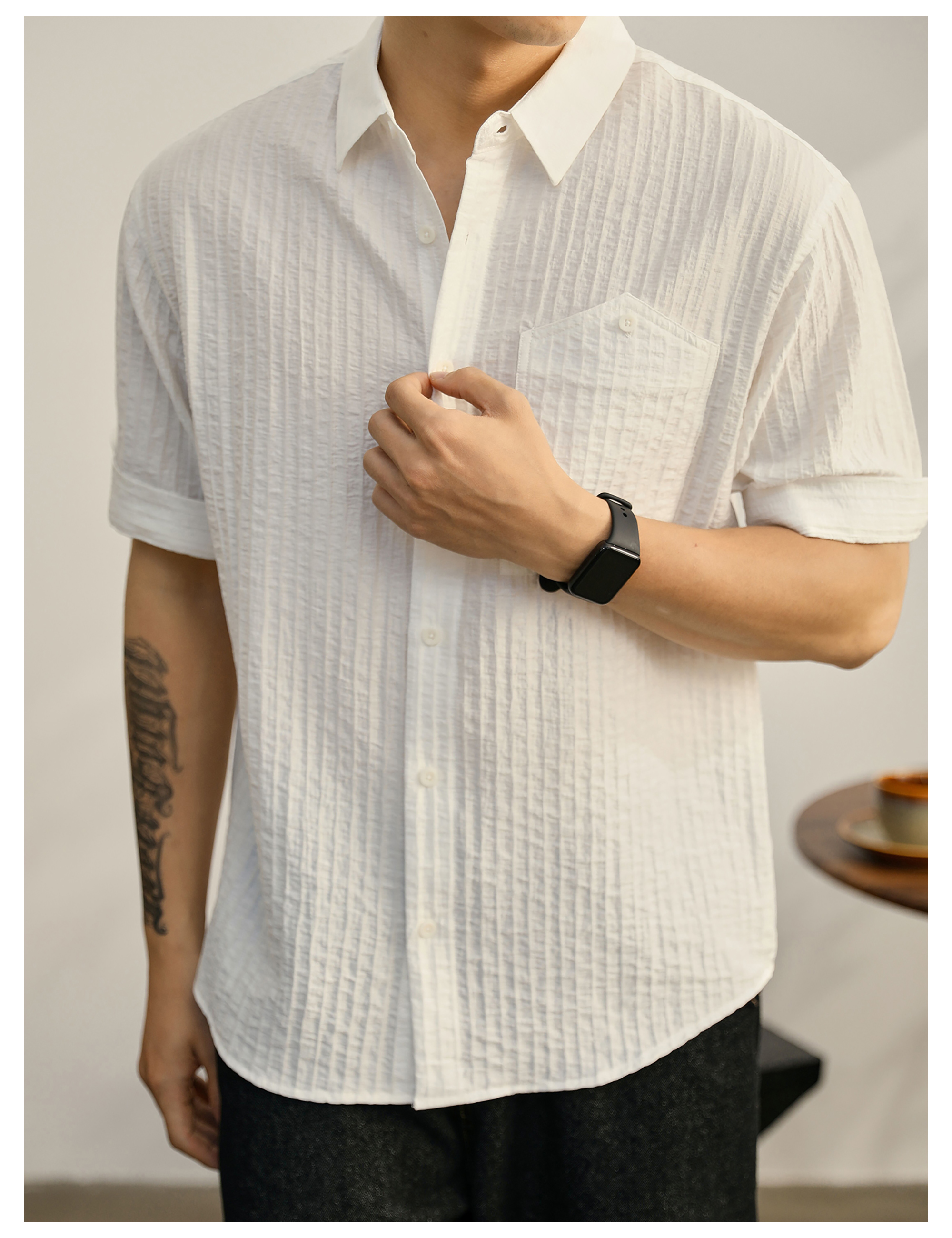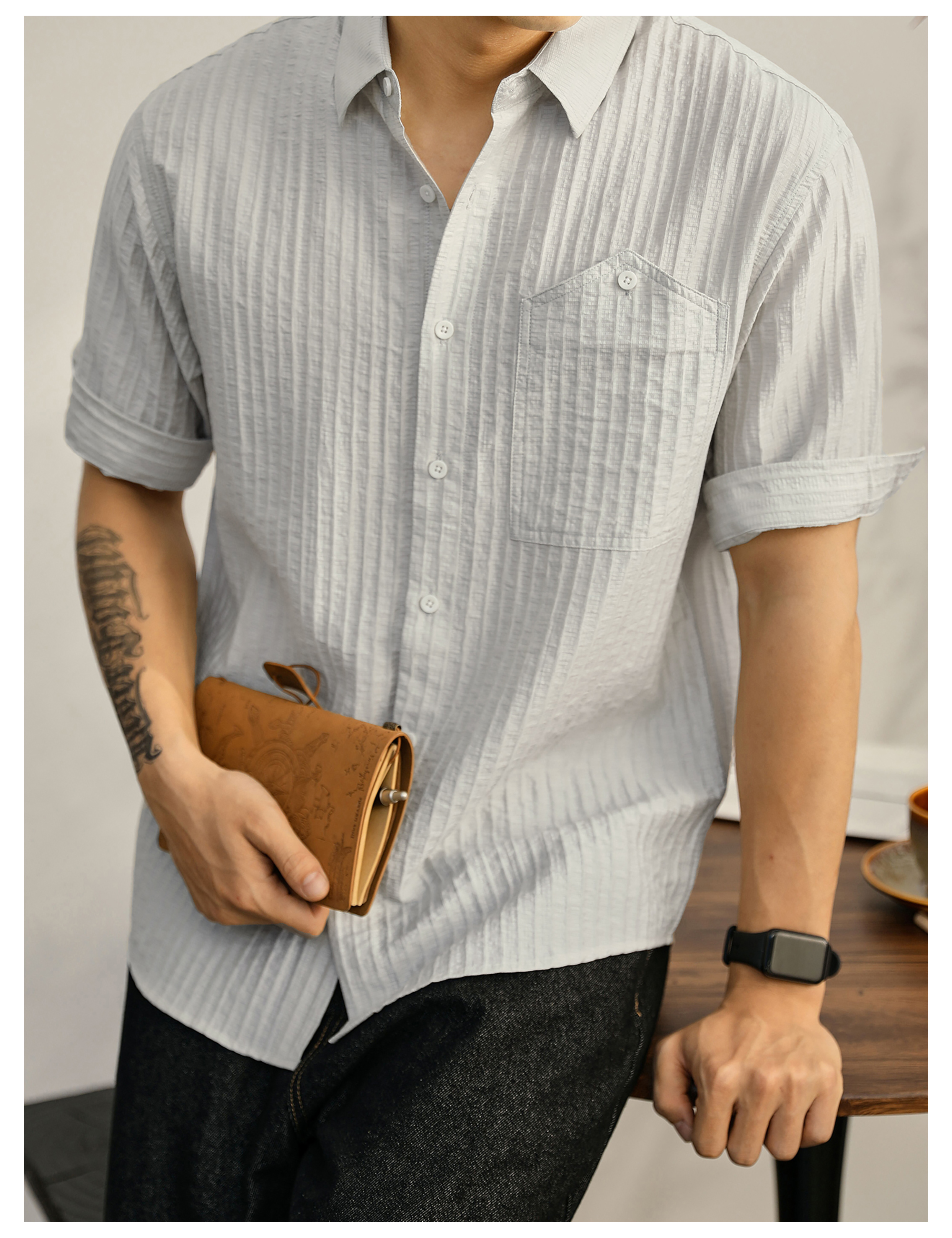 時尚潮流帥氣單穿襯衫男萊賽爾透氣襯衣泡泡肌理感紋理短袖
