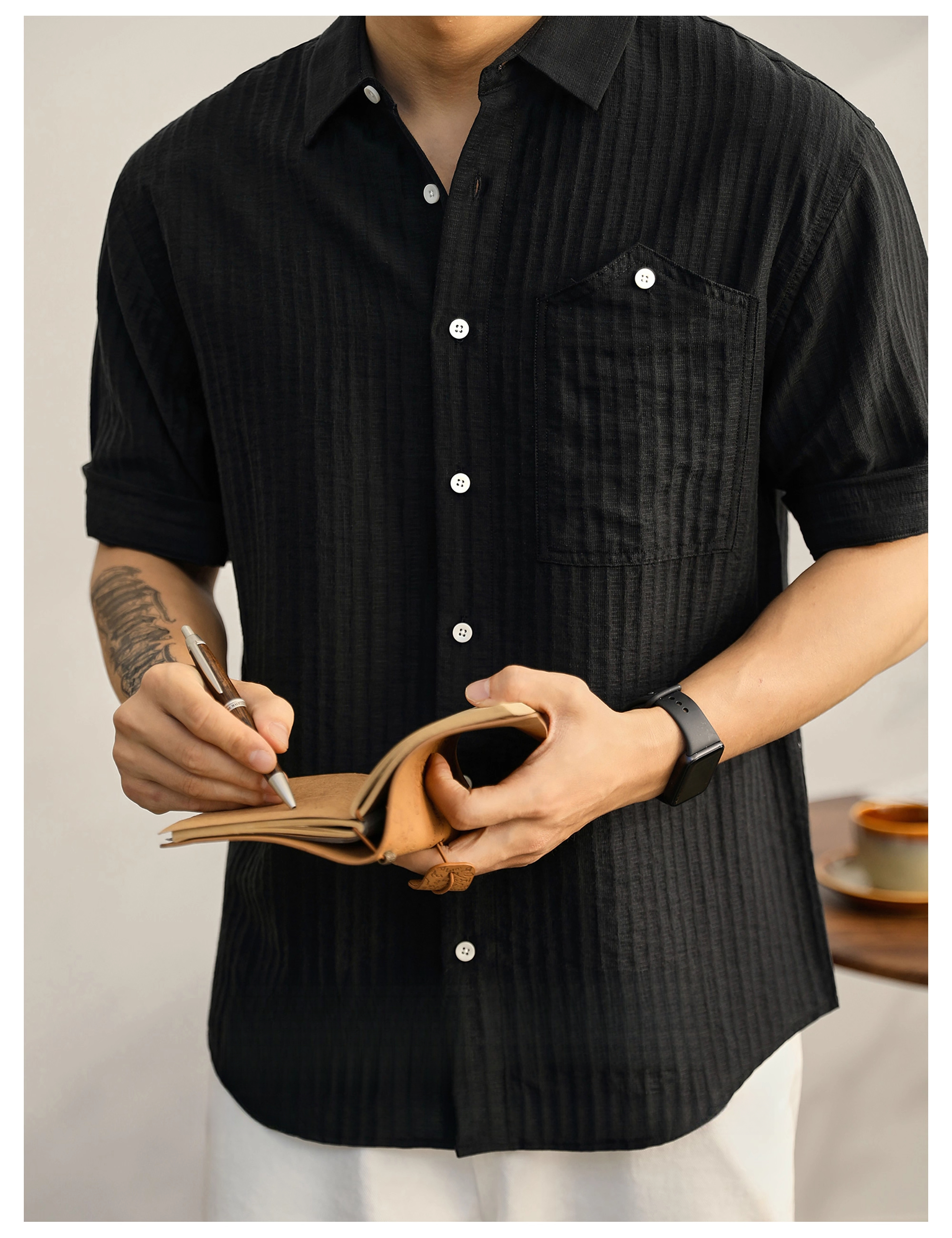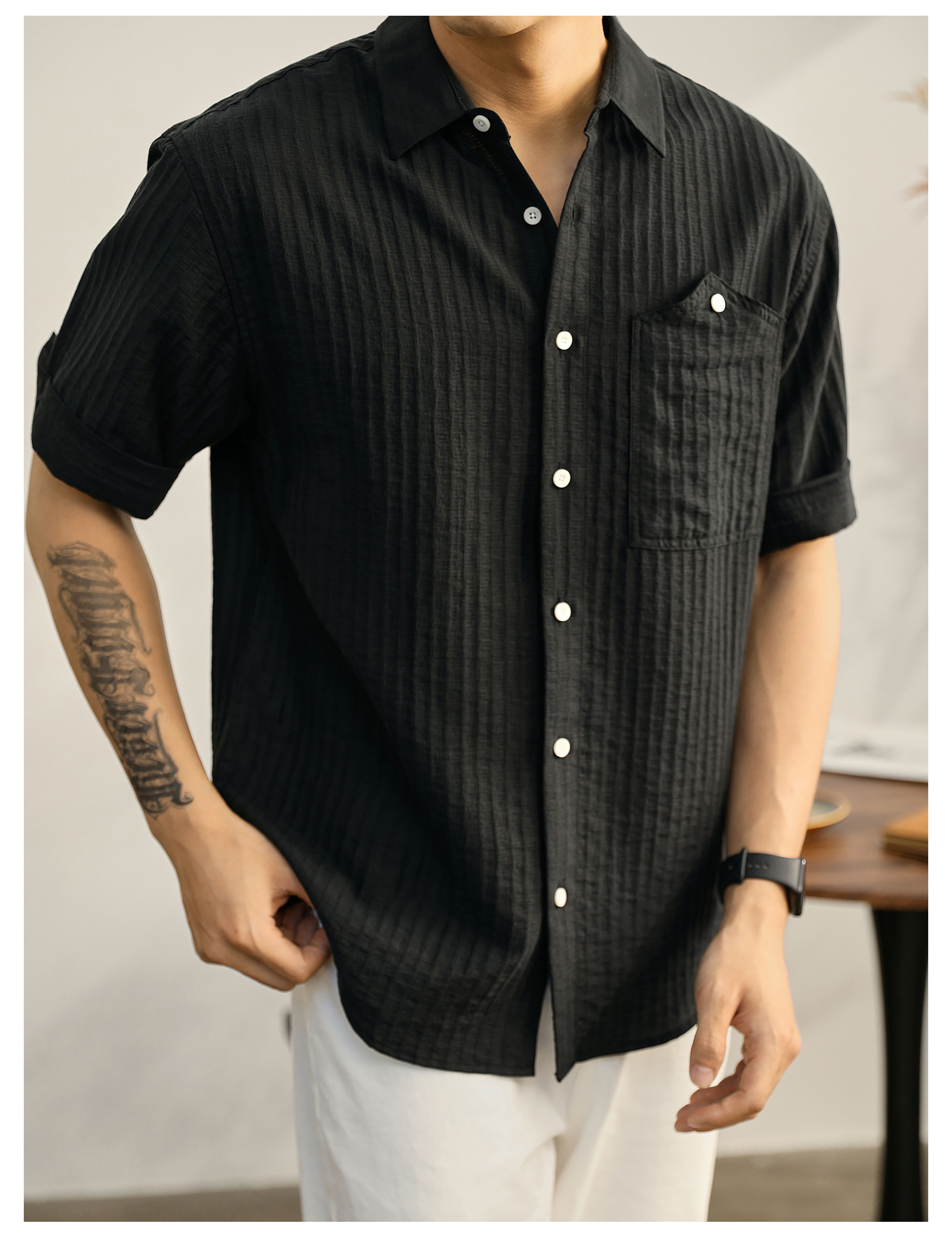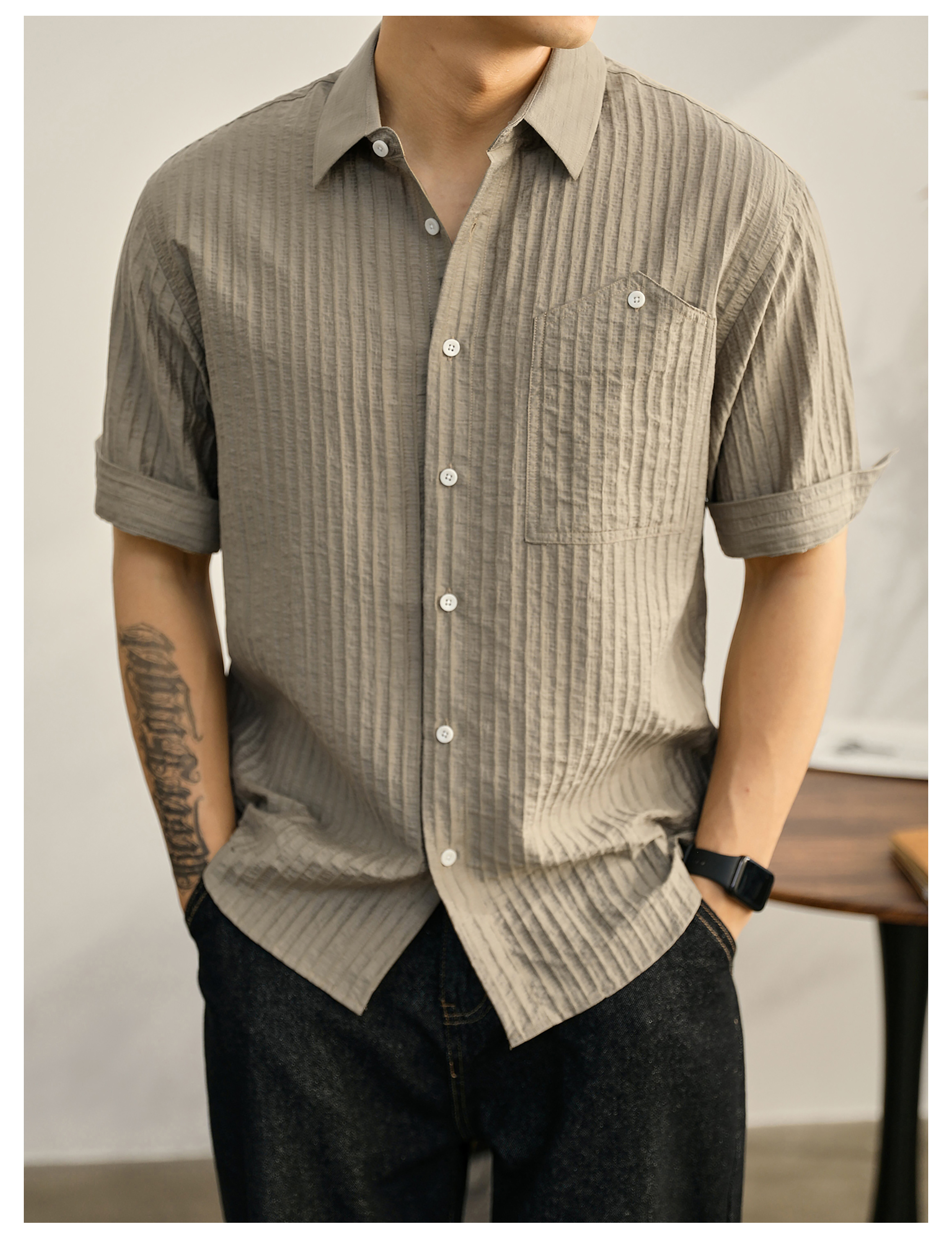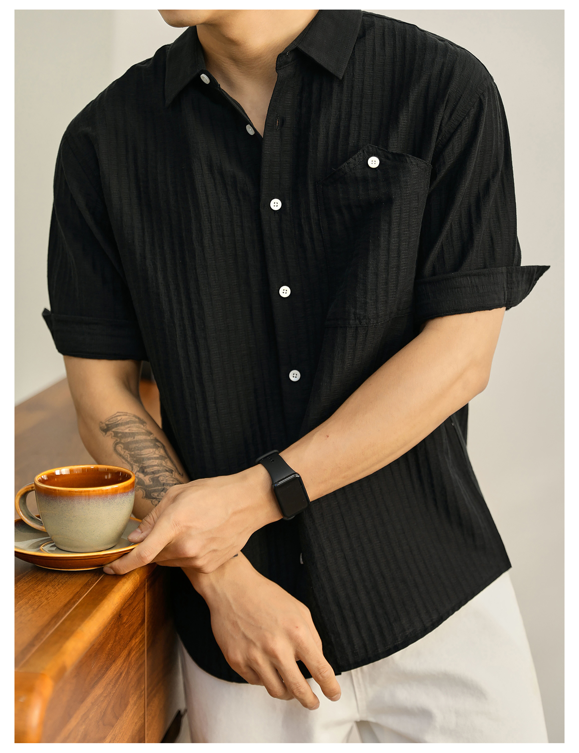 時尚潮流帥氣單穿襯衫男萊賽爾透氣襯衣泡泡肌理感紋理短袖