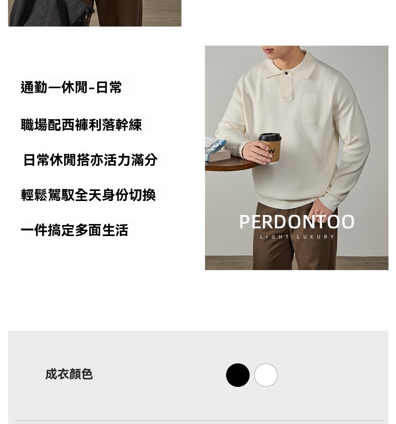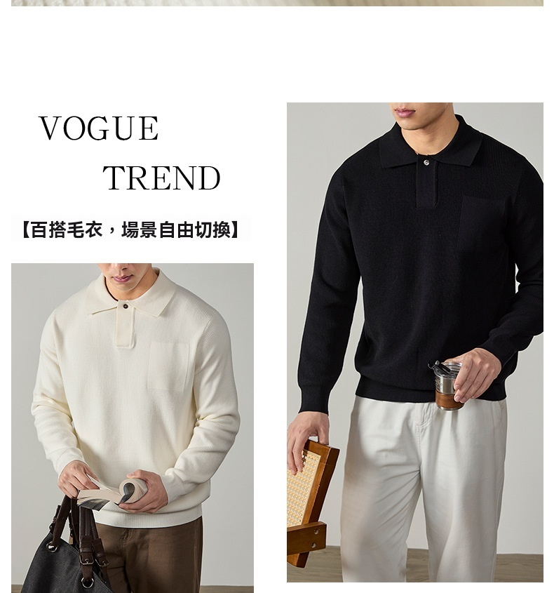 暗釦設計款暖奢豎紋針織衫冬季可機洗翻領毛衣男款保暖商務百搭