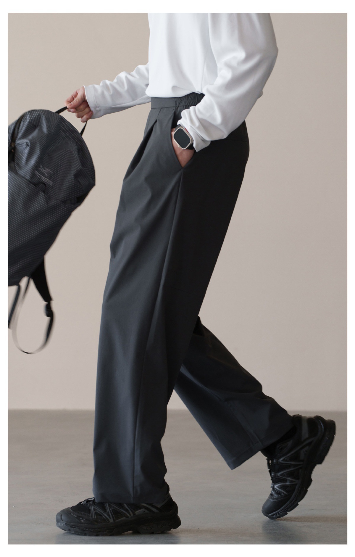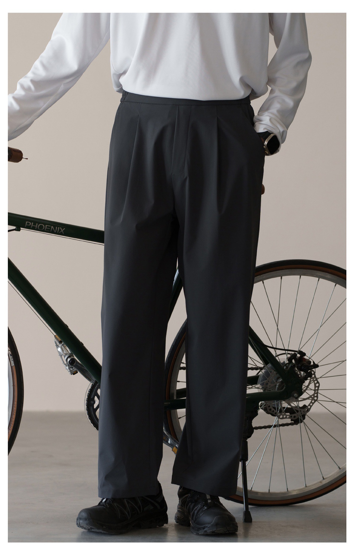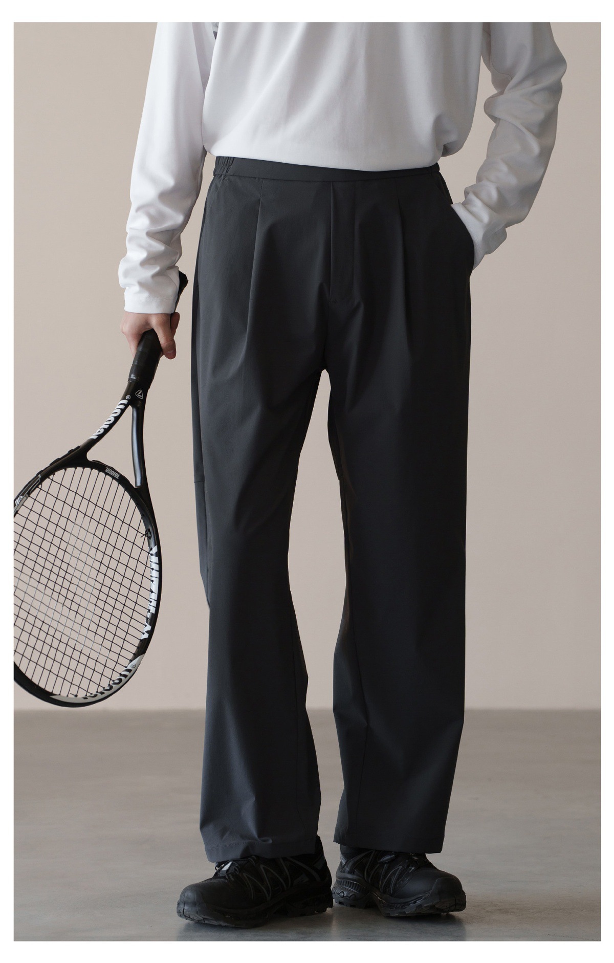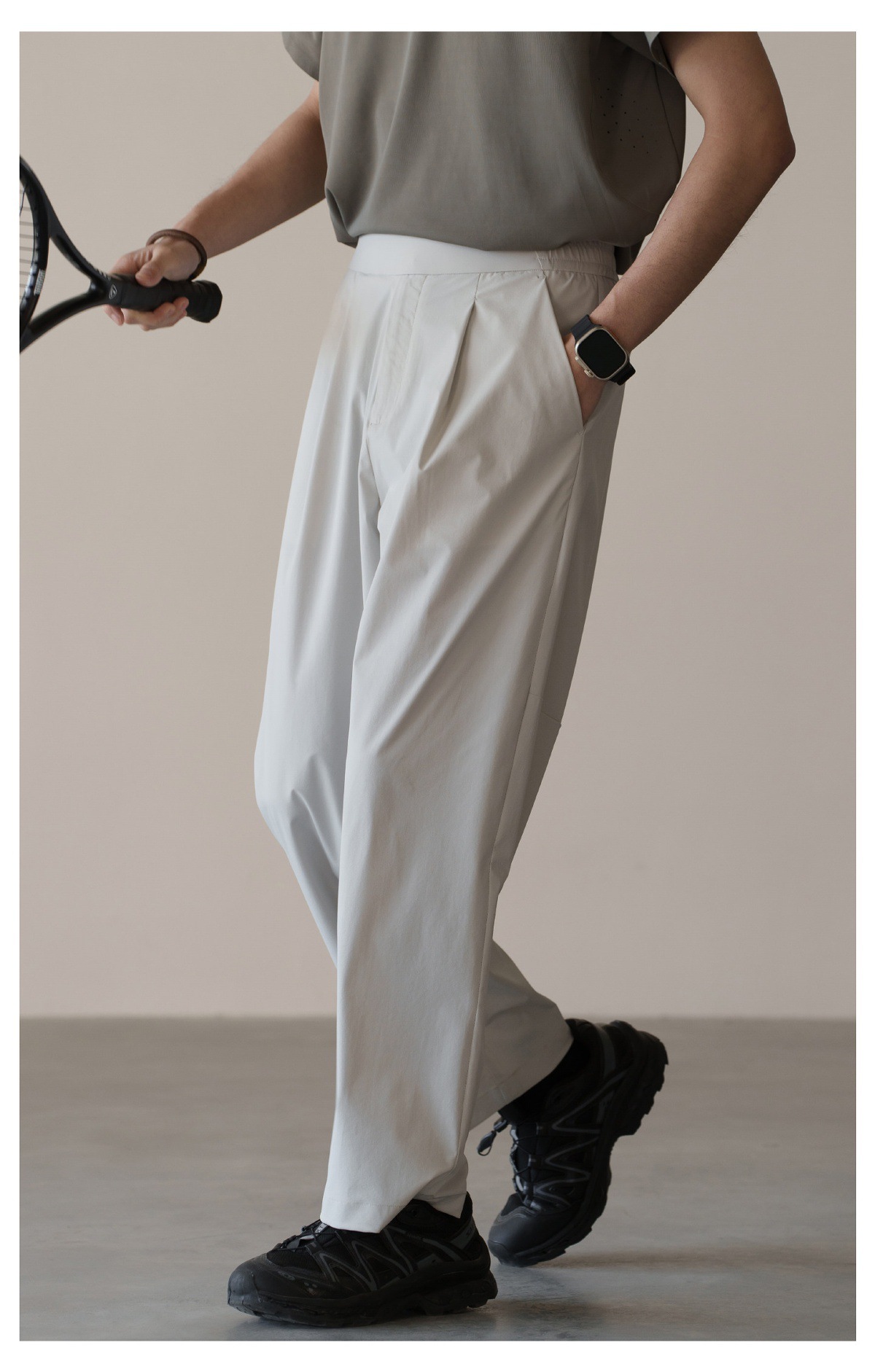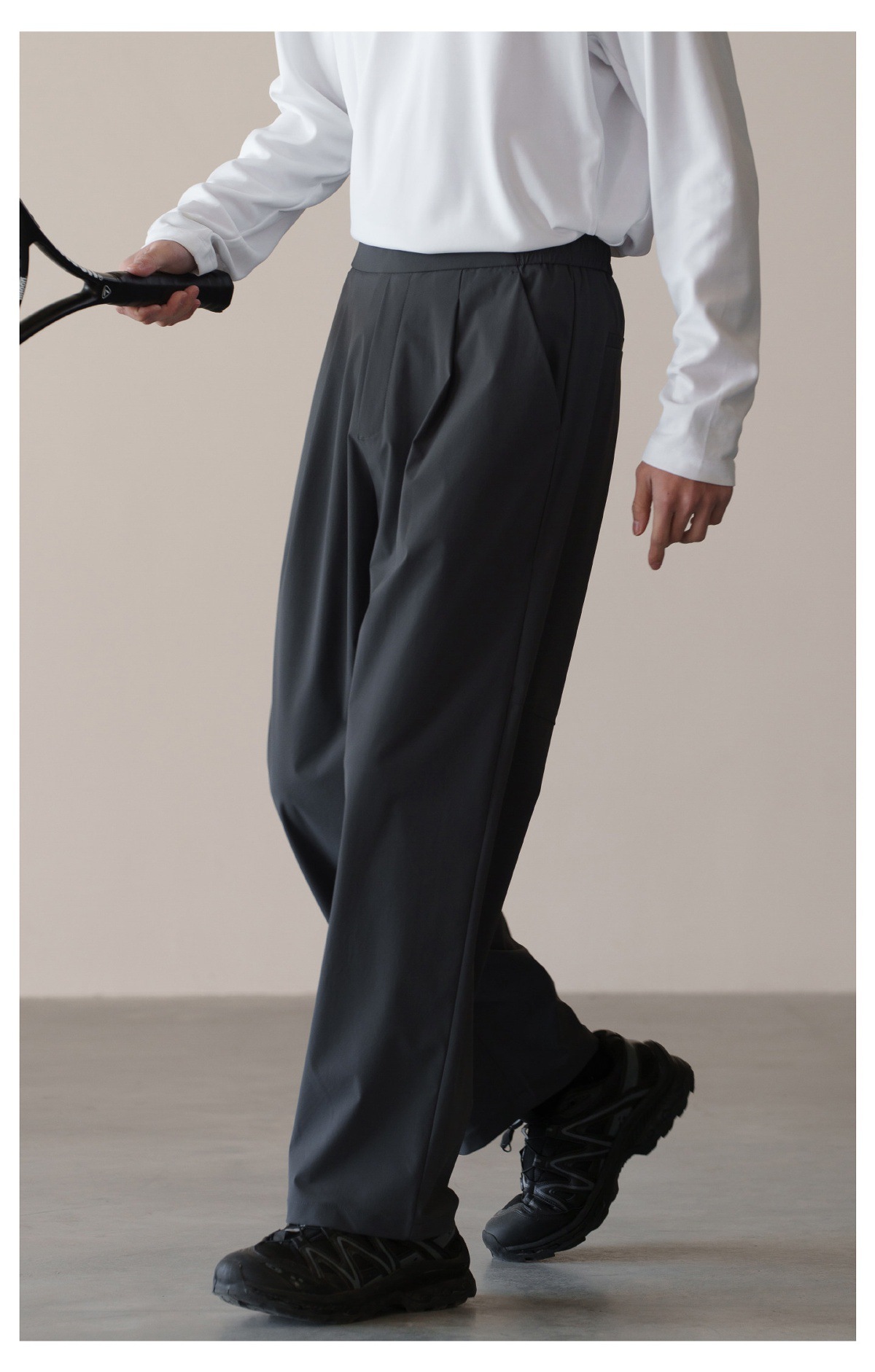 格雷系鬆緊腰雙褶耐磨休閒褲男春季易打理新款寬鬆直筒闊腿褲