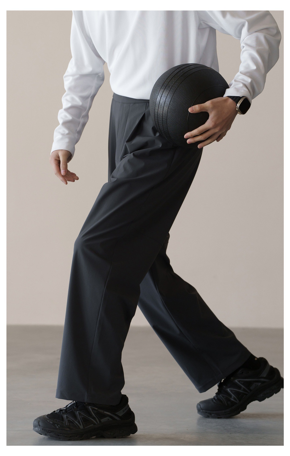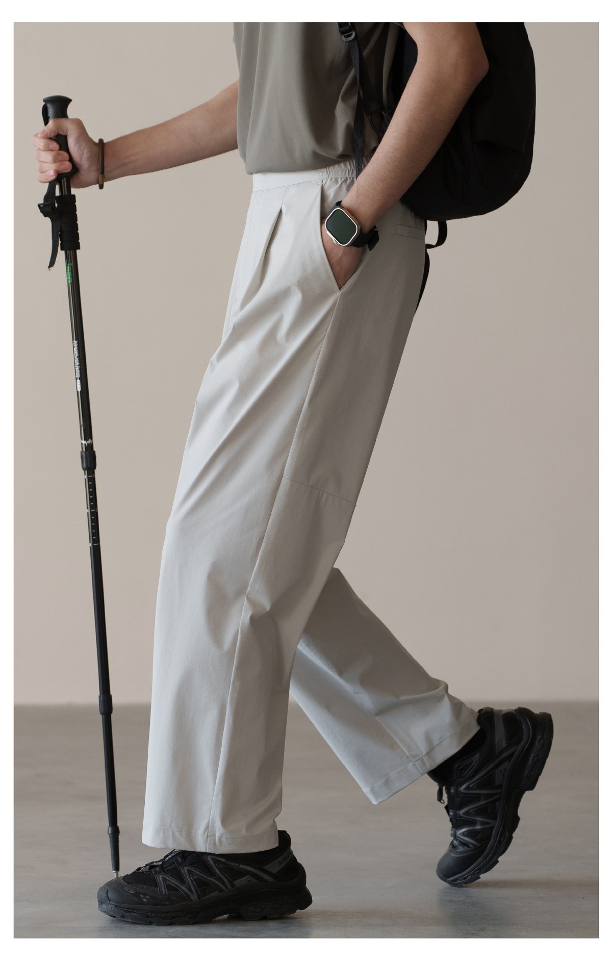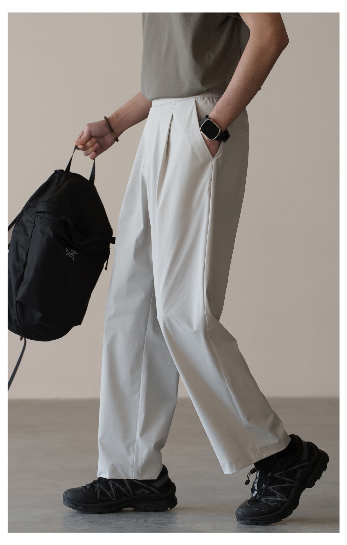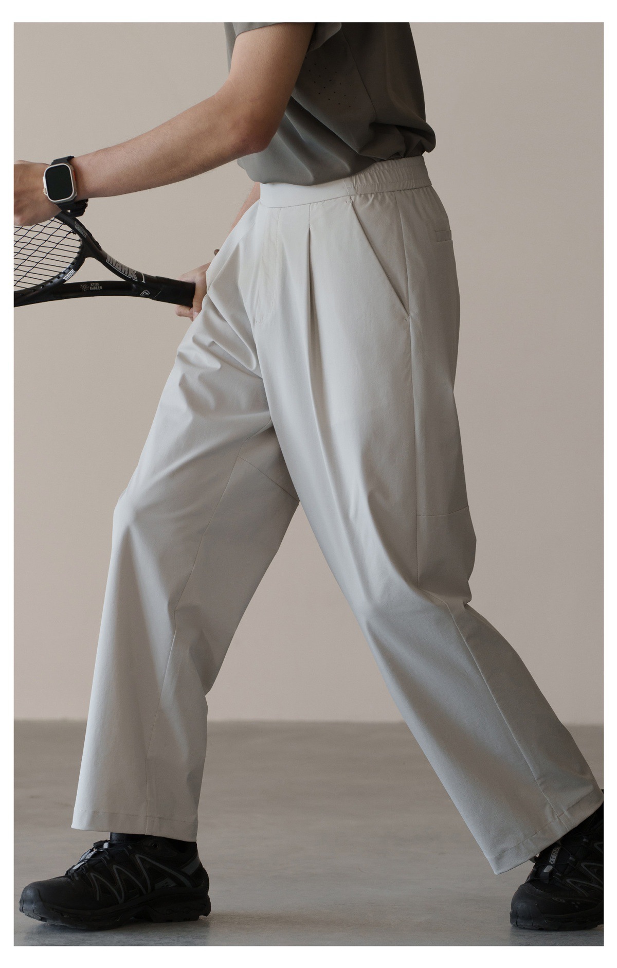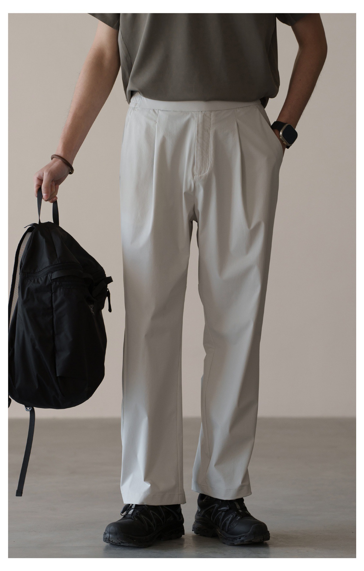 格雷系鬆緊腰雙褶耐磨休閒褲男春季易打理新款寬鬆直筒闊腿褲