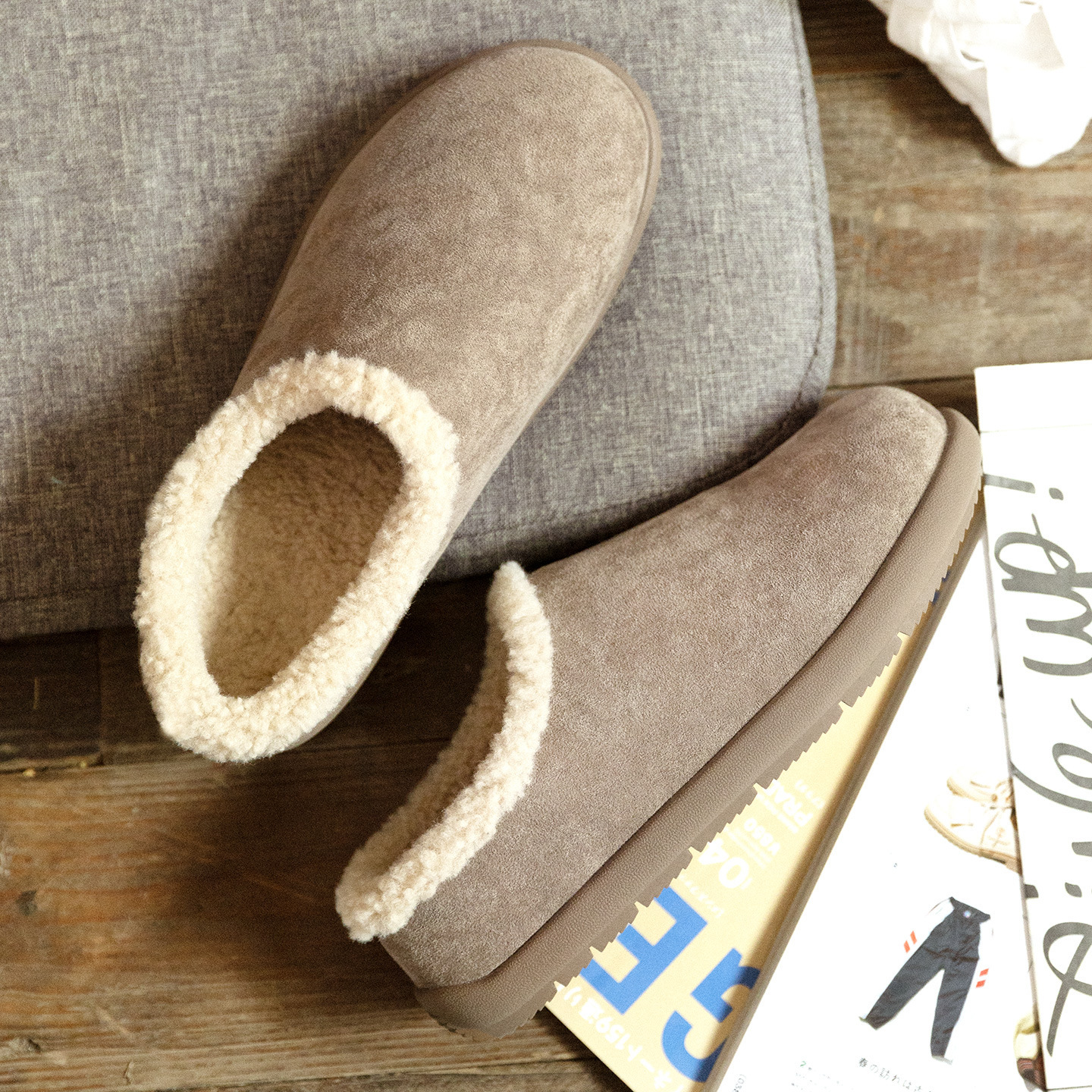 毛毛拖鞋男外穿2025新款厚底包跟居家棉拖包頭保暖勃肯棉鞋冬