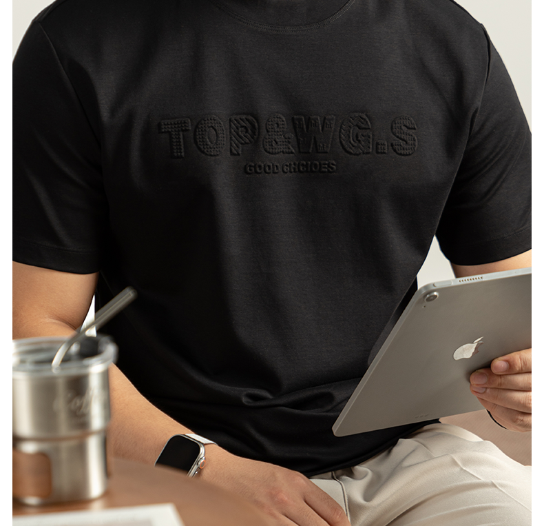 液氨冷感絲光棉短袖T恤男夏季涼感圓領半袖抗菌防蟎3D立體壓花潮