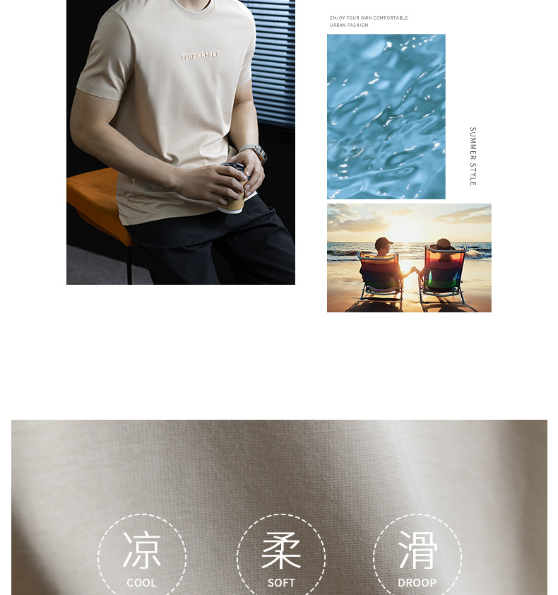 涼感系列|輕柔雲感棉短袖t桖男士夏季新款字母印花舒適休閒上衣