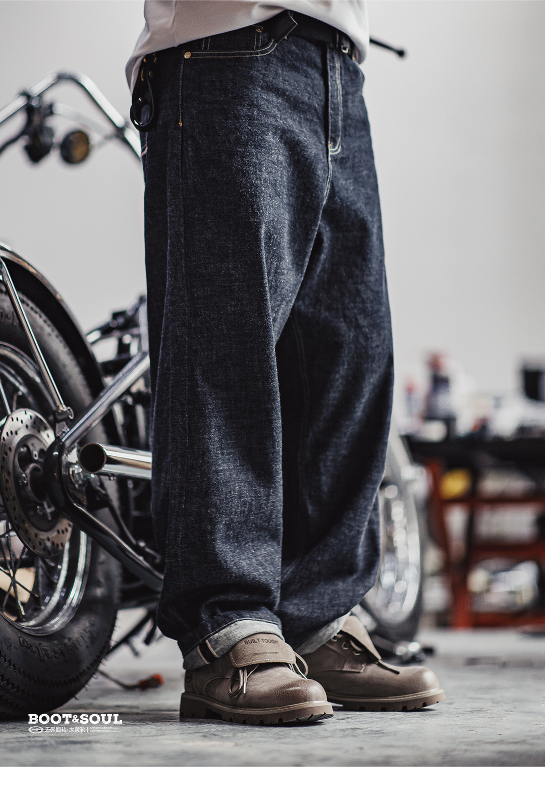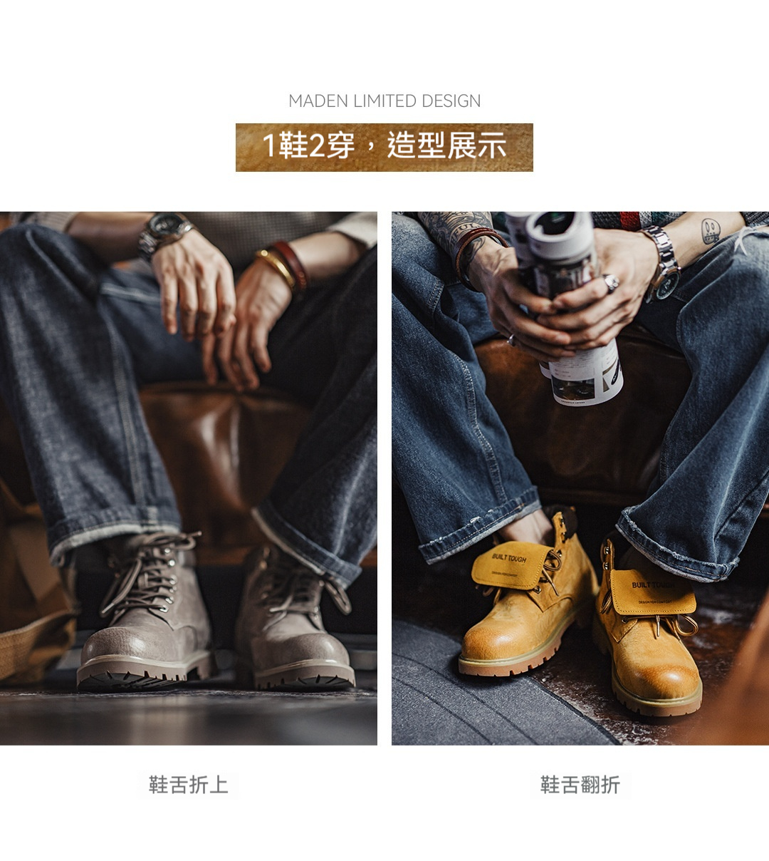 無界翻轉大黃靴男秋冬新款翻蓋中幫真皮復古美式工裝馬丁靴子