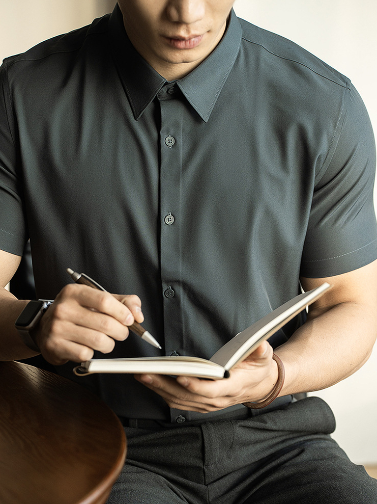 無痕垂感短袖襯衫男士2025春夏新款襯衣