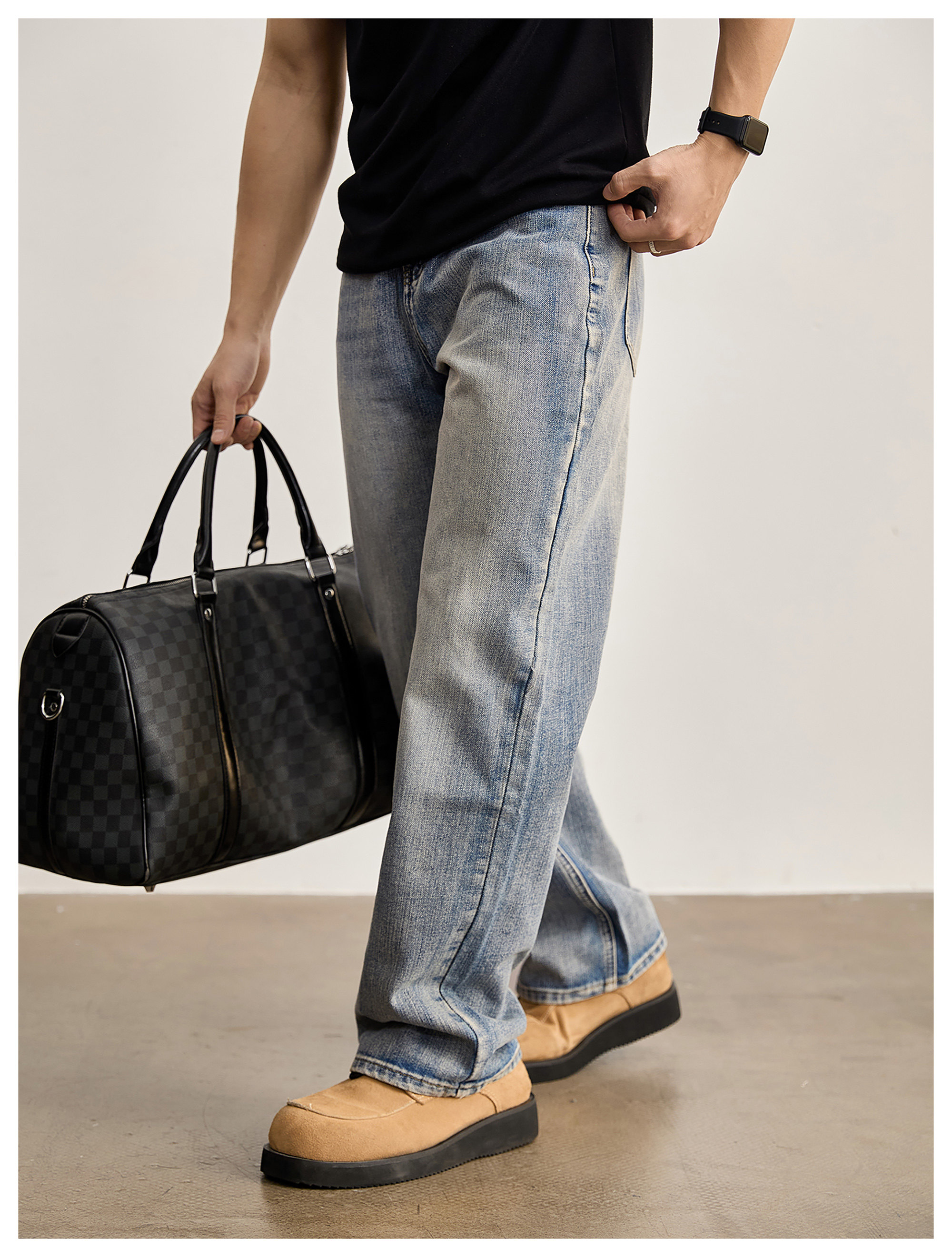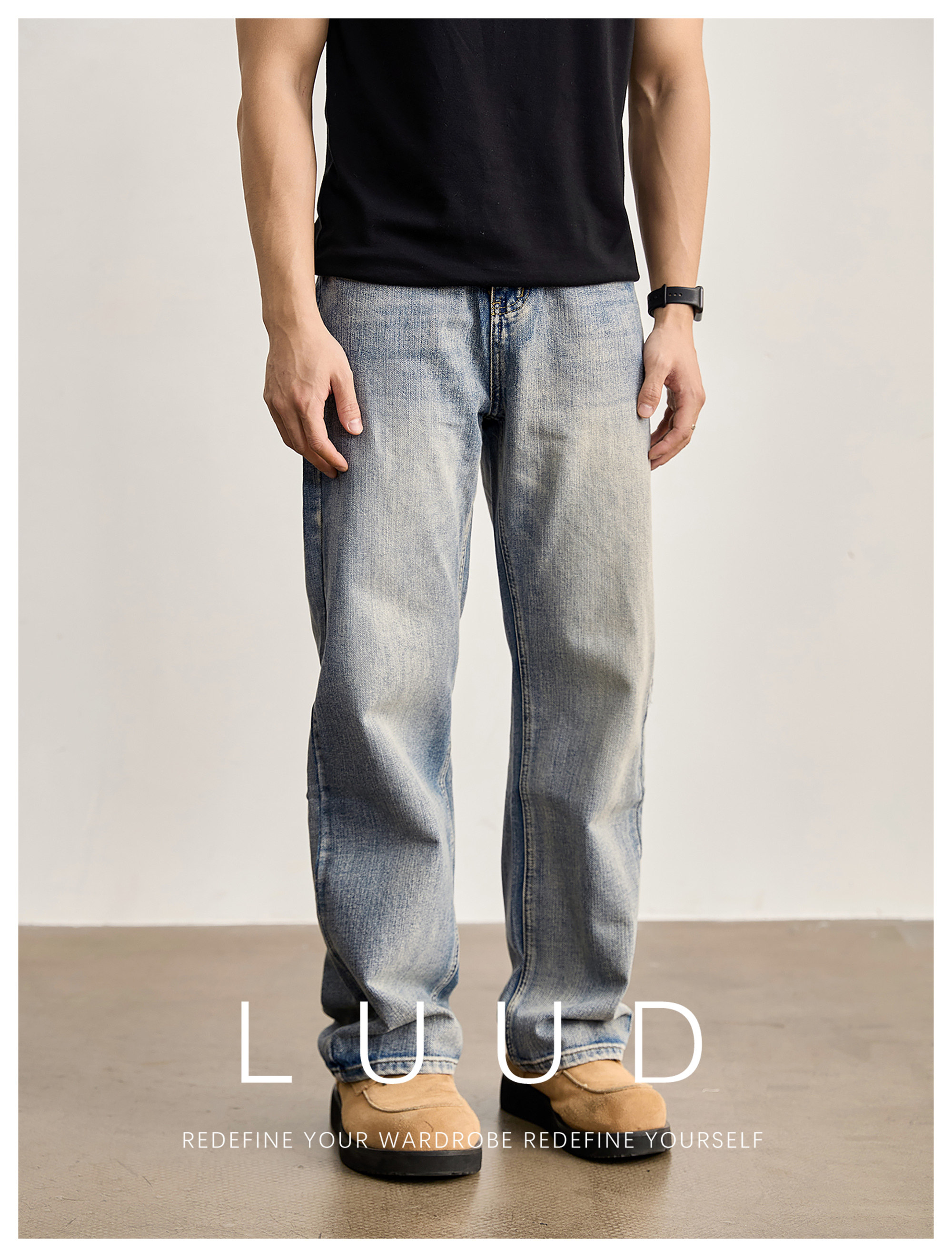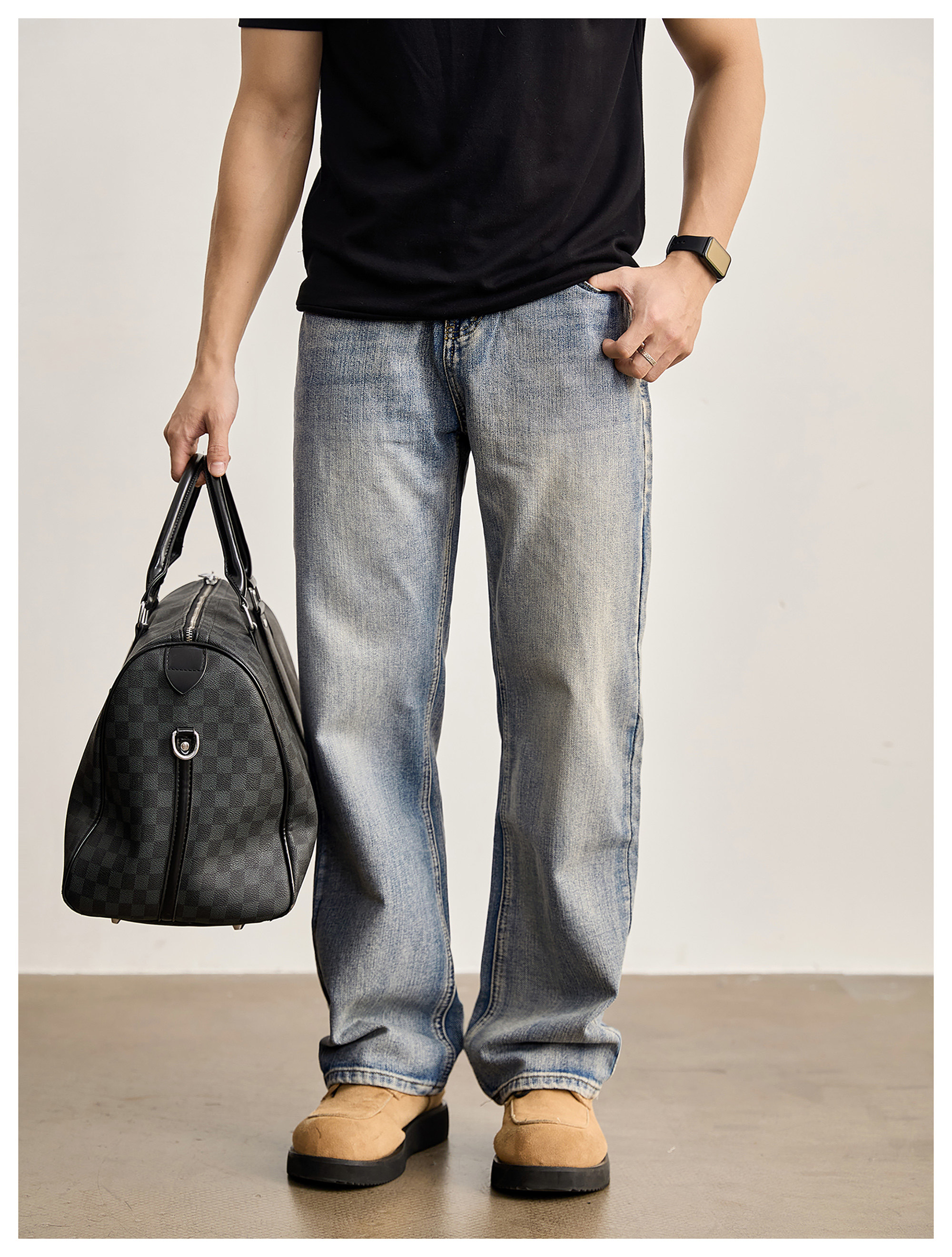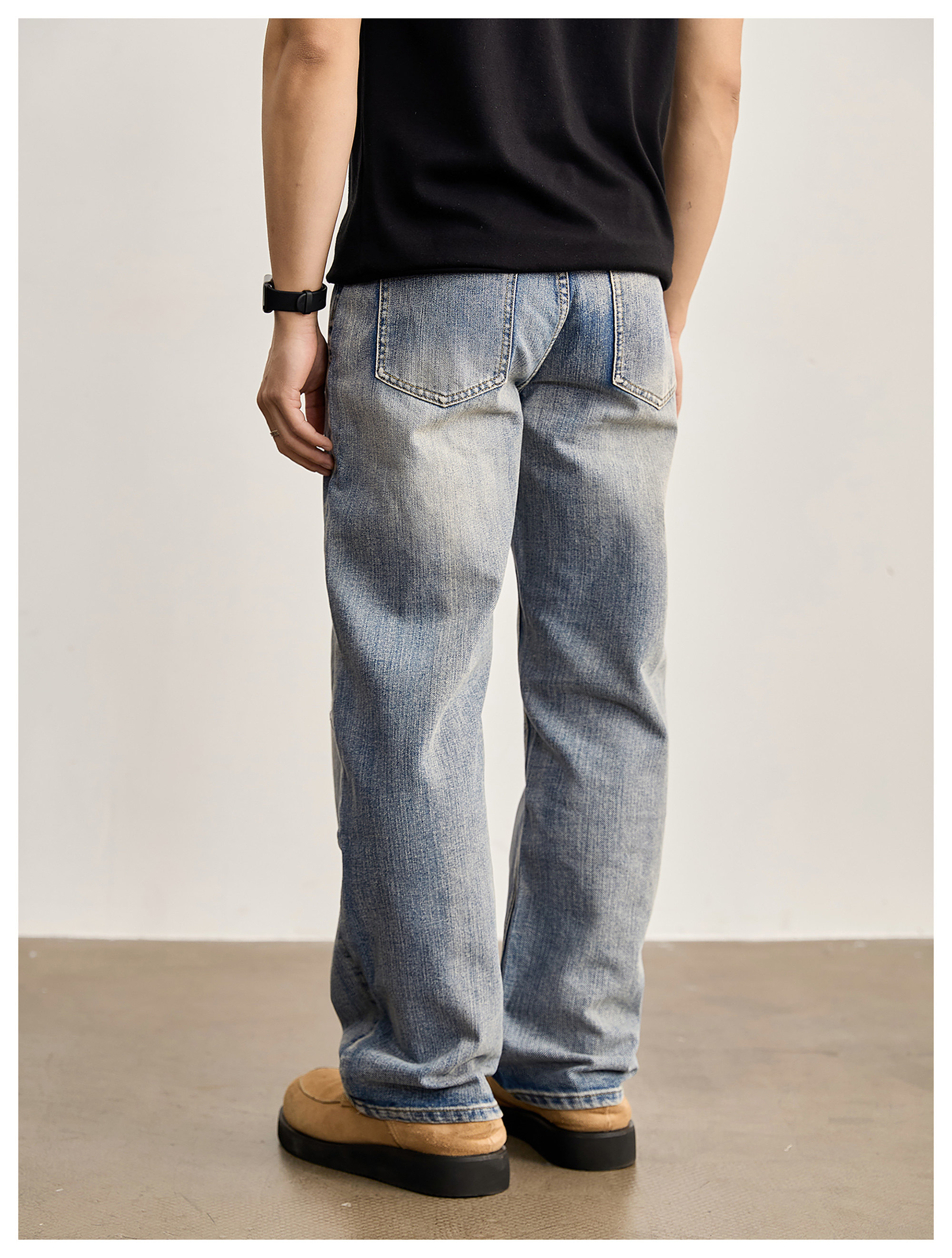 竹節藍貓須復古直筒牛仔褲男美式潮流水洗做舊休閒長褲春夏