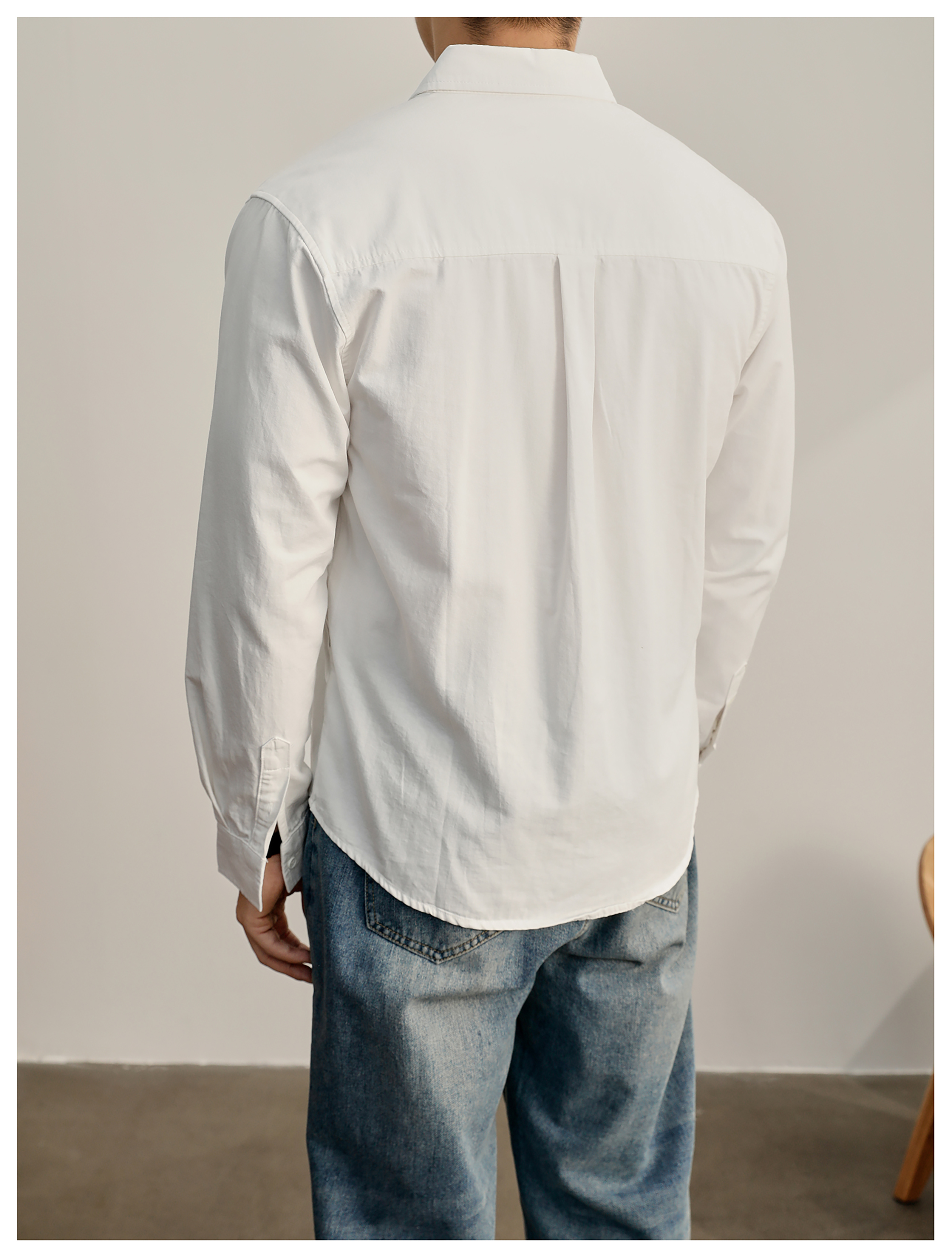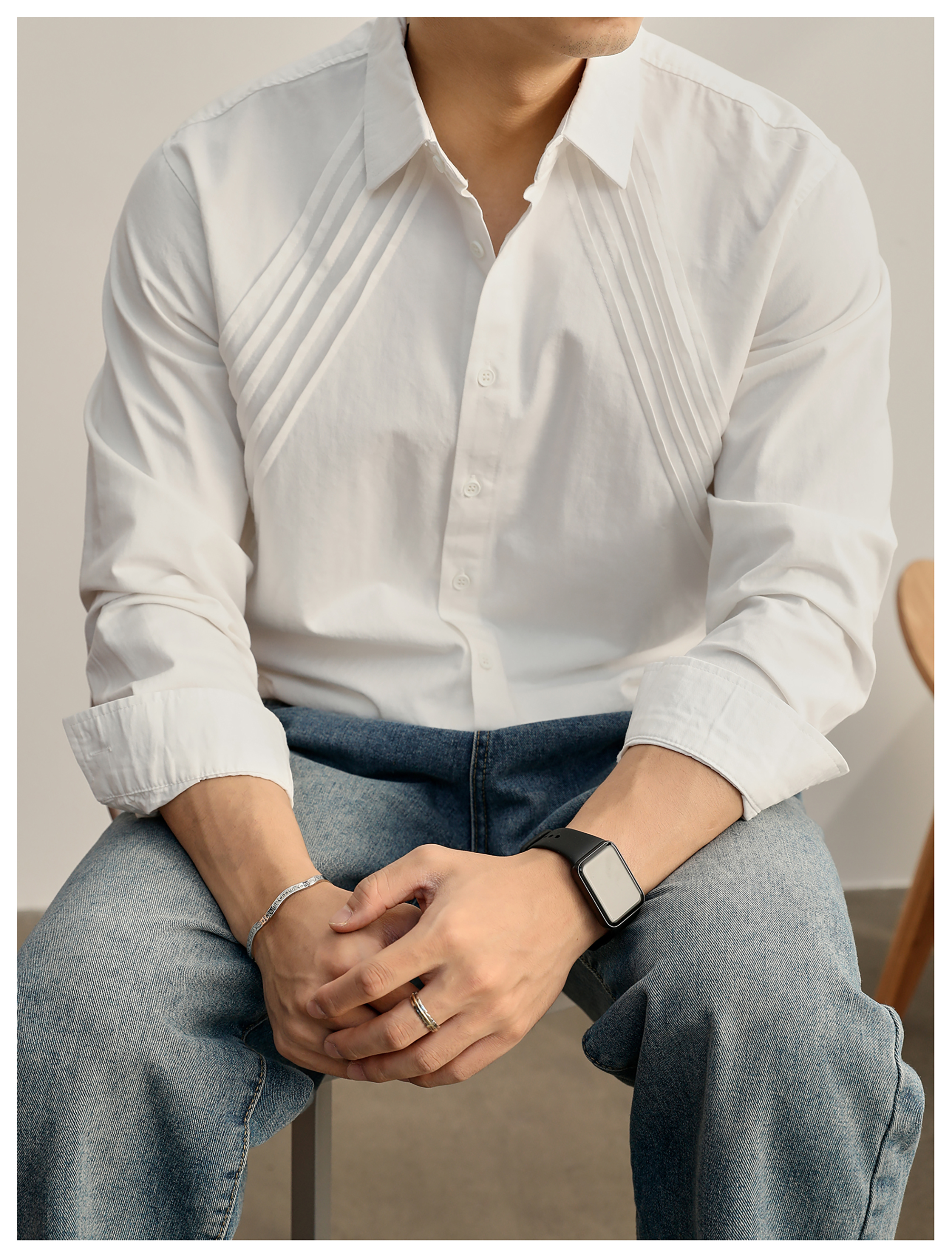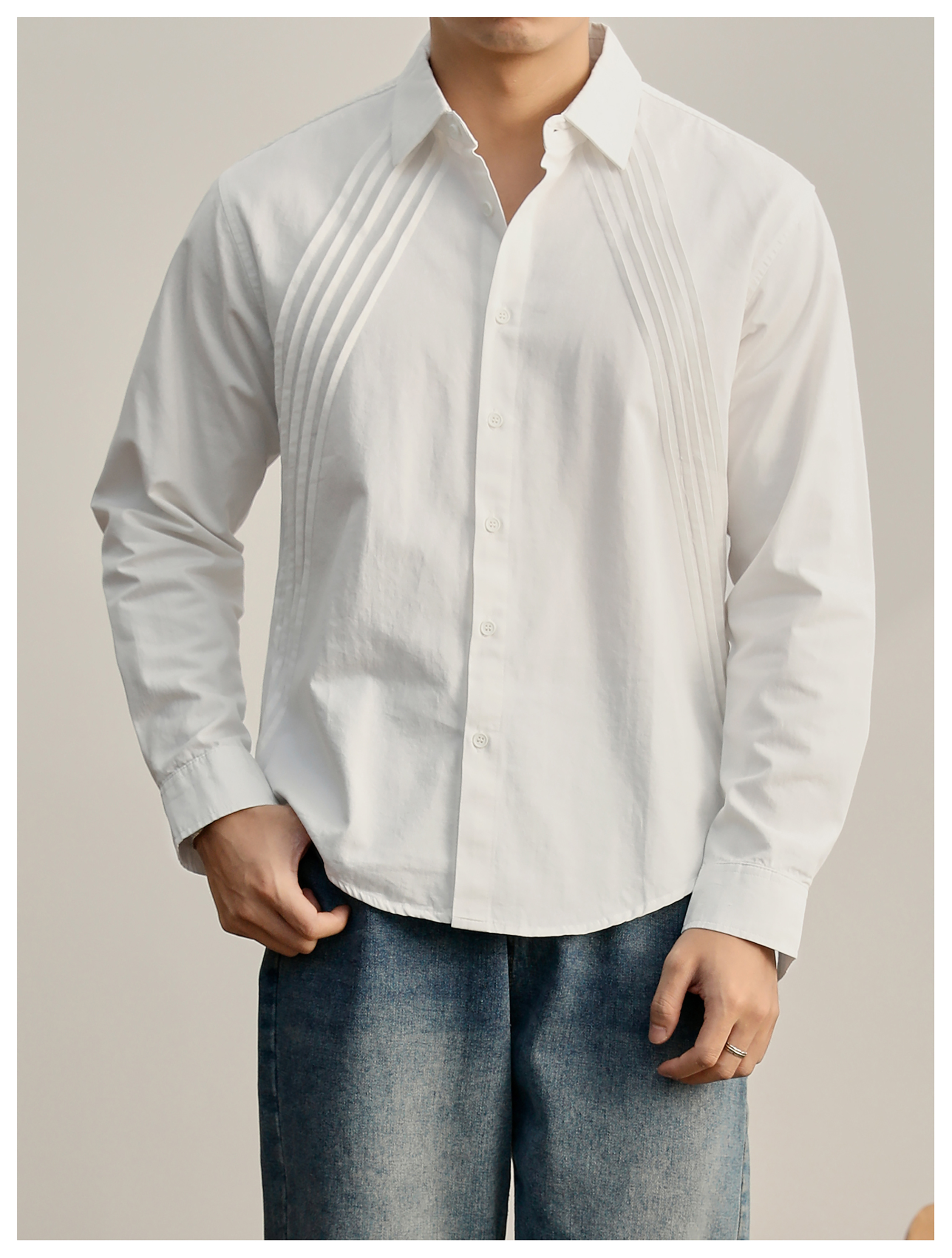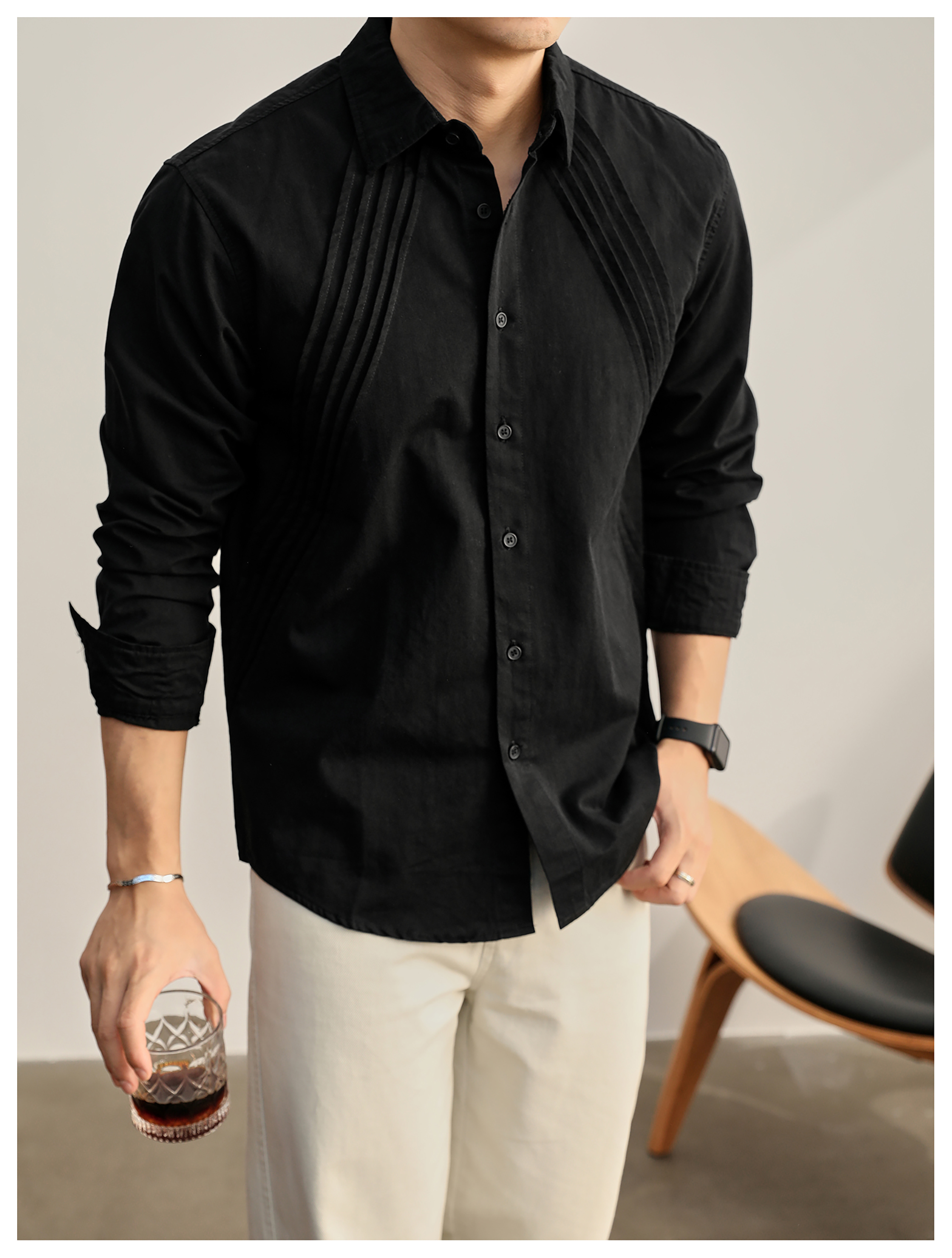 純色個性壓褶長袖襯衫100%純棉水洗挺括外穿百搭慵懶風襯衣