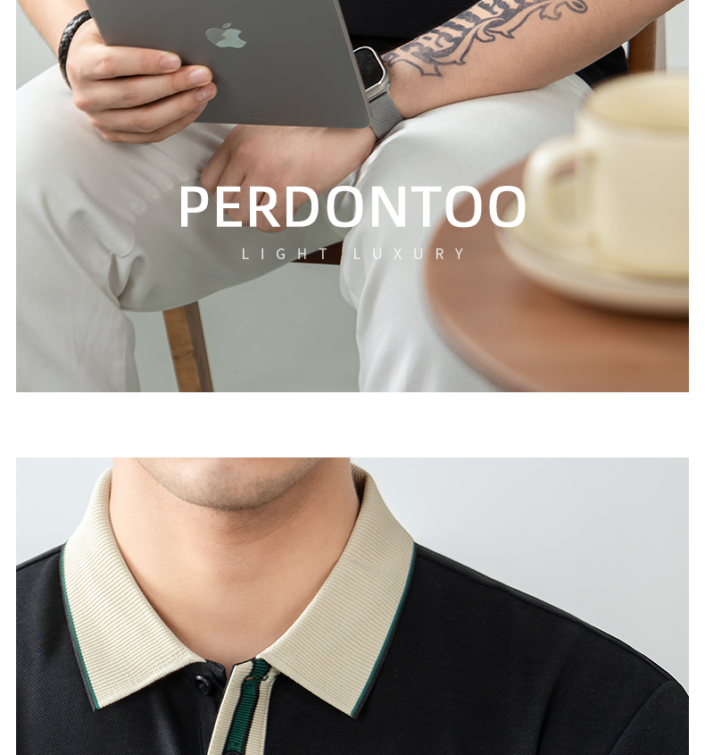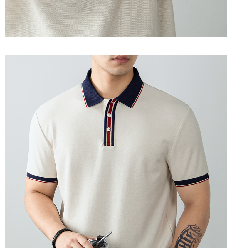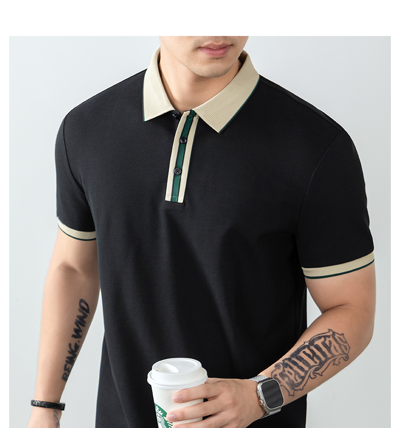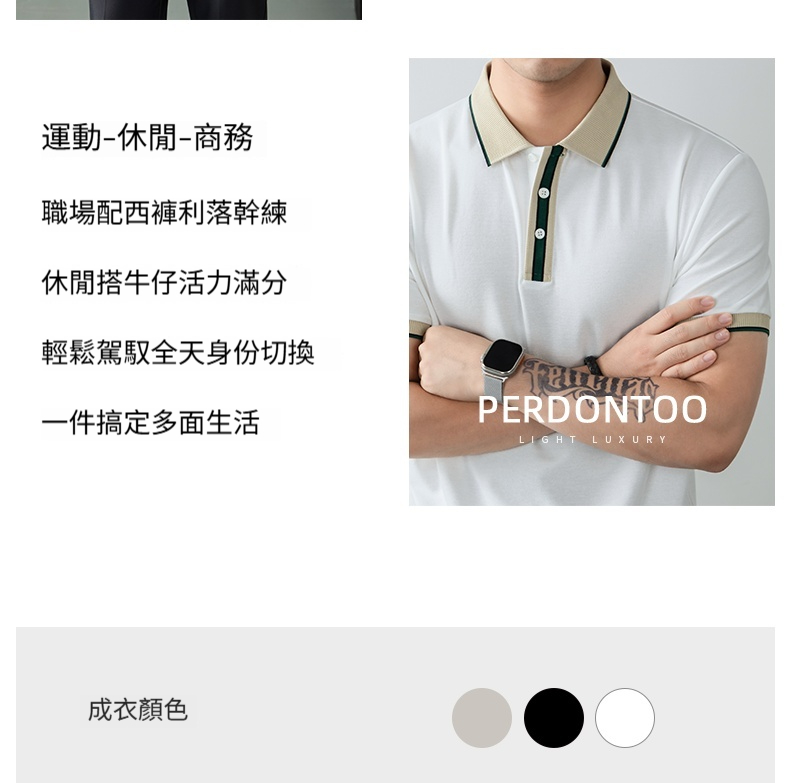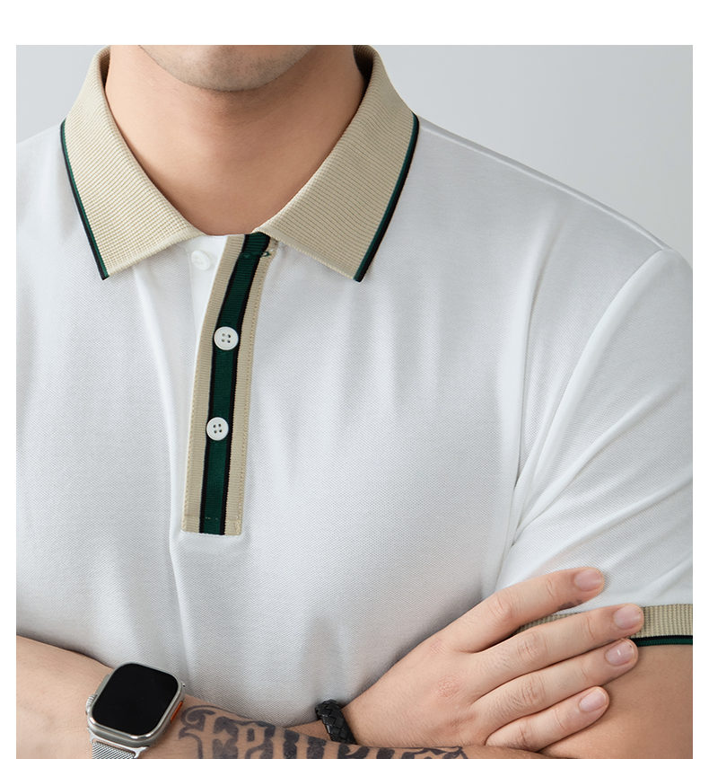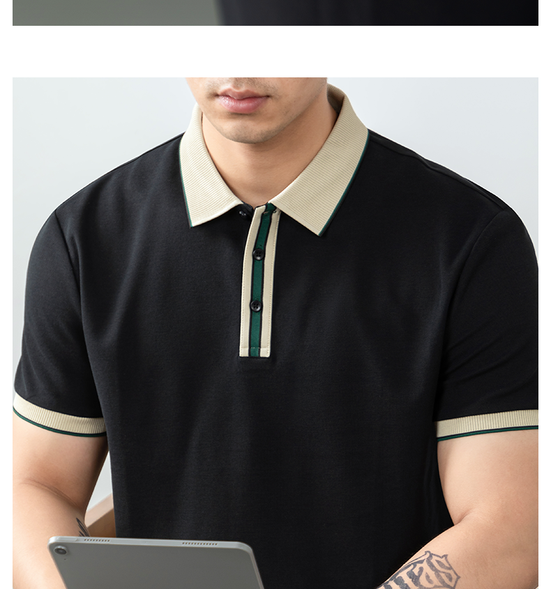 絲韻LuxePique珠地輕奢POLO衫短袖男夏季高端撞色翻領T恤商務休閒