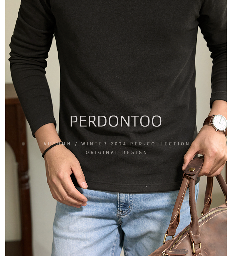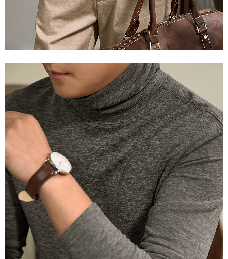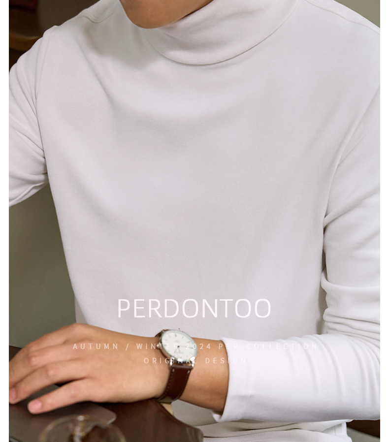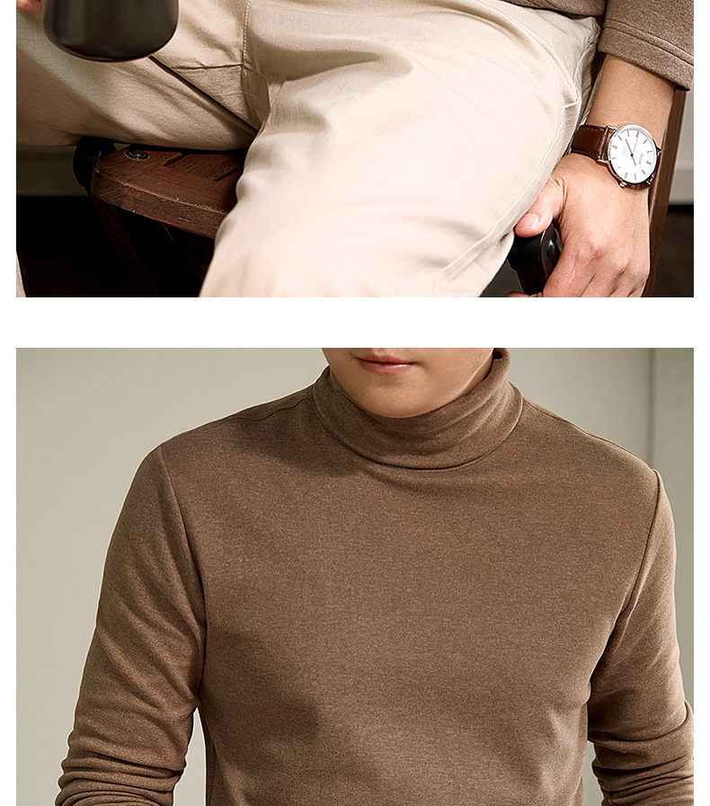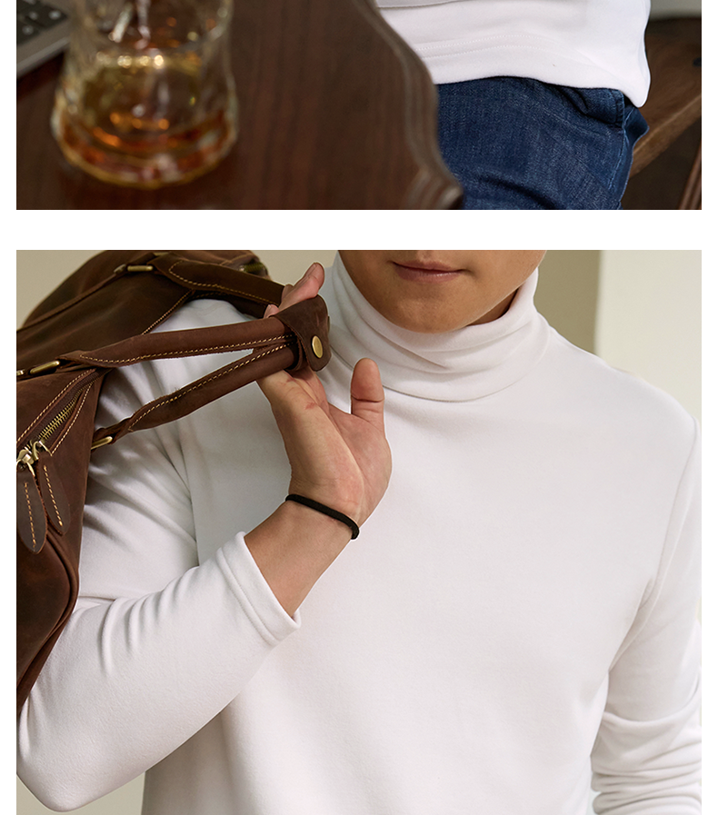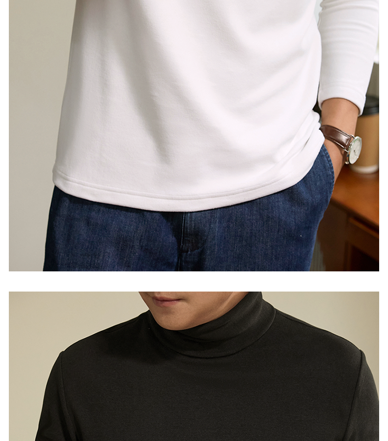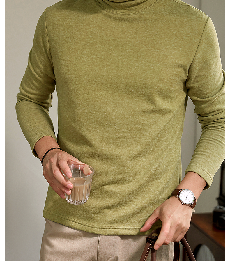羊毛蠶絲雙面絨高領打底衫男秋冬內搭保暖自發熱堆領長袖T恤厚款