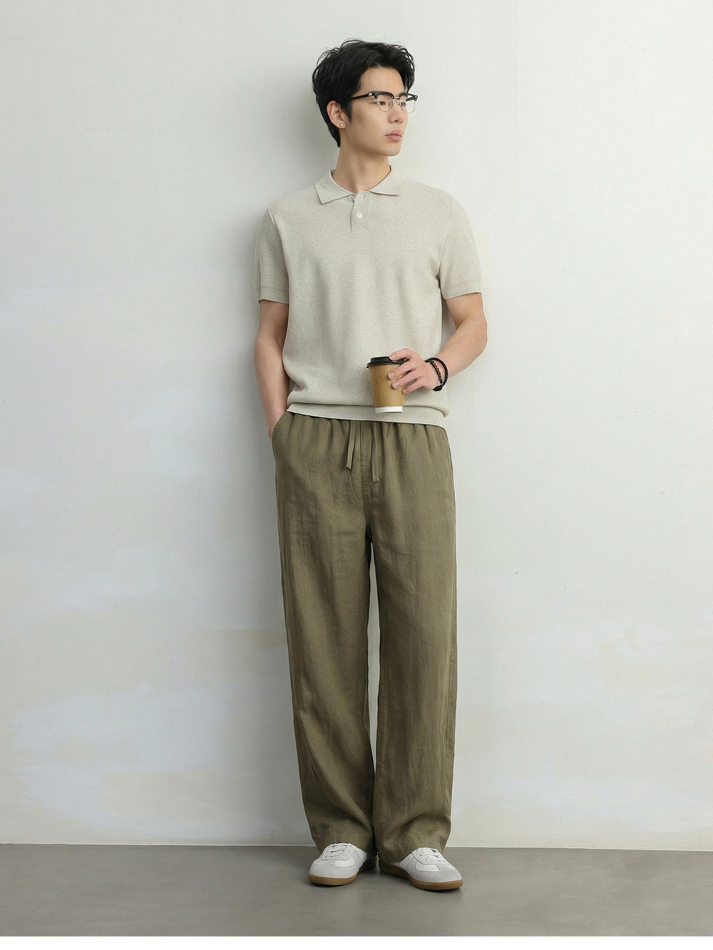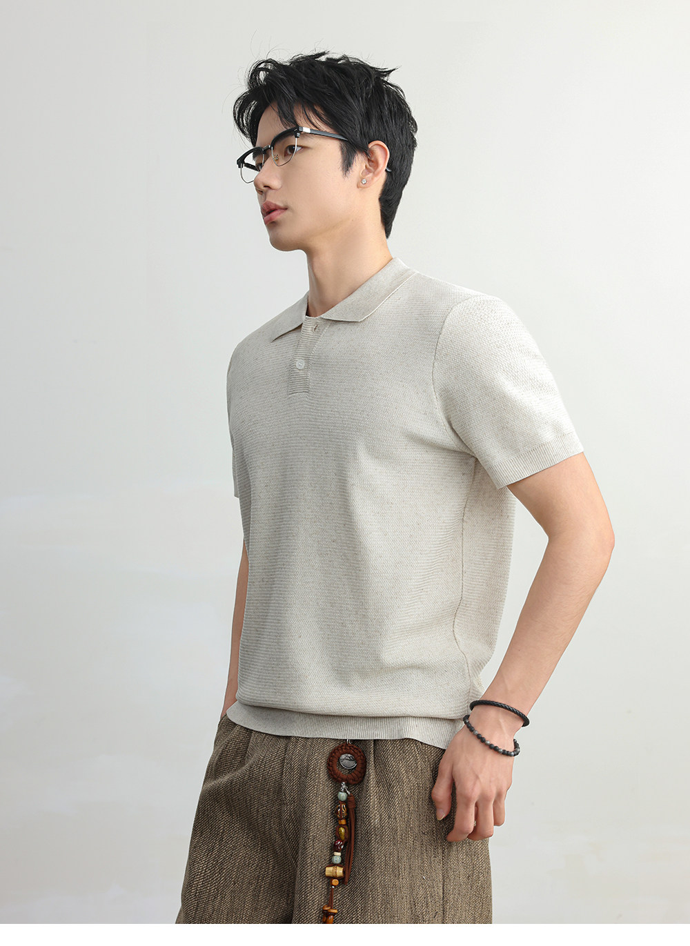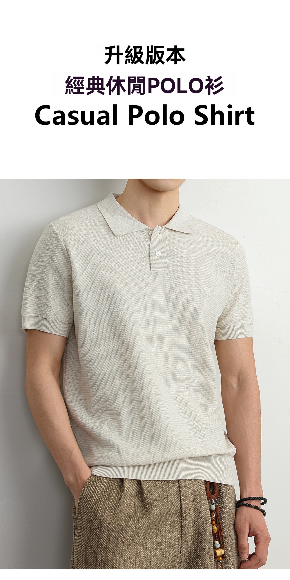 美式复古翻领POLO衫男士夏季透气休闲商务老钱风亚麻短袖t恤