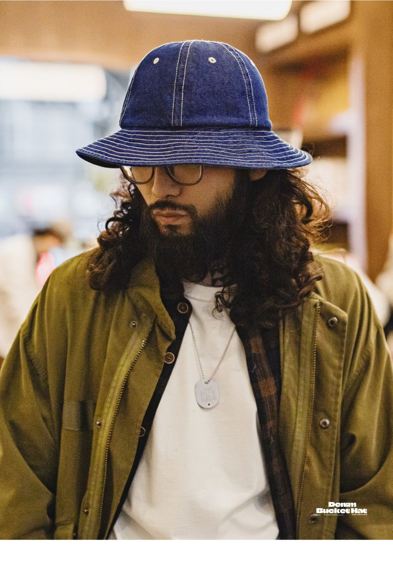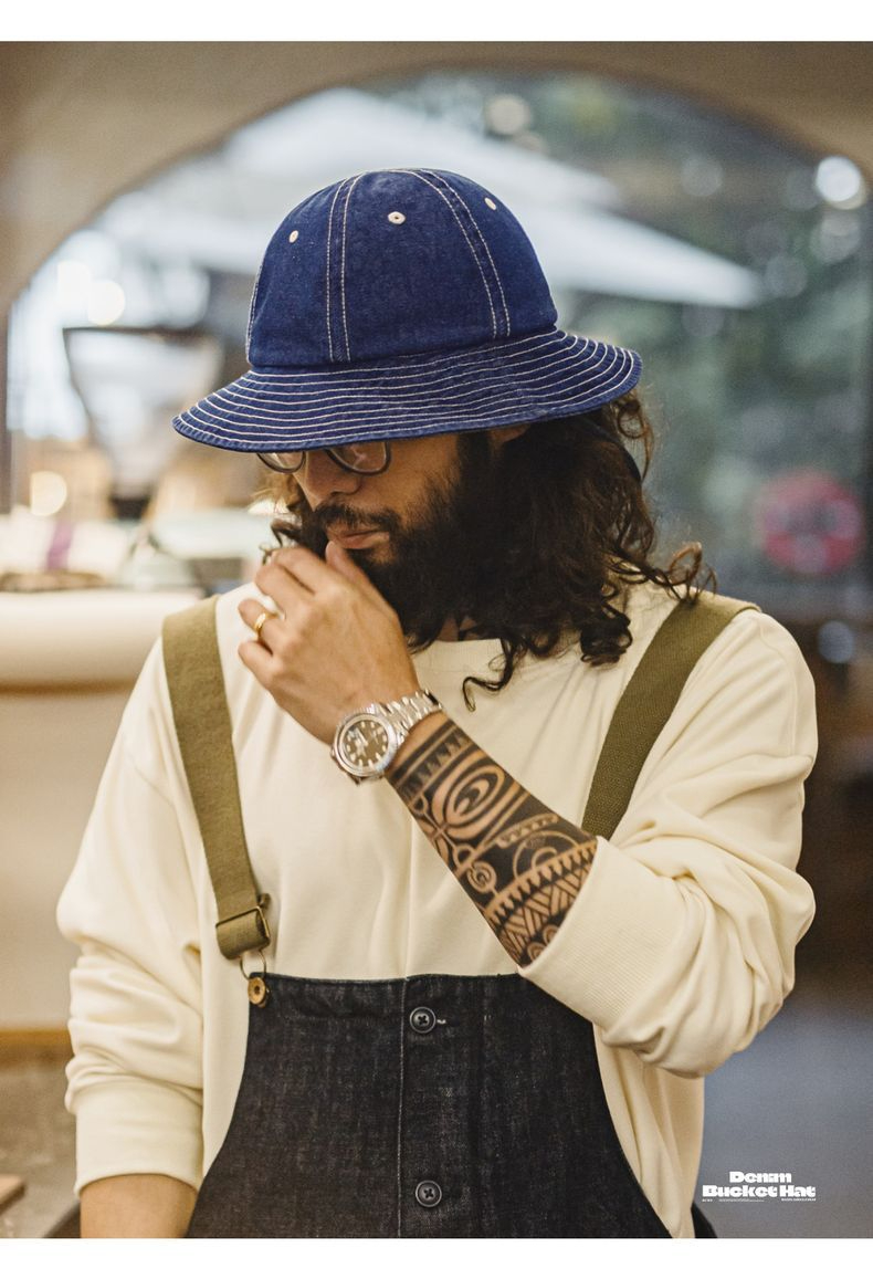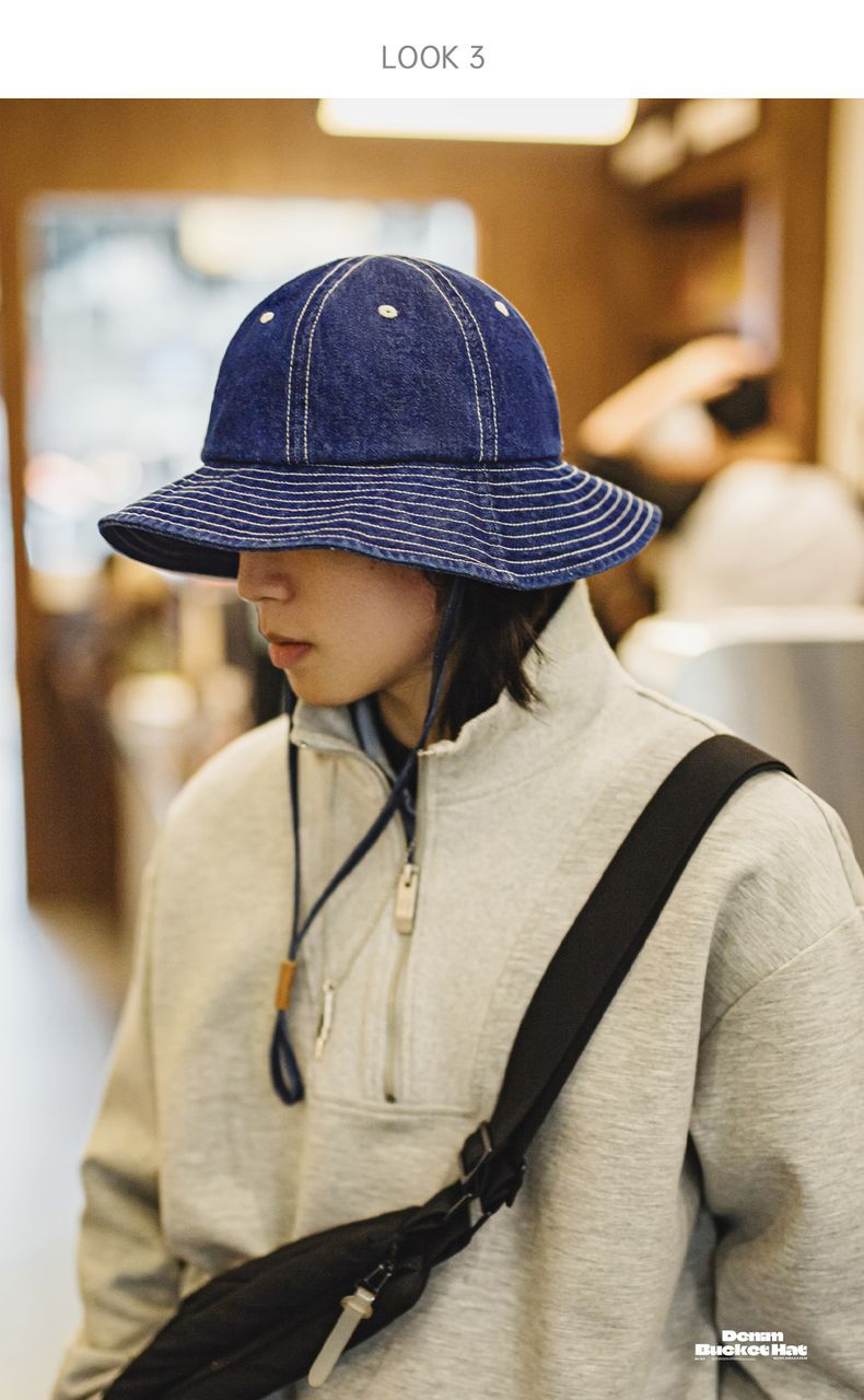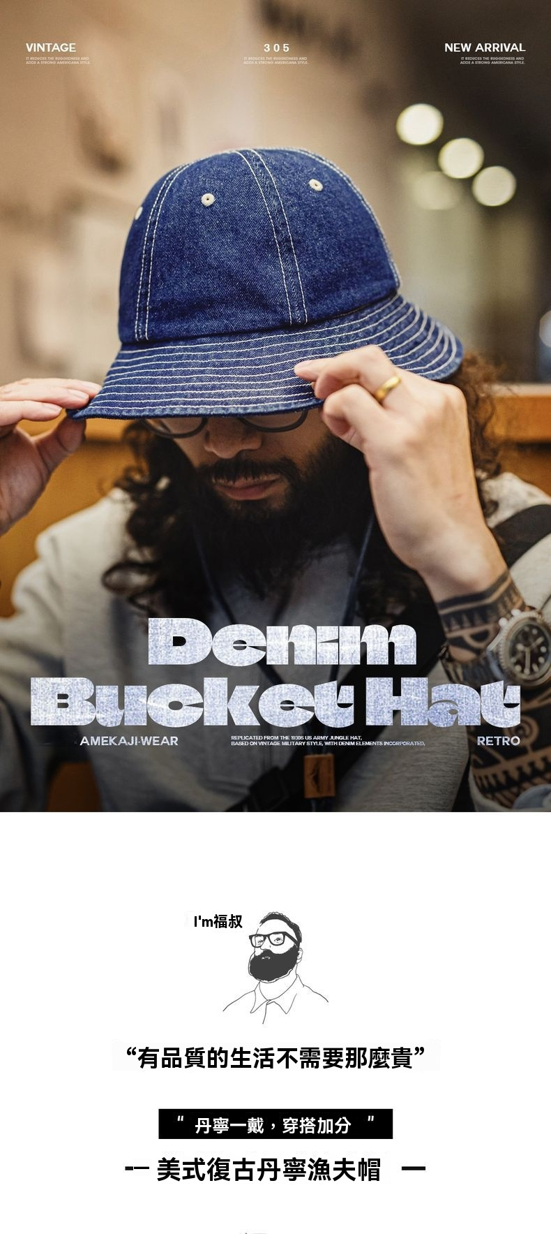美式復古丹寧牛仔漁夫帽寬帽檐咔嘰圓頂遮陽帽盆帽男女