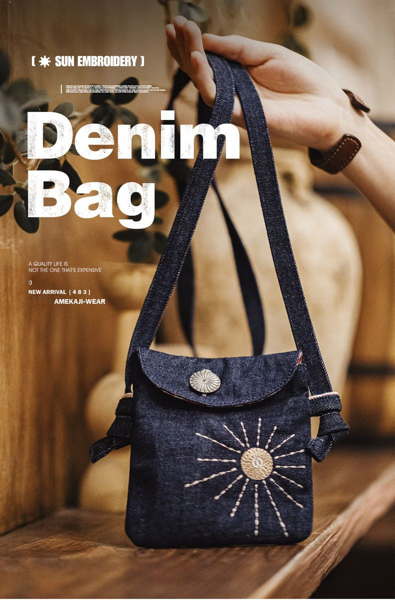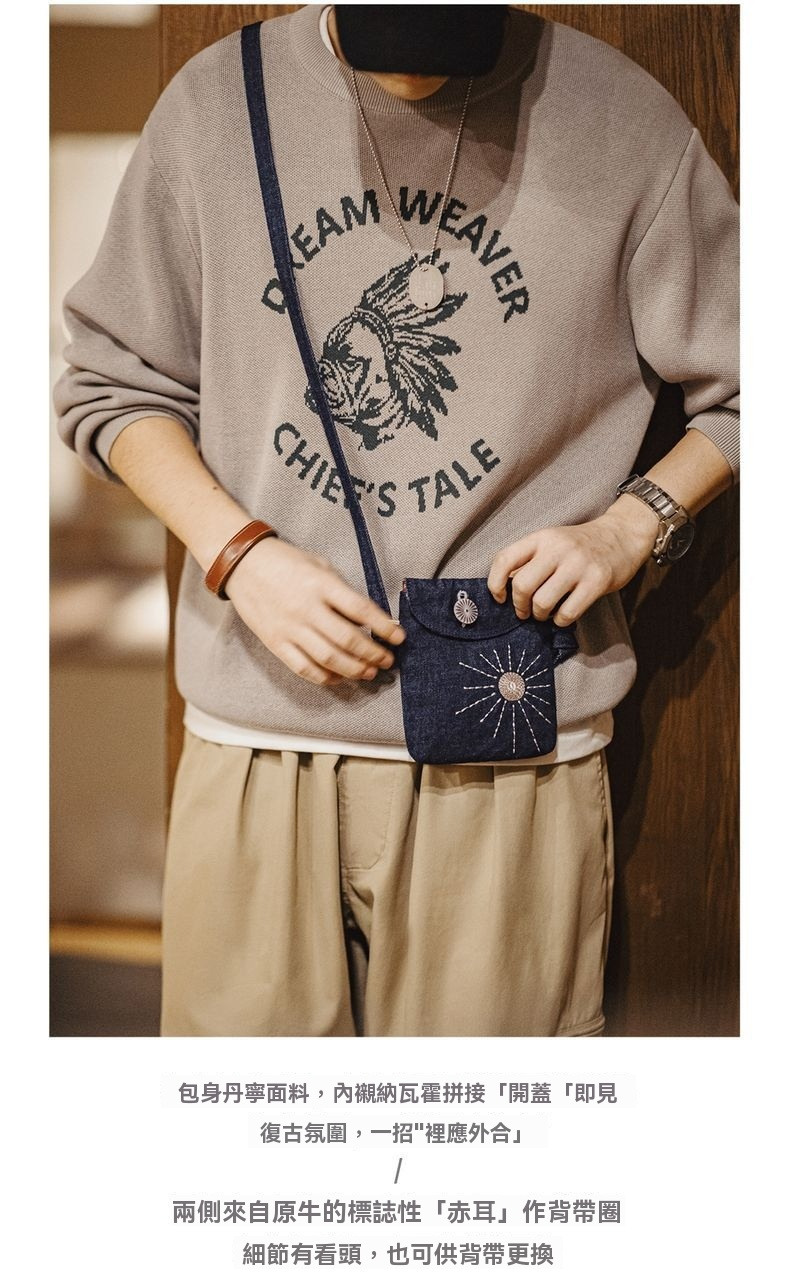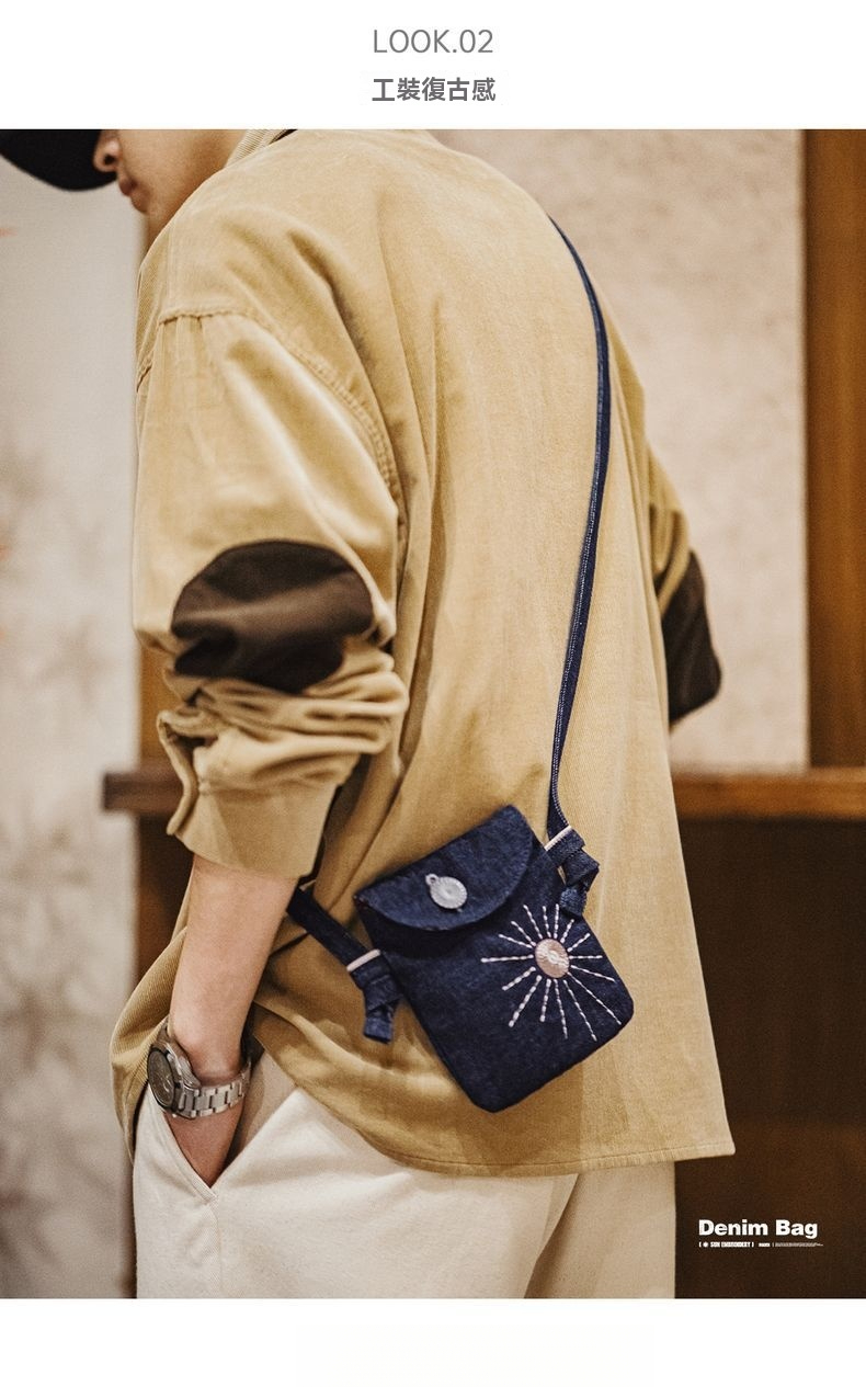 美式復古刺繡丹寧斜挎包印第安民族風牛仔布手機包男女