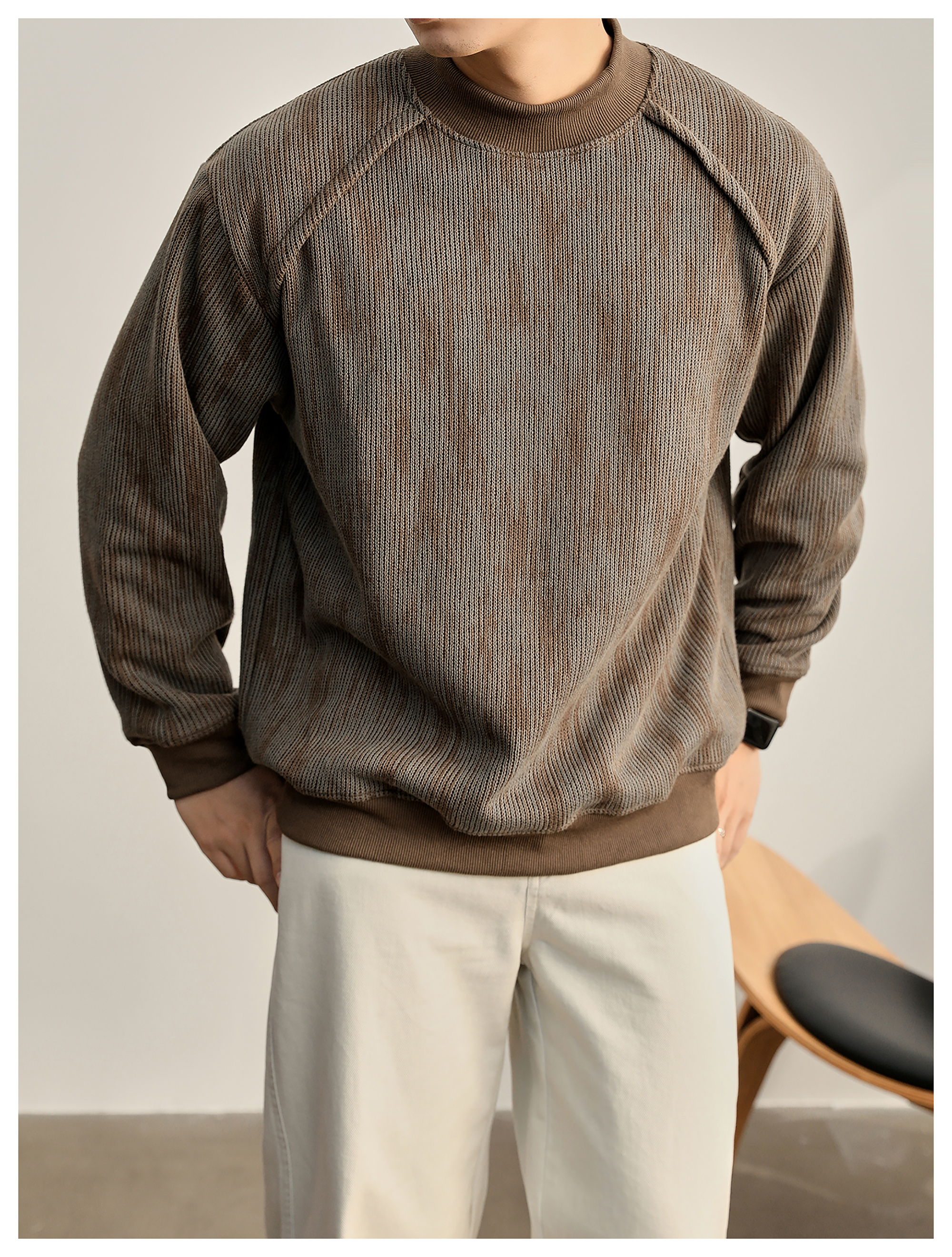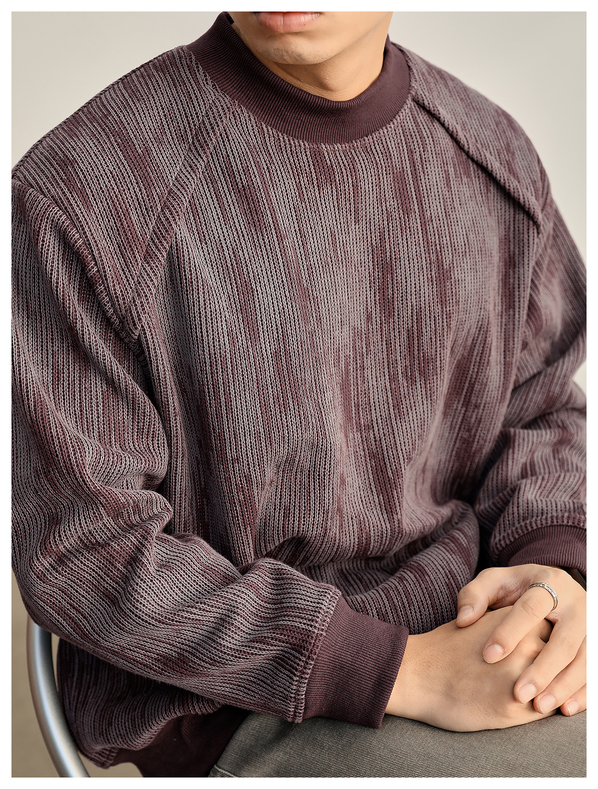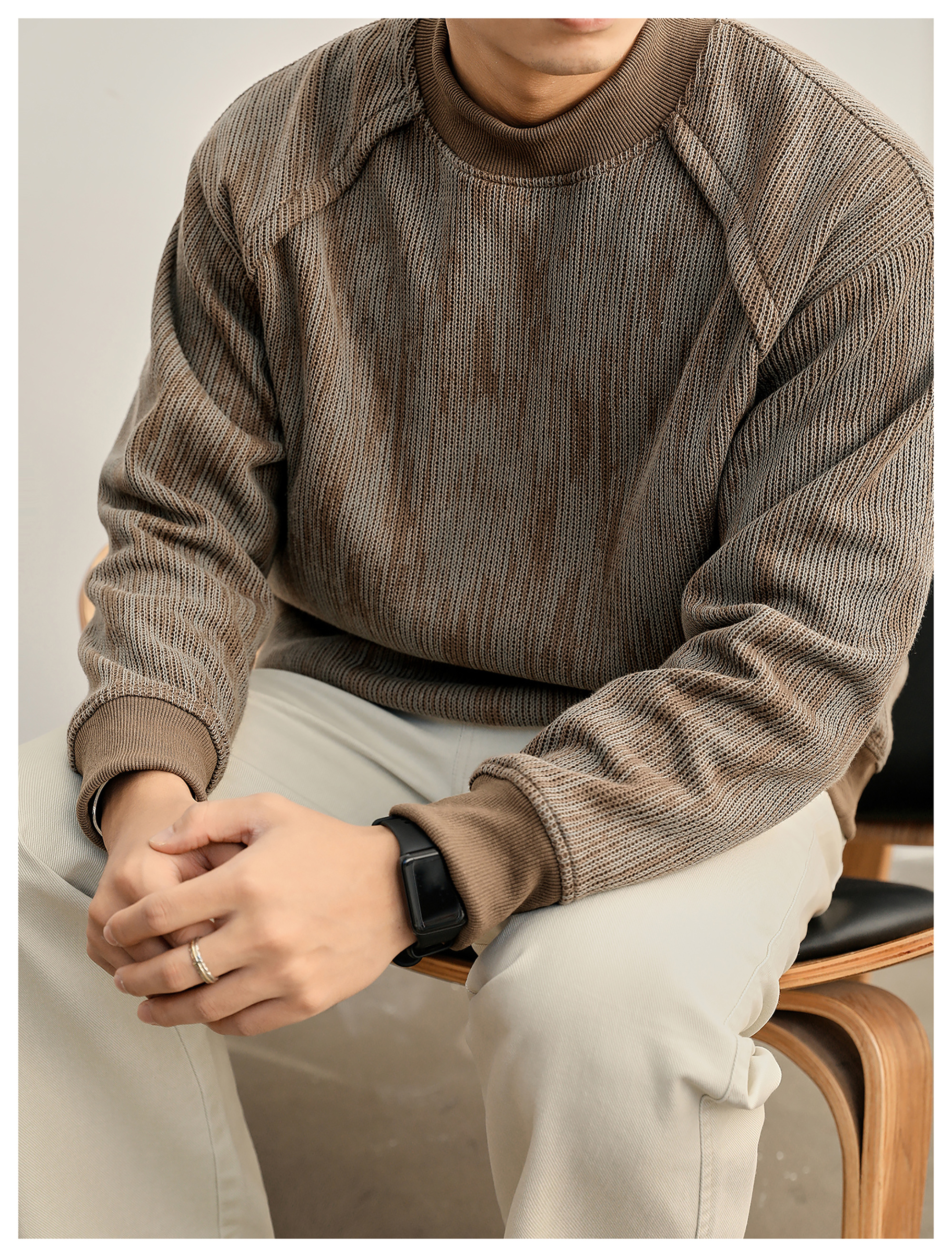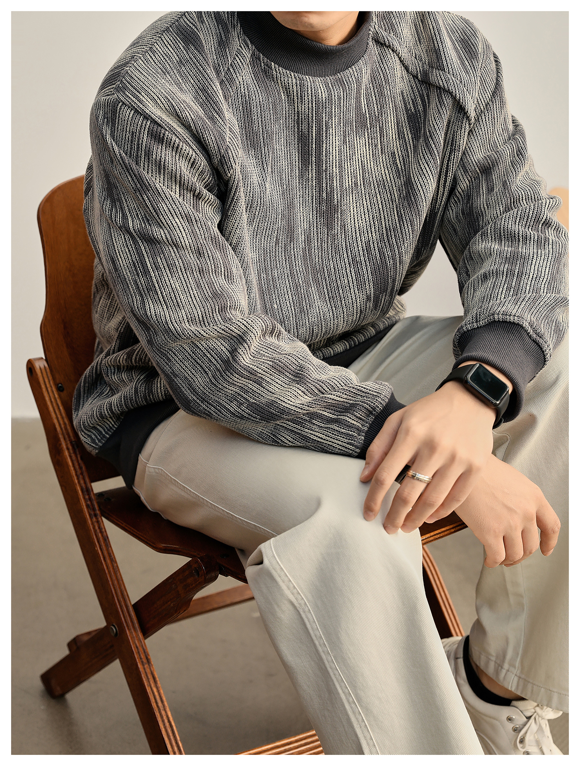 美式復古漸變斑駁感圓領衛衣男珠地蜂窩網重磅420g針織上衣