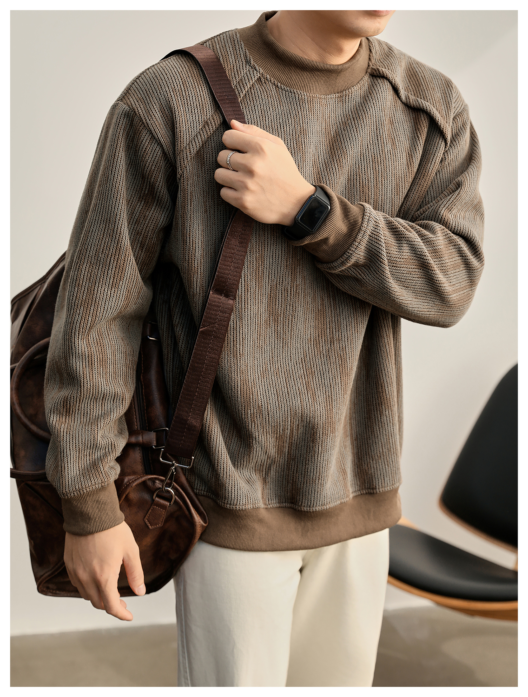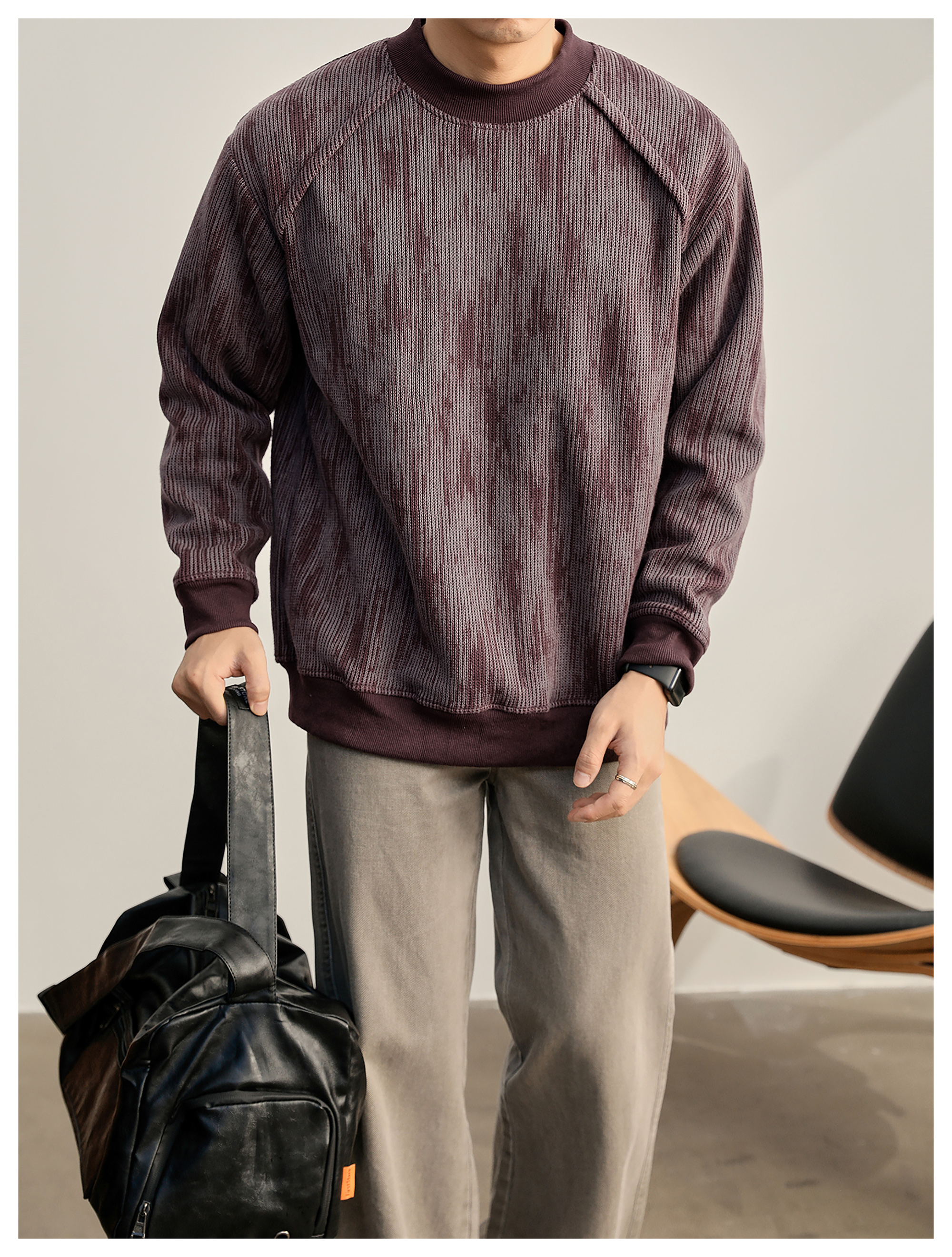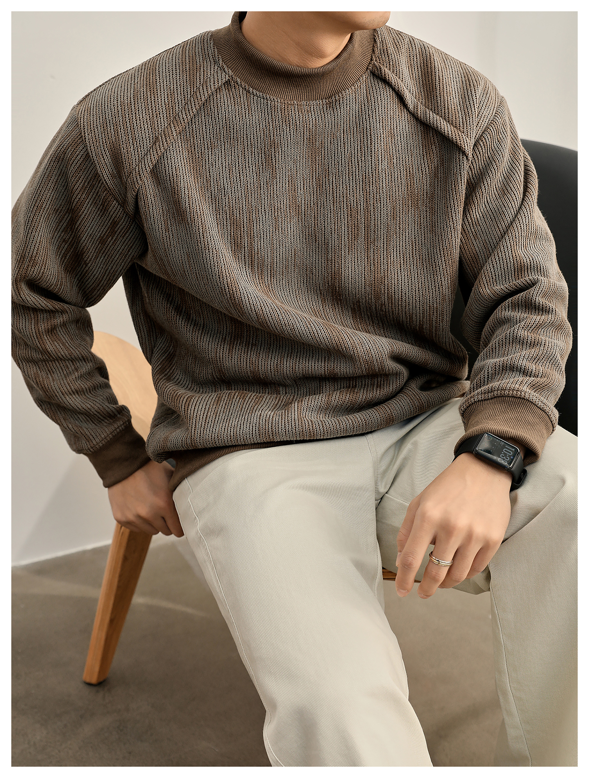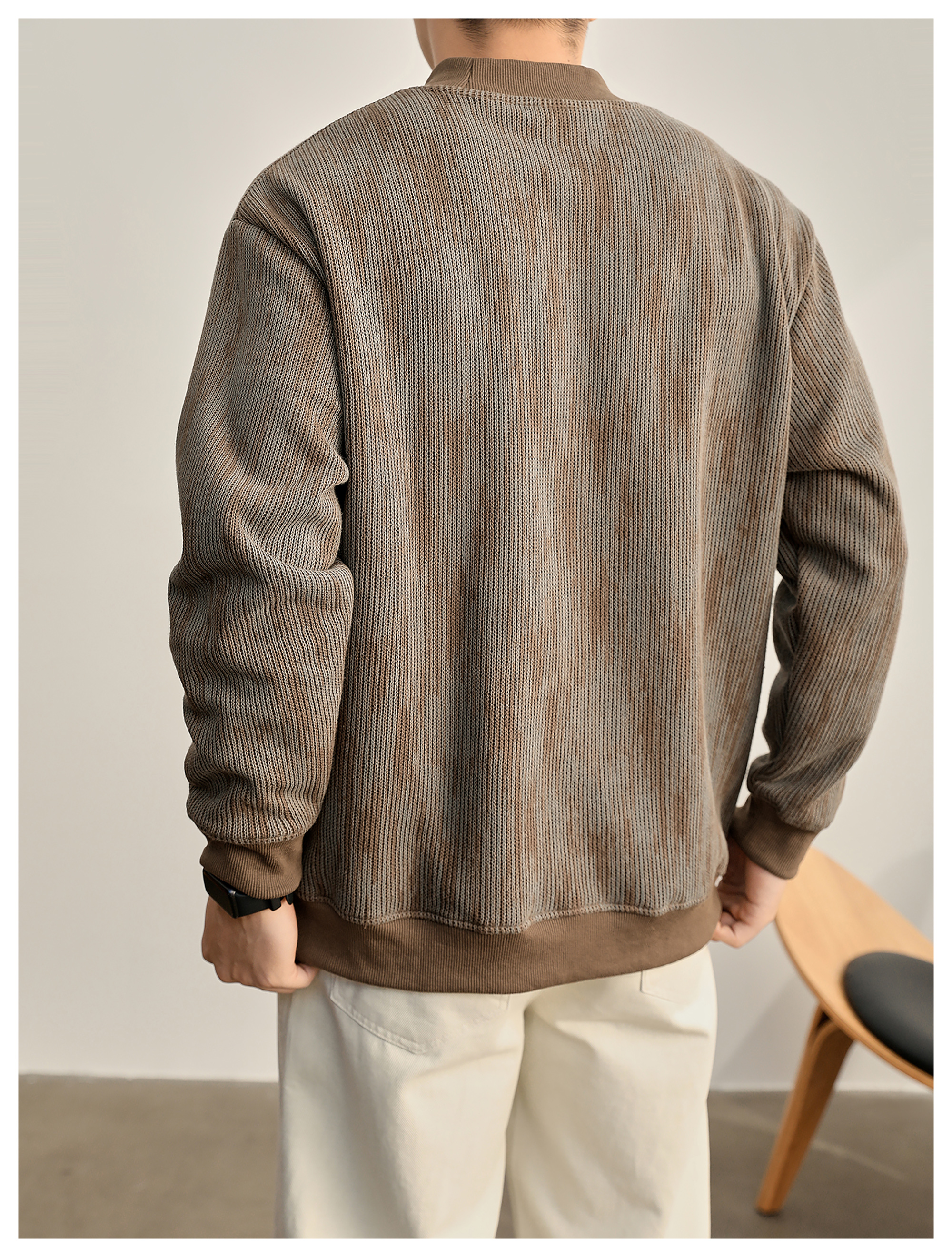 美式復古漸變斑駁感圓領衛衣男珠地蜂窩網重磅420g針織上衣