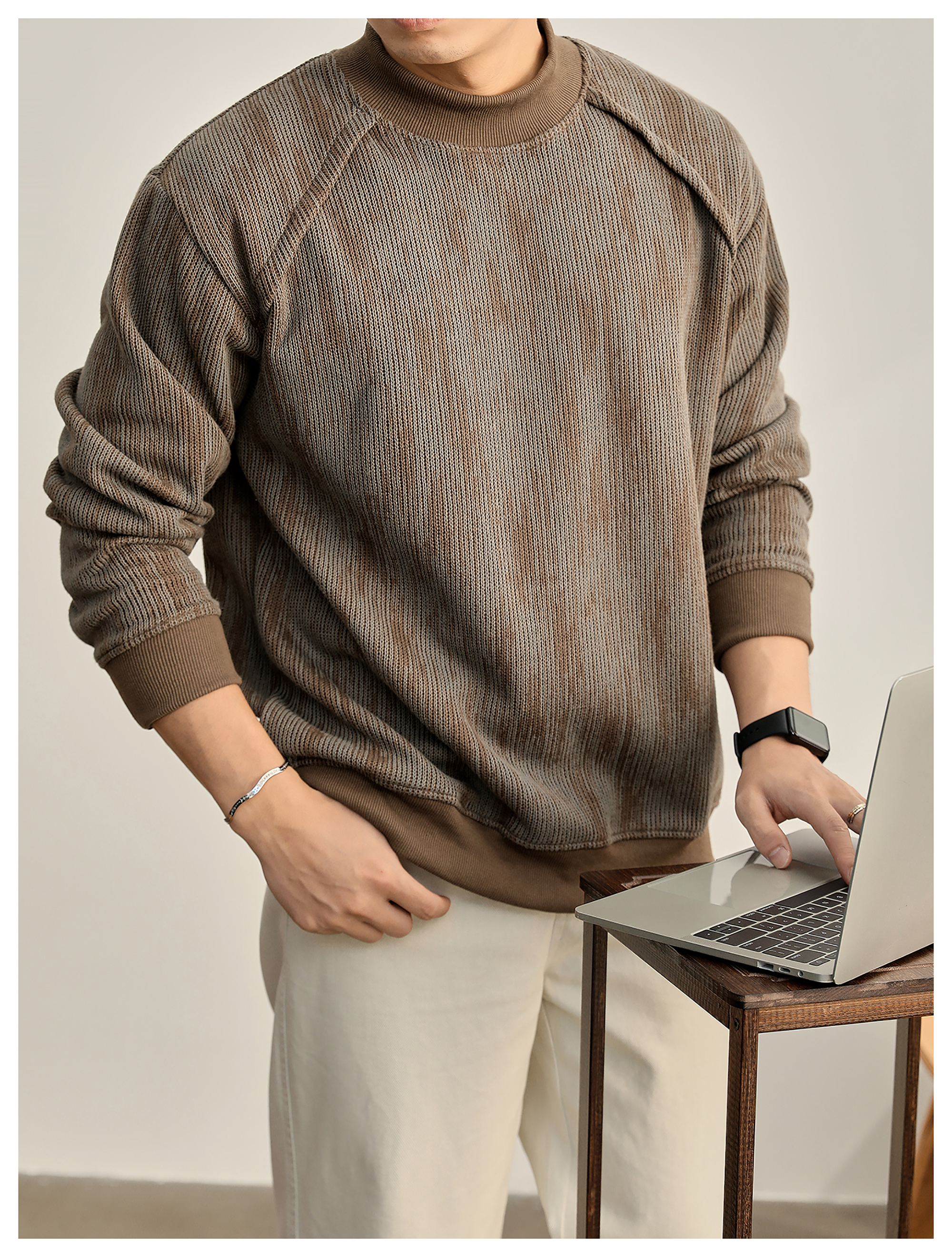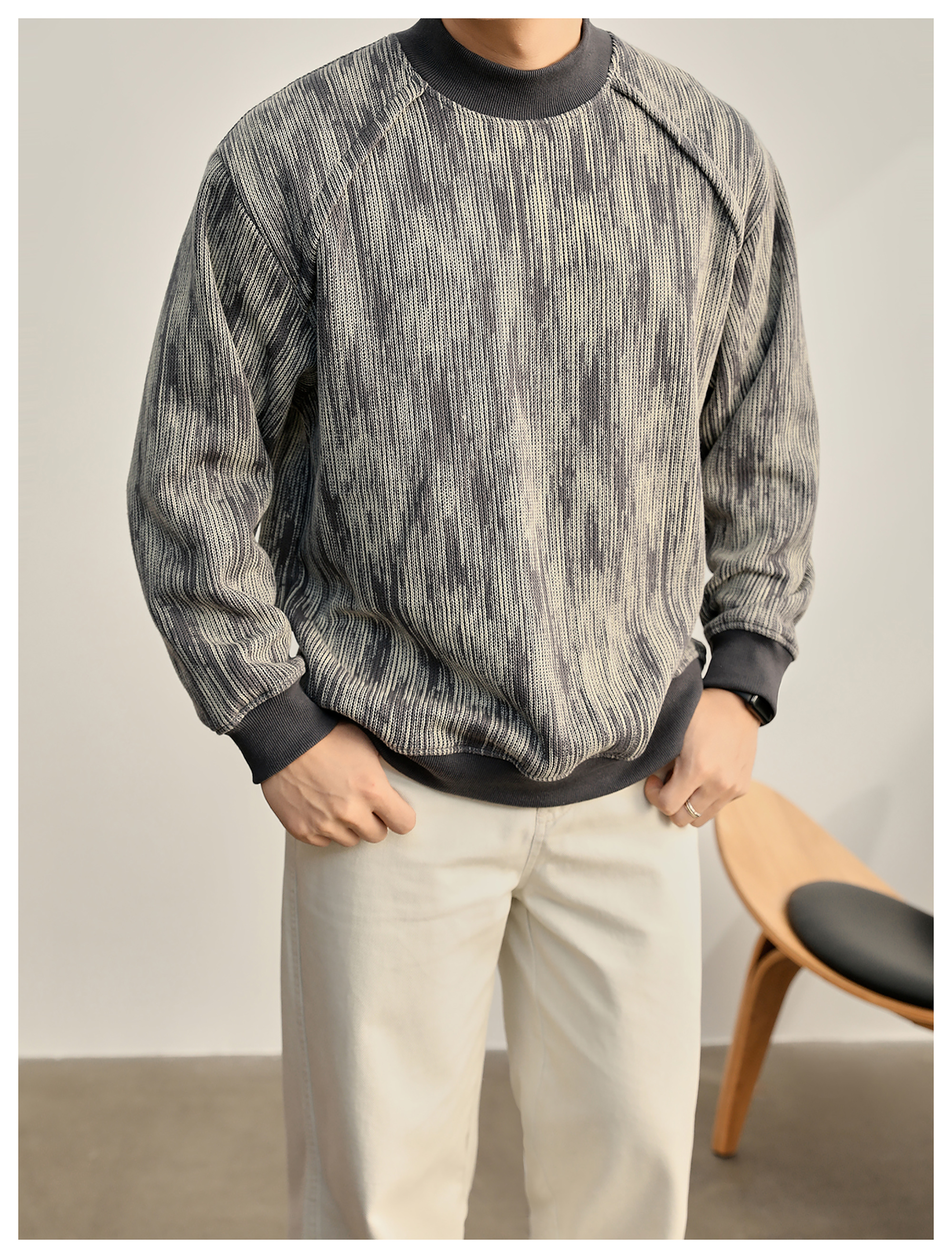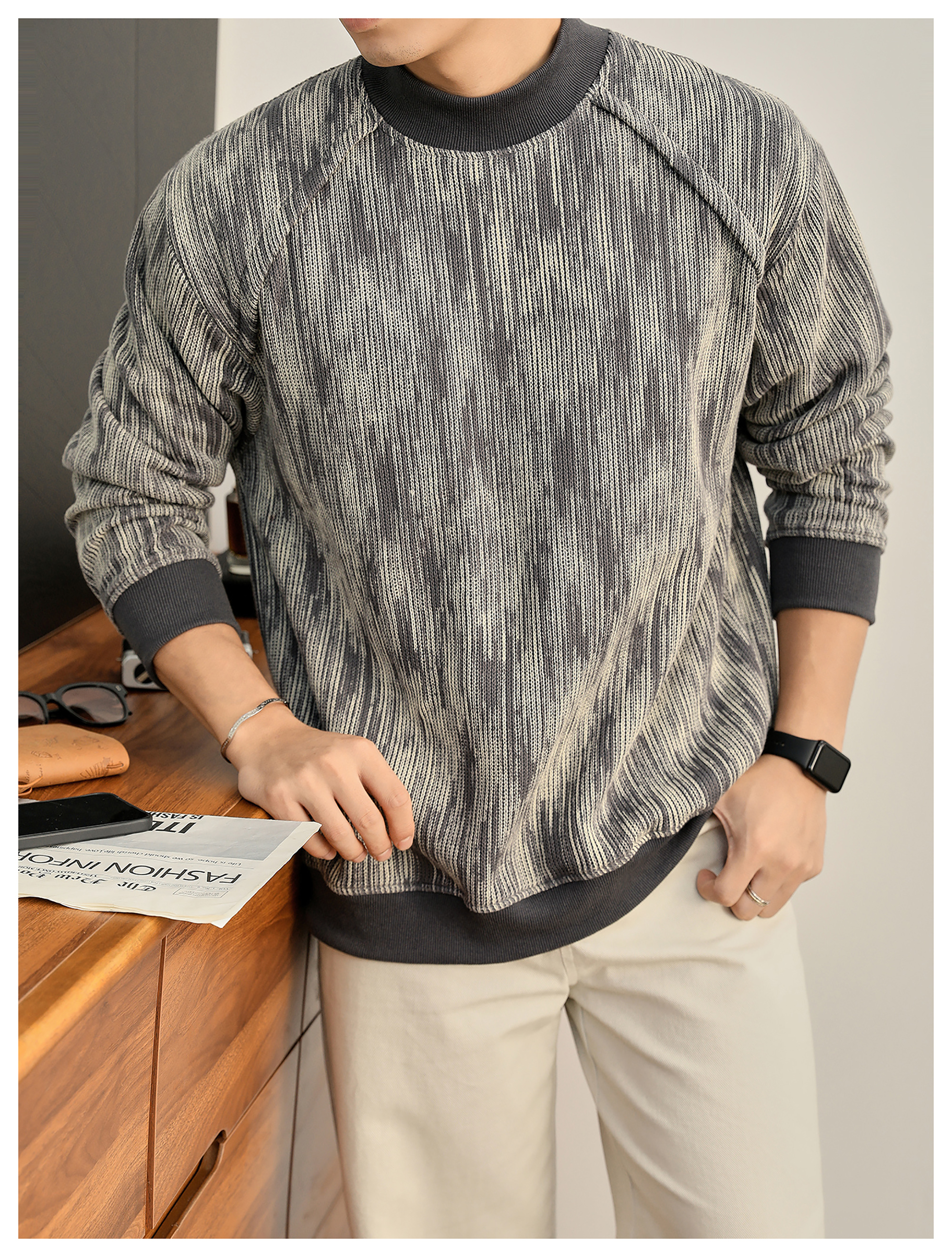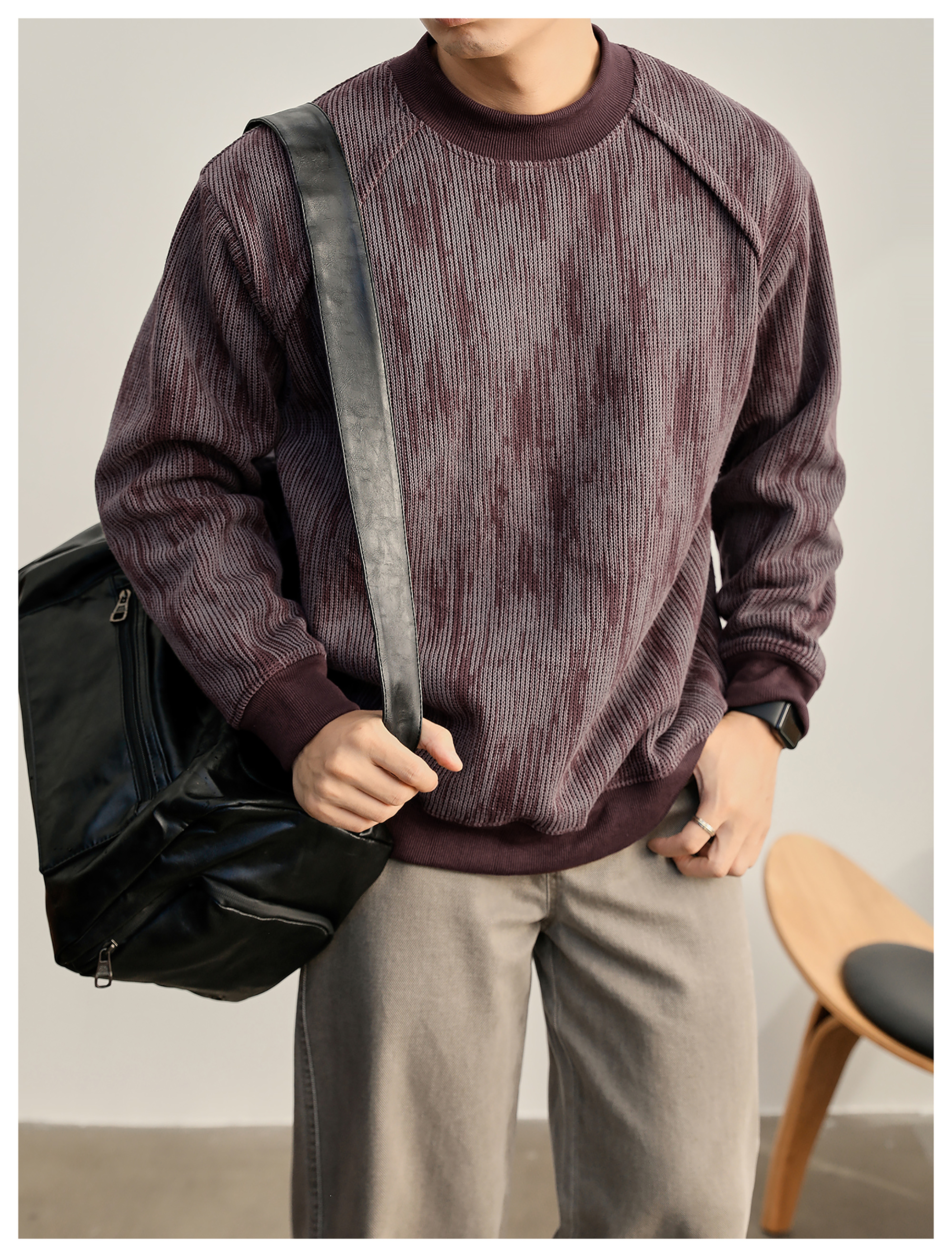 美式復古漸變斑駁感圓領衛衣男珠地蜂窩網重磅420g針織上衣